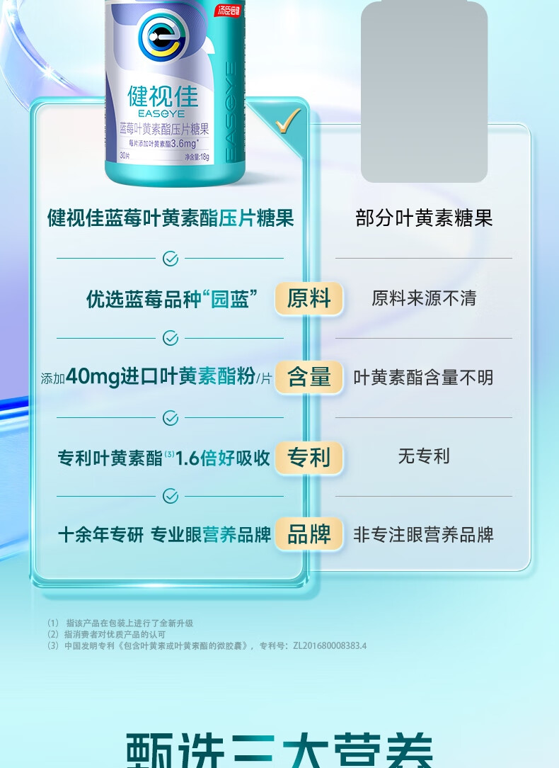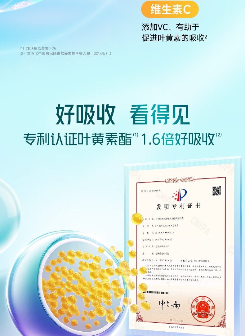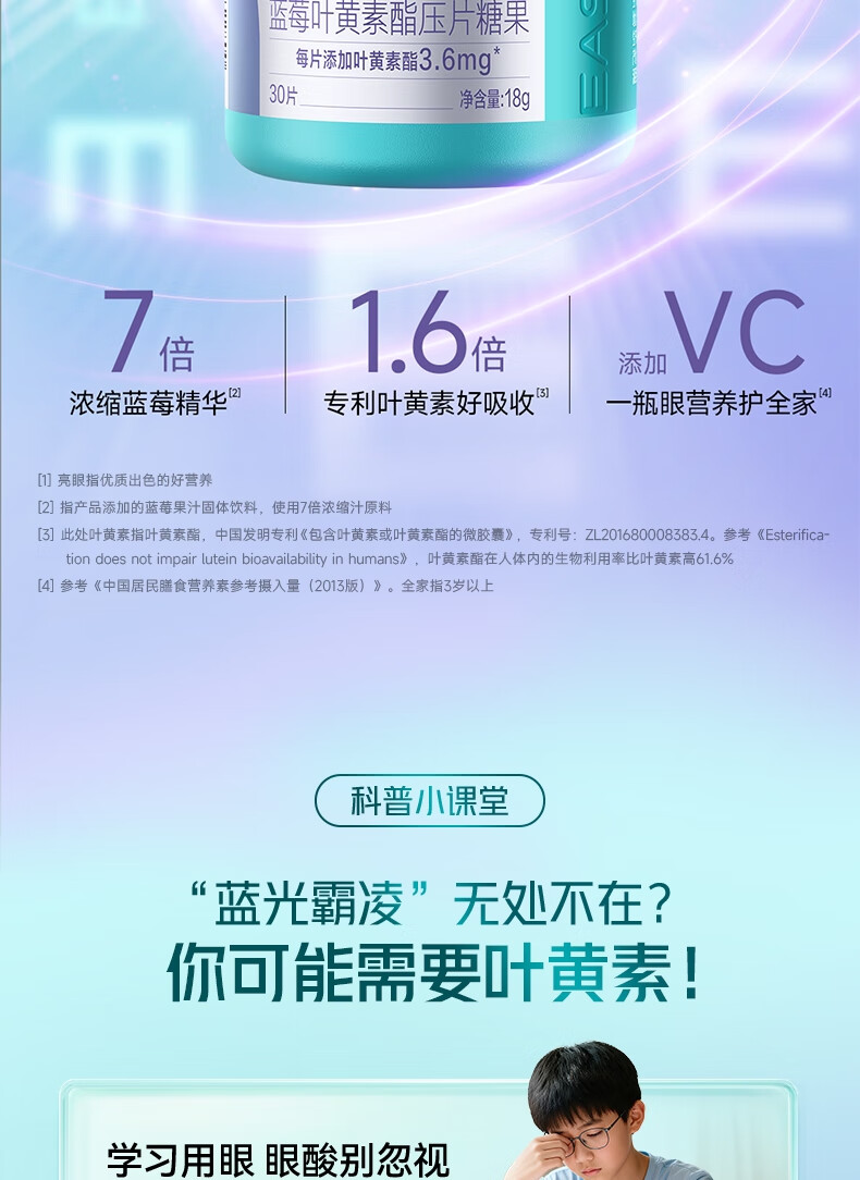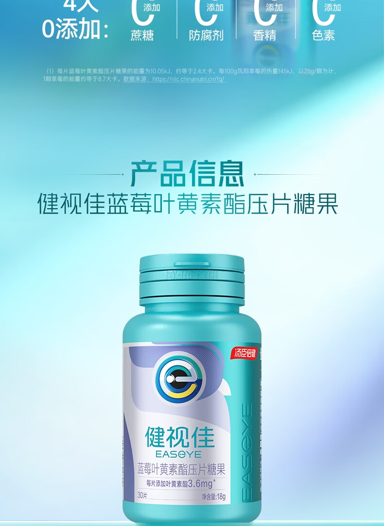 汤臣倍健(BYHEALTH)健视佳蓝莓叶黄素酯30片 维生素C 专利叶黄素1.6倍好吸收 非软糖