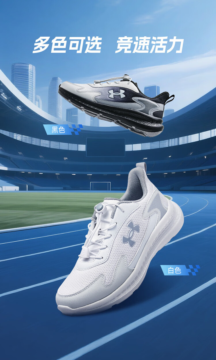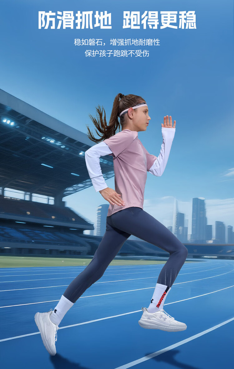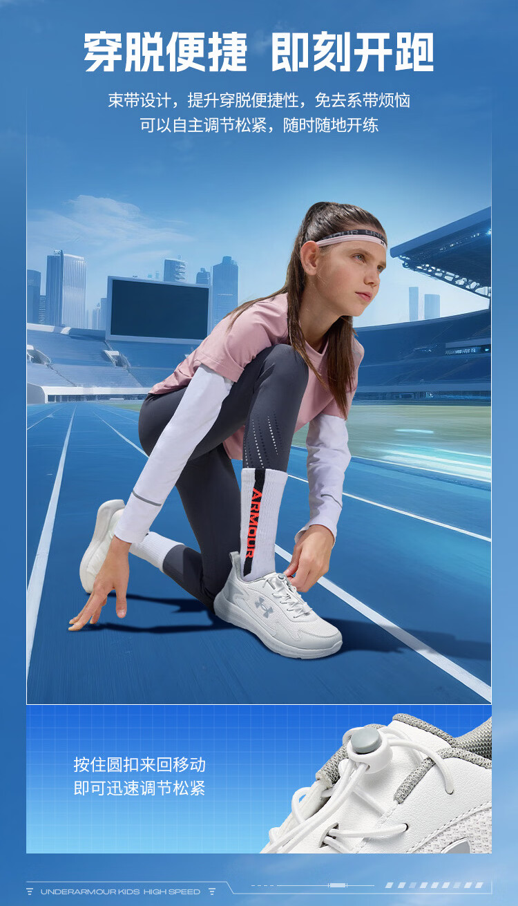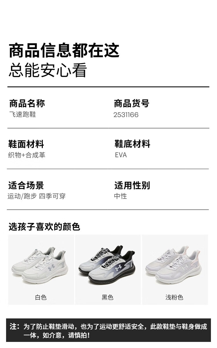 安德玛儿童舒适跑鞋男女童休闲透气耐磨运动鞋童鞋跑鞋 黑色【鞋垫一体化 不可分离】 37.5