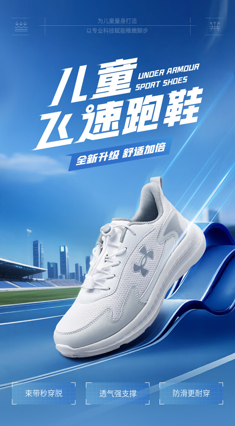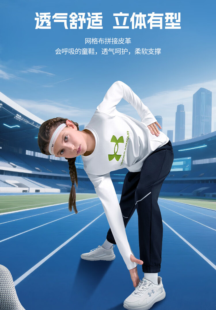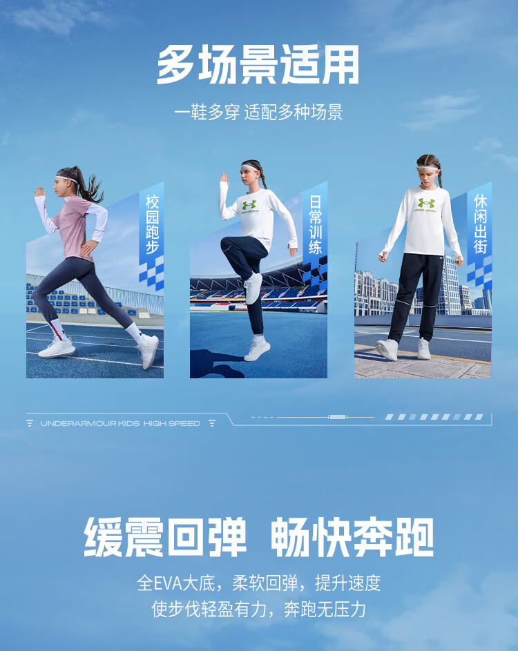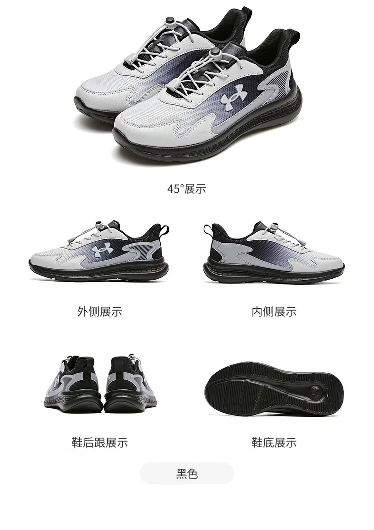 安德玛儿童舒适跑鞋男女童休闲透气耐磨运动鞋童鞋跑鞋 黑色【鞋垫一体化 不可分离】 37.5