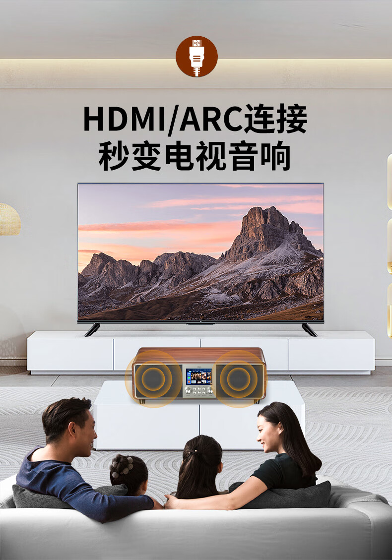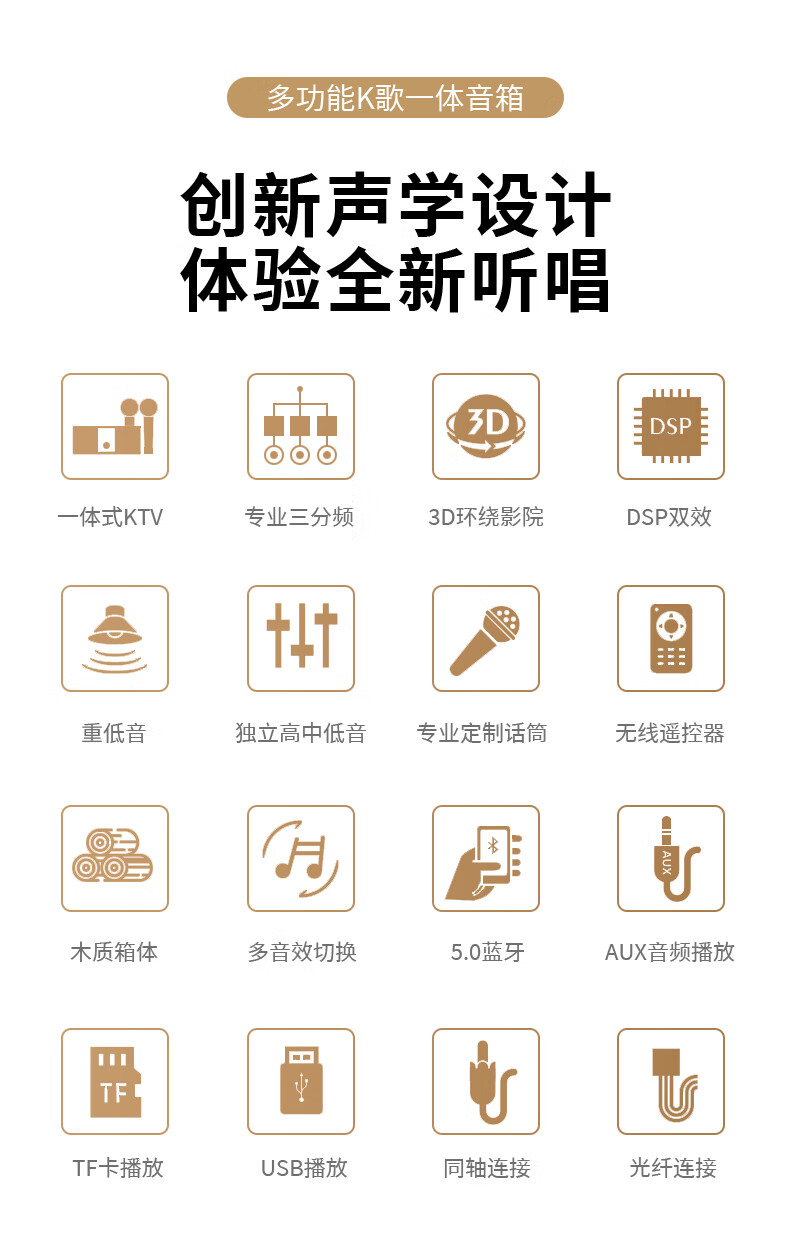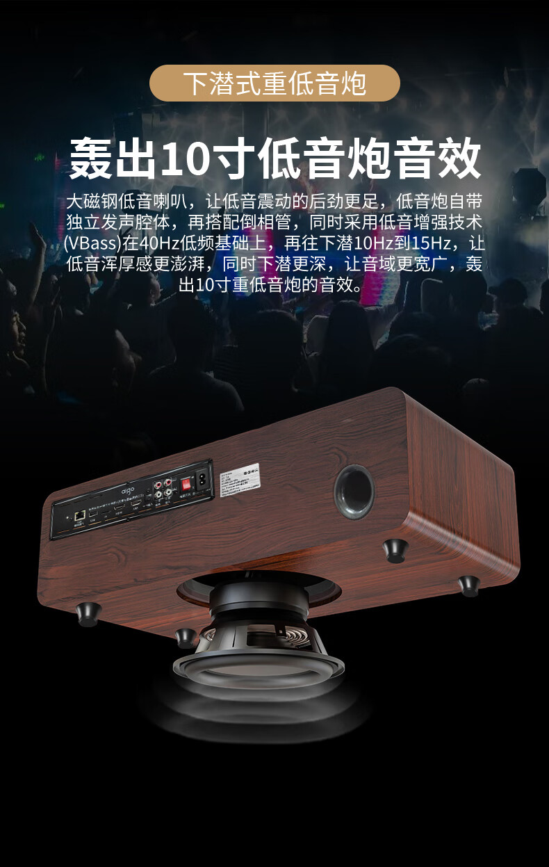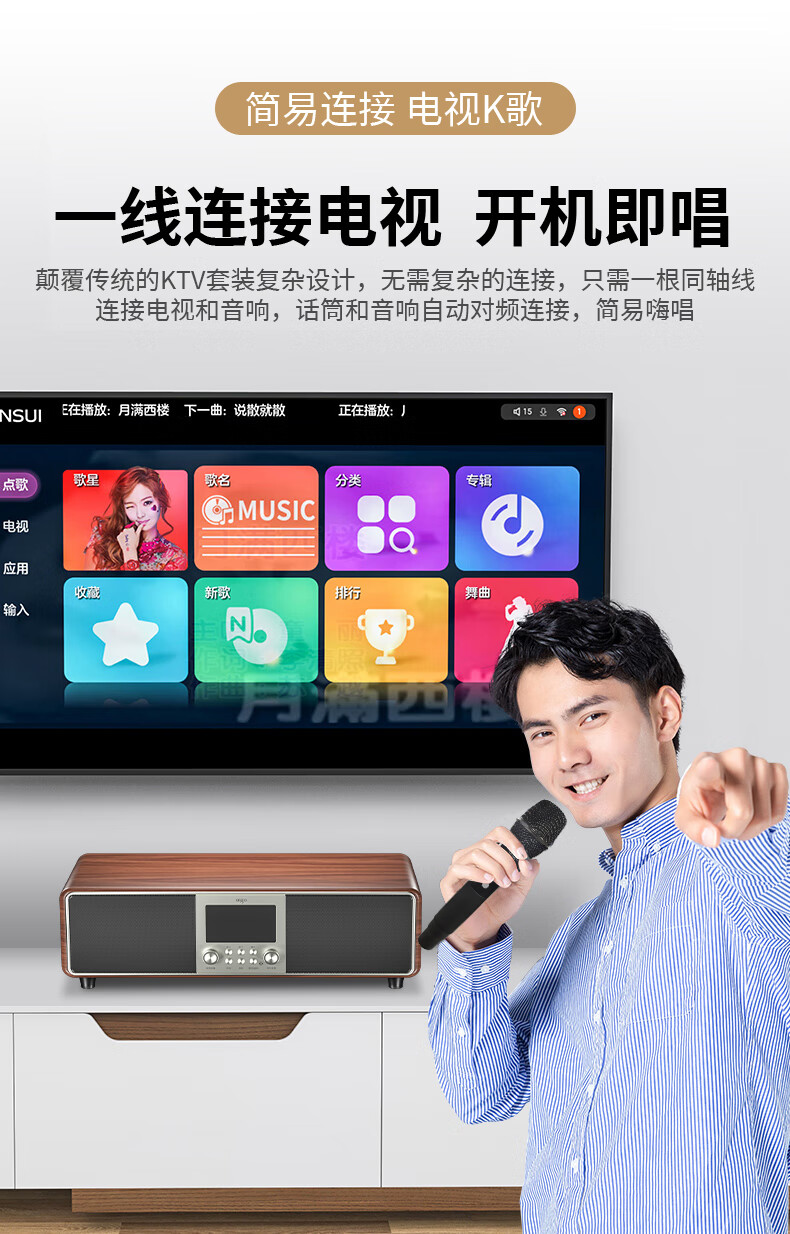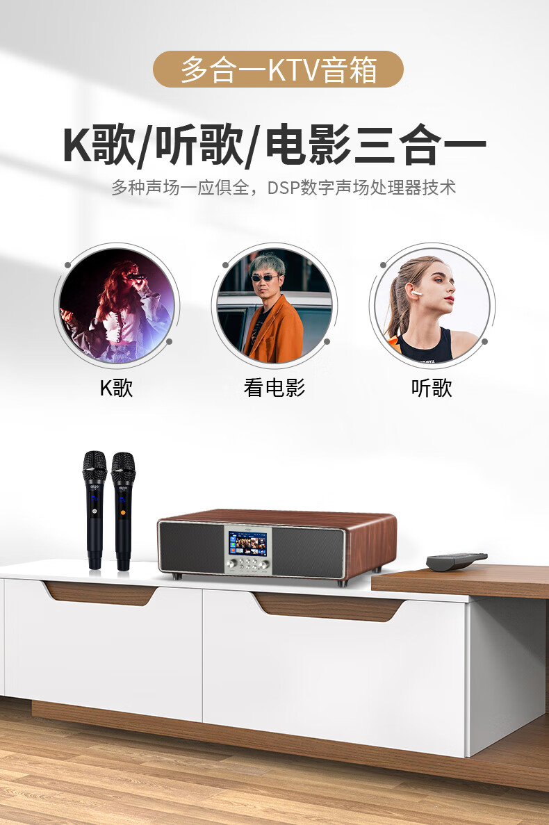 爱国者T16 蓝牙音响回音壁电视音箱无线家庭KTV影院K歌音响套装一体机带双麦克风 原木色