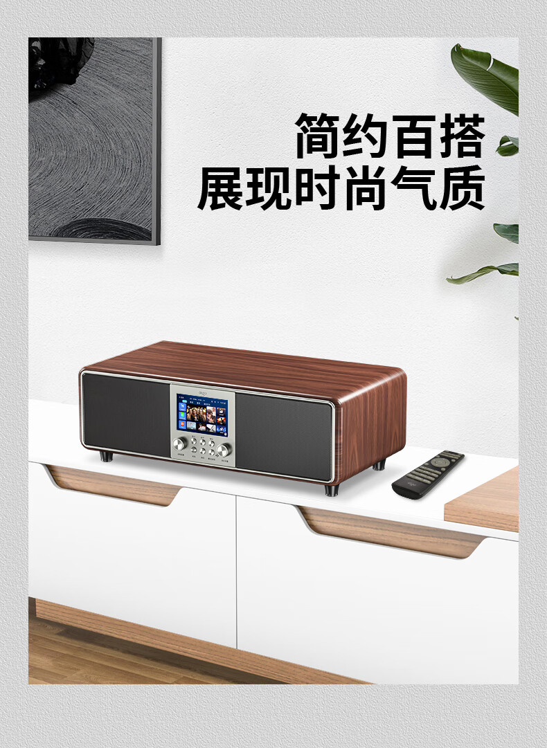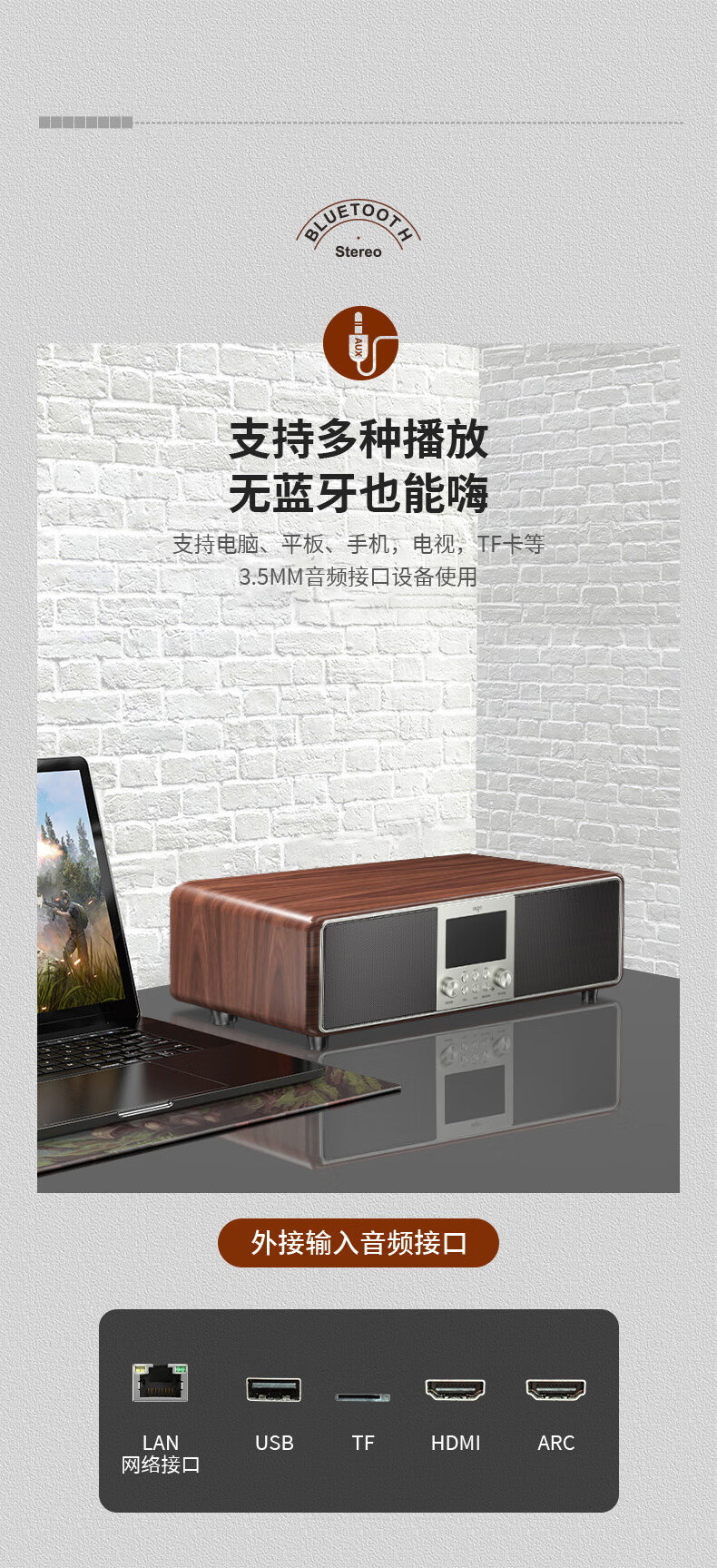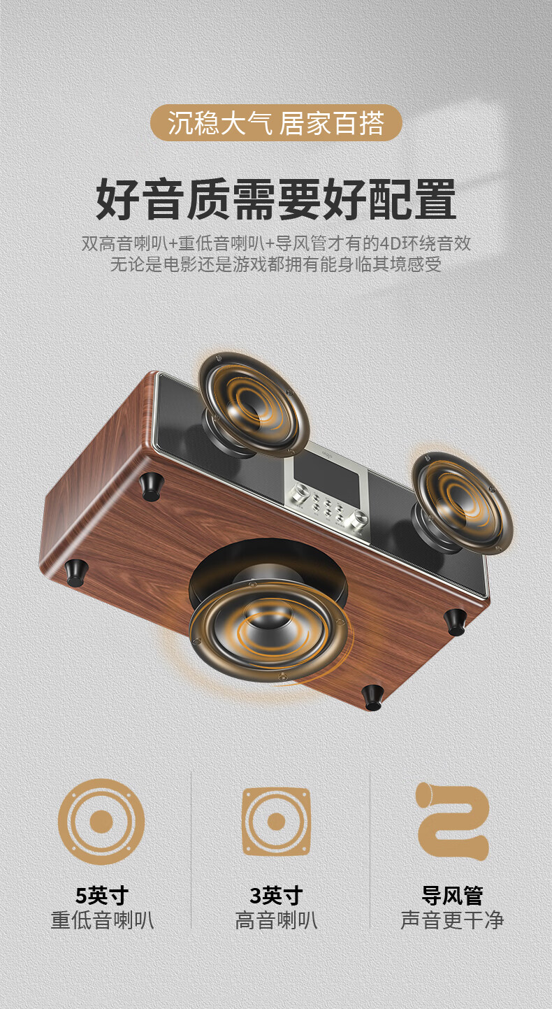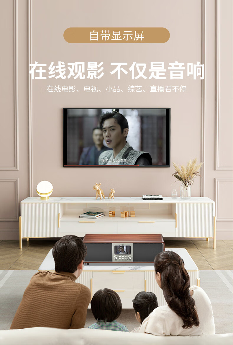 爱国者T16 蓝牙音响回音壁电视音箱无线家庭KTV影院K歌音响套装一体机带双麦克风 原木色