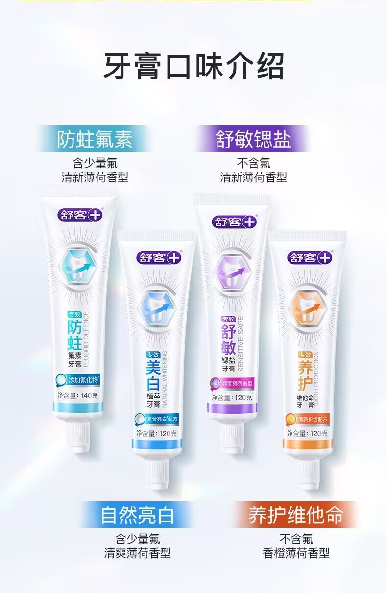 舒客【任选4件】舒客牙膏含氟美白去黄清新口气女男士专用官方正品 防蛀氟素牙膏140g