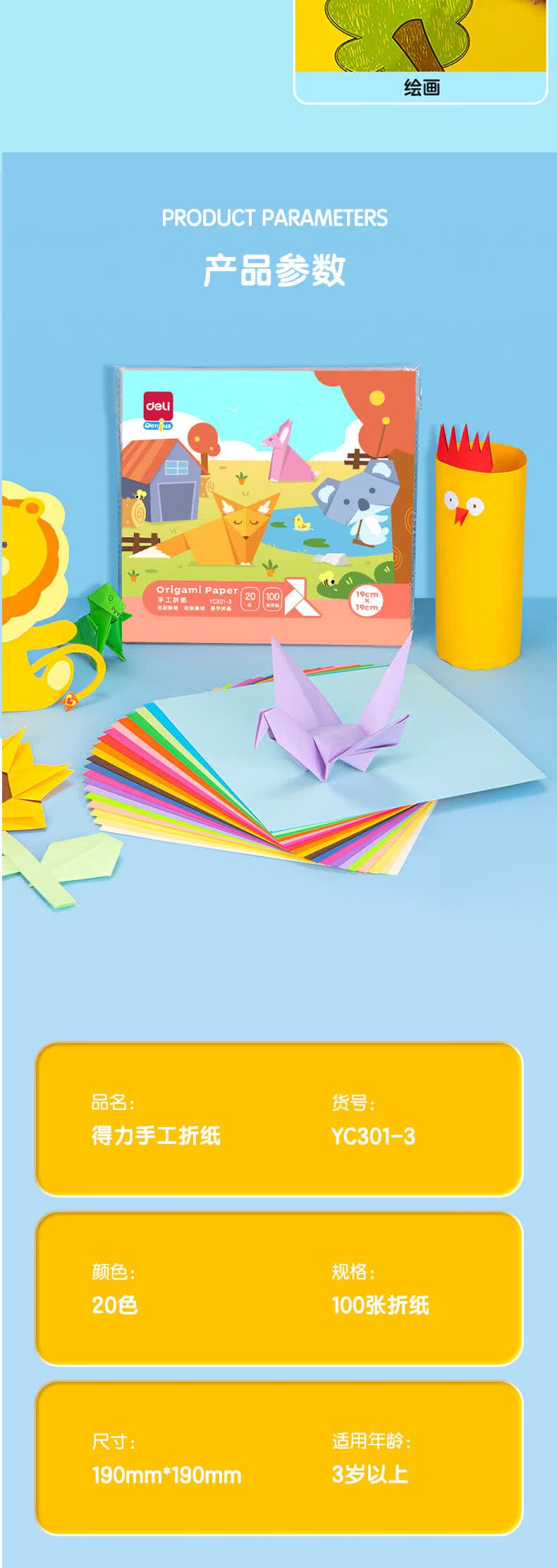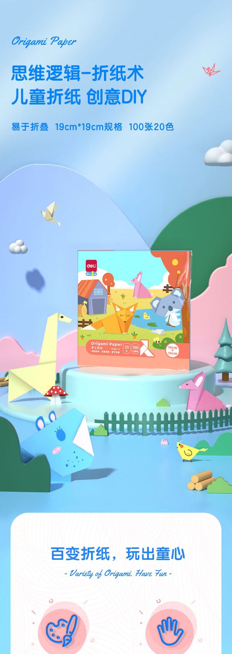 得力(deli)20色100张19*19cm手工折纸 彩纸剪纸软卡纸绘画涂鸦美术课堂手工DIY 儿童生日礼物开学文具