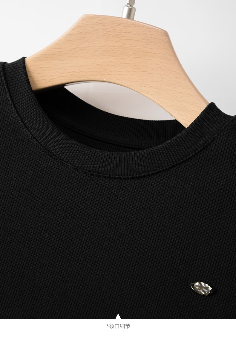 班尼路(Baleno)S&K圆领罗纹短款短袖T恤女2026年夏季女装新款紧密细致纯欲风上衣 浅卡其#纯色 M