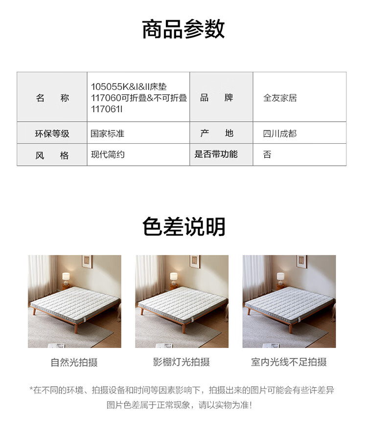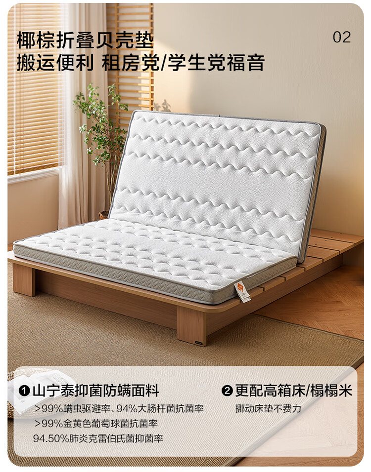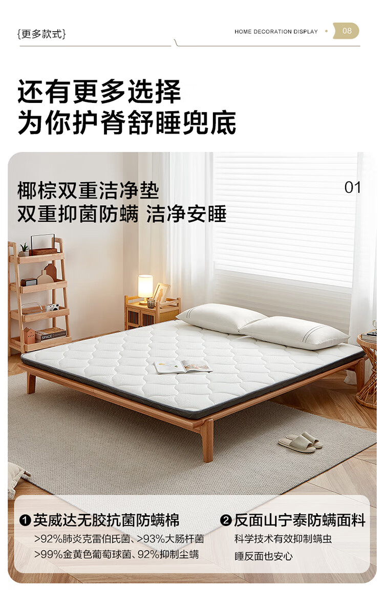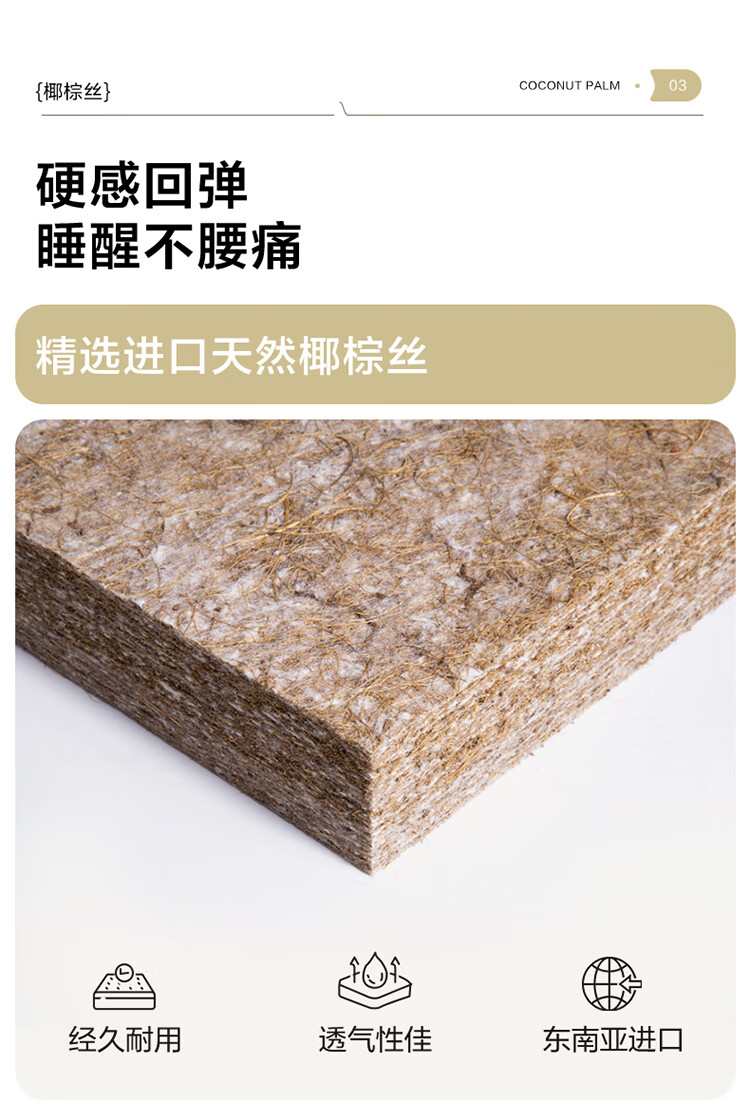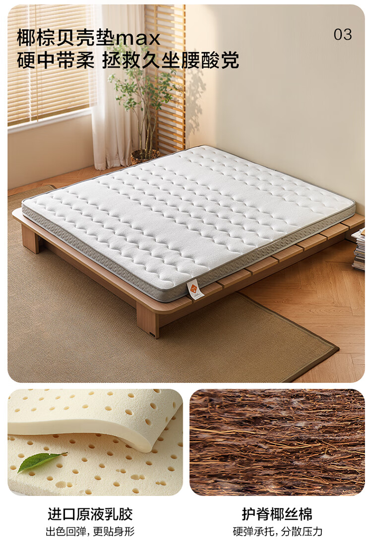 全友家居 0胶水天然椰棕床垫1.8米x2米双人薄款榻榻米床垫偏硬护脊