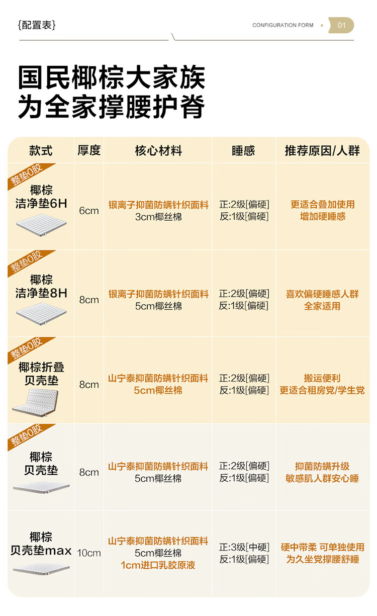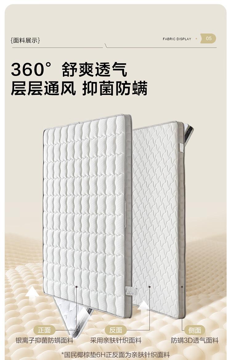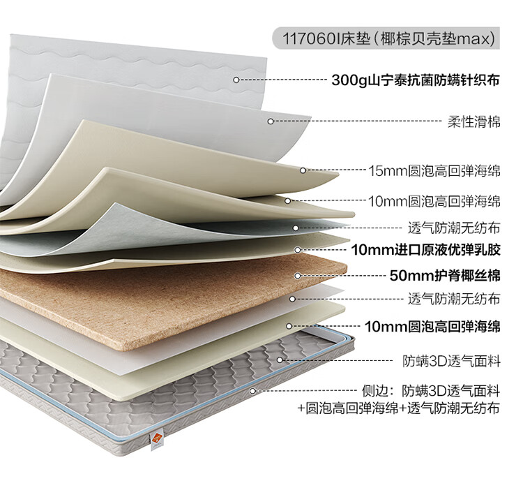 喜临门母婴适用 诺蓝国补偏硬支撑脊椎黄麻 A类亲肤面料 双核抗菌防螨床 诺蓝10H【0胶升级/ A类面料可拆晒】-厚10cm 1.8*2米