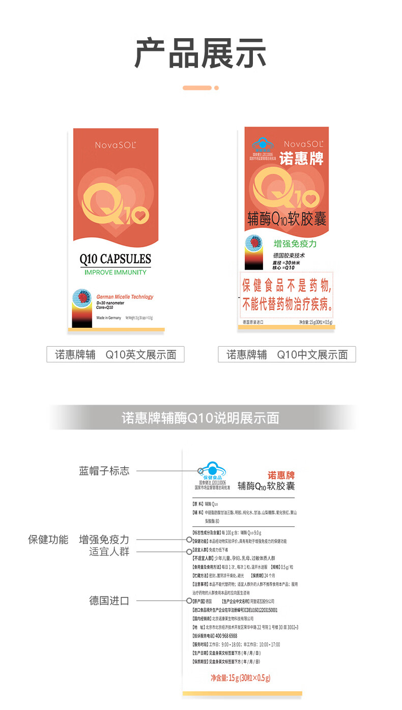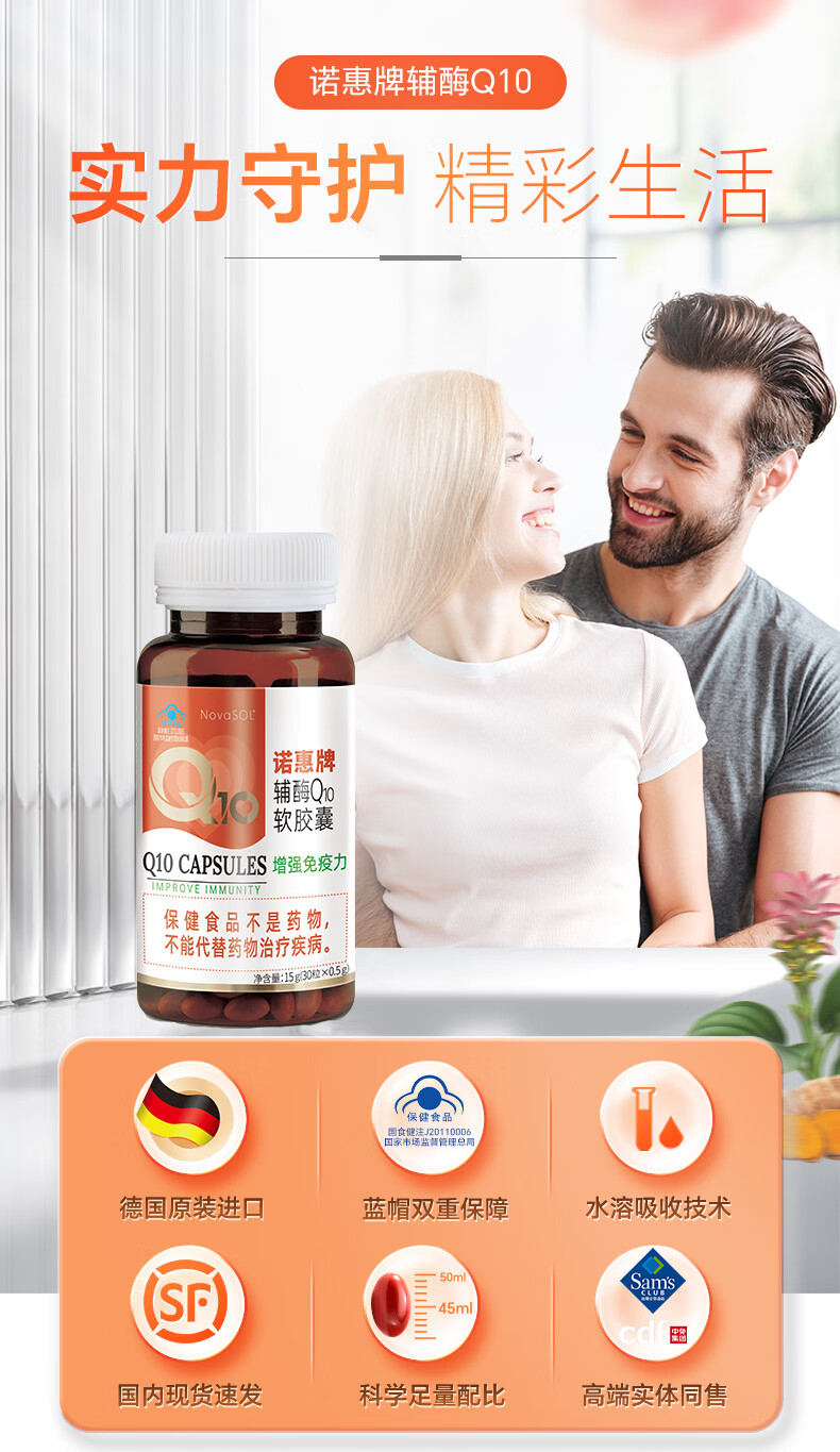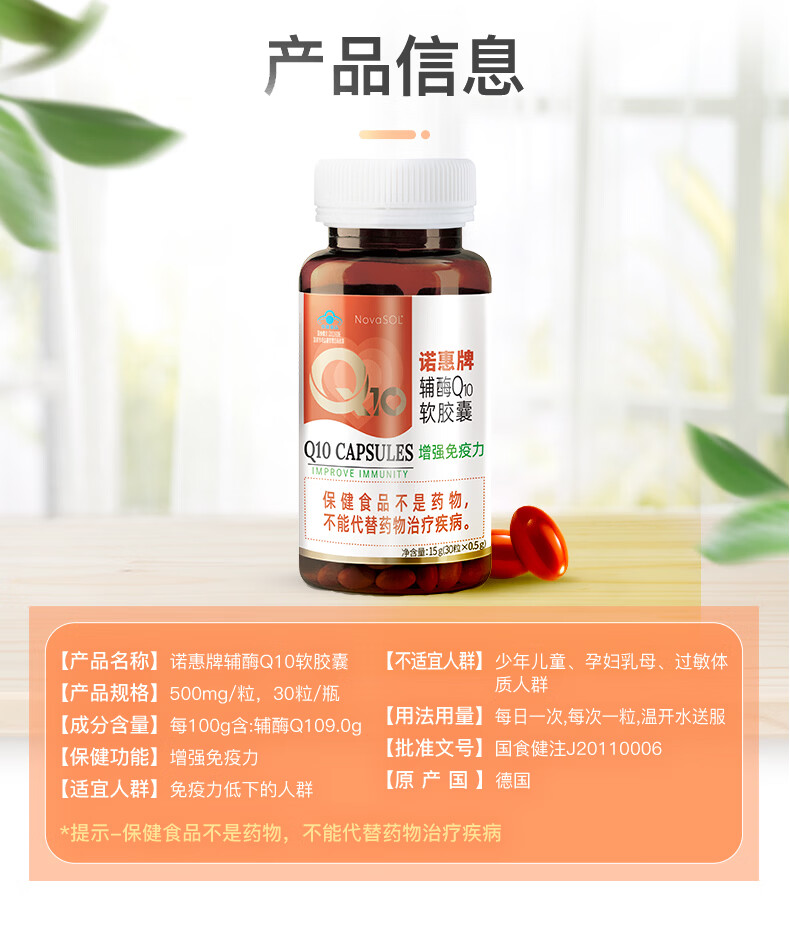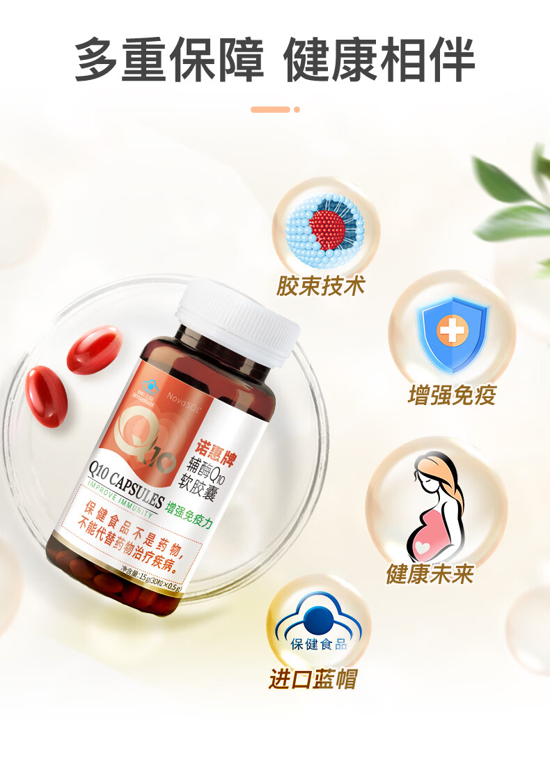 诺惠【买1组送1组】诺惠牌辅酶q10软胶囊德国进口水溶辅酶素保健品 特惠 60粒*1瓶 含赠品1瓶辅酶30粒+1瓶vc