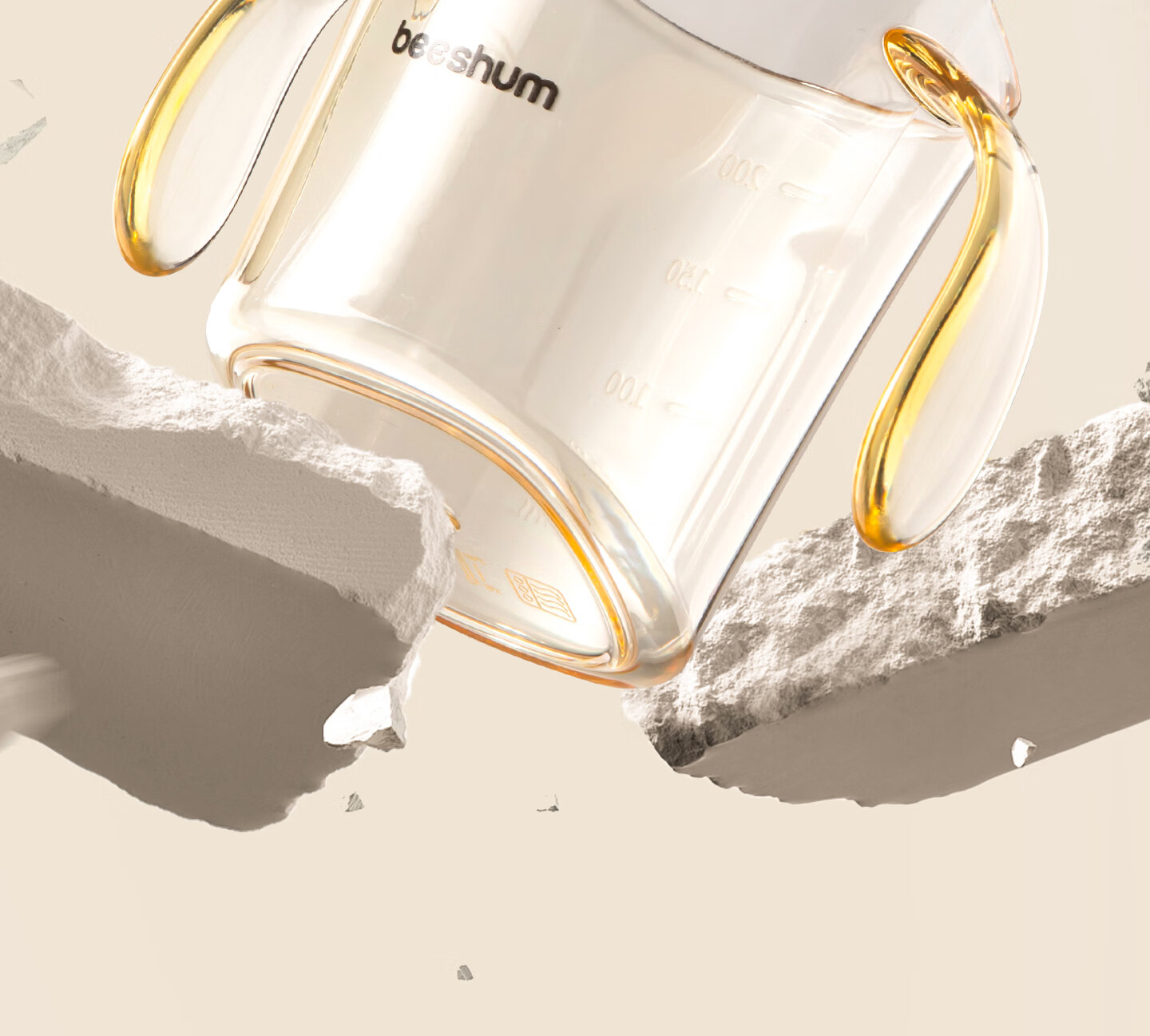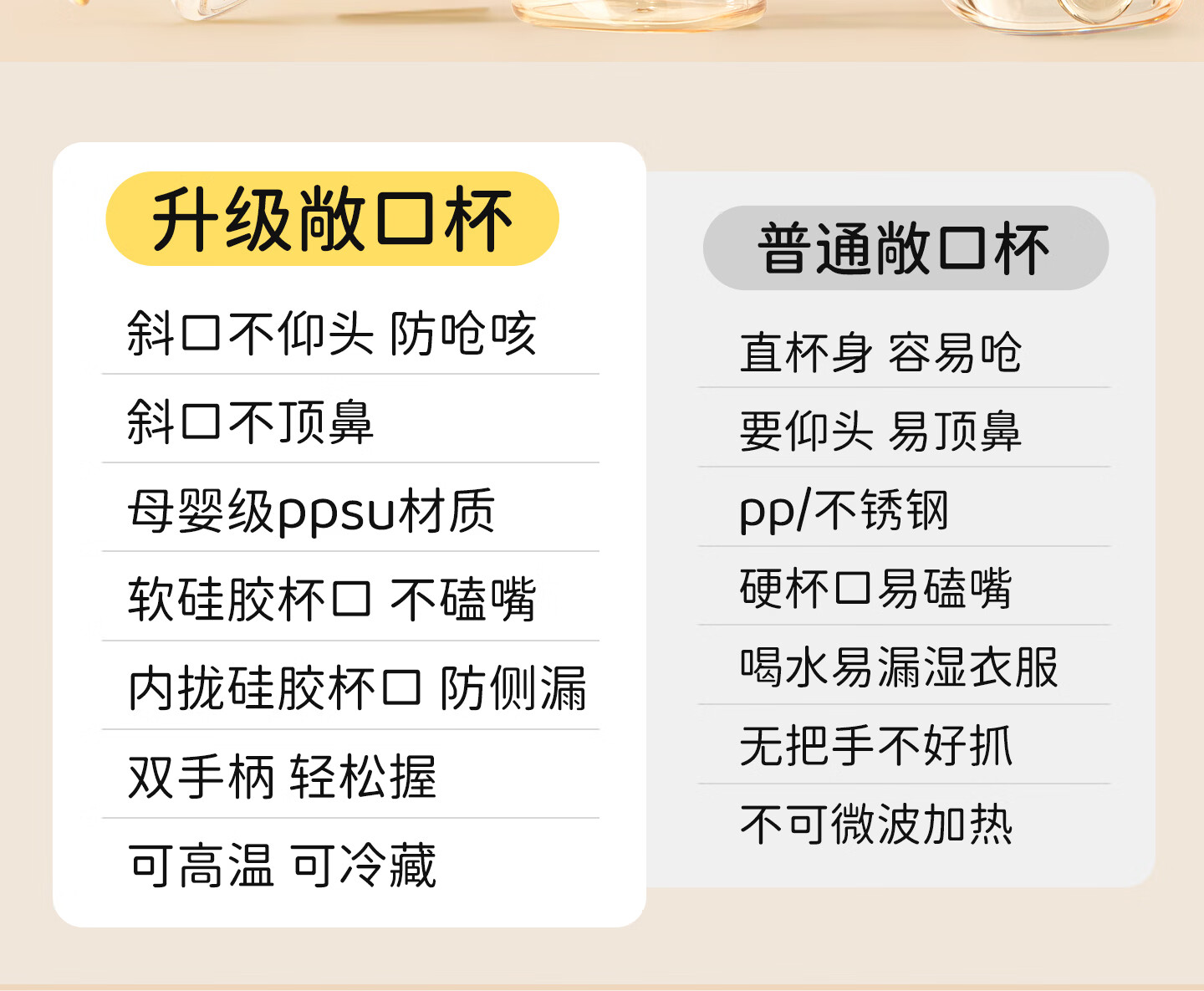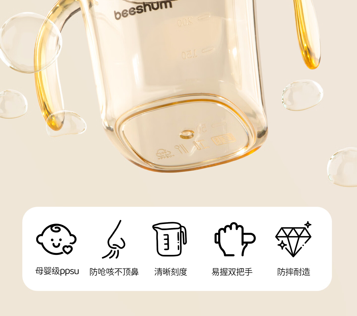 BEESHUM敞口杯宝宝水杯家用PPSU斜口杯儿童学饮直饮喝水喝奶杯子2岁以上 全硅胶斜口杯 260ml