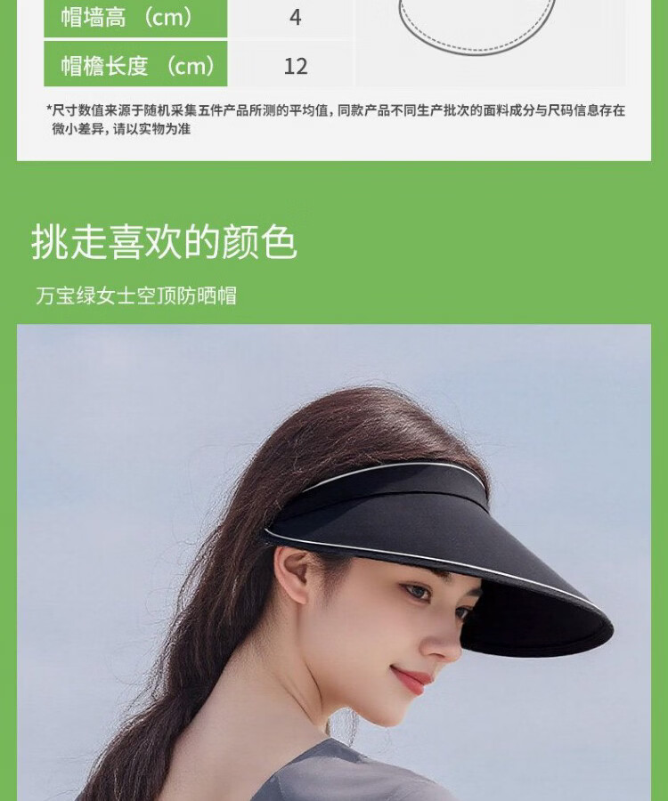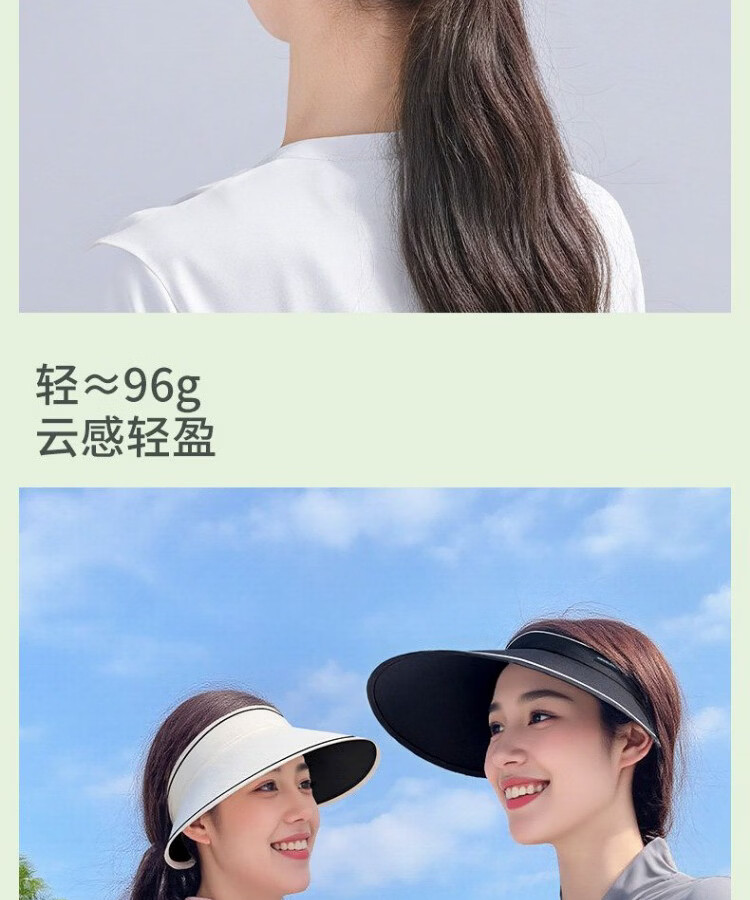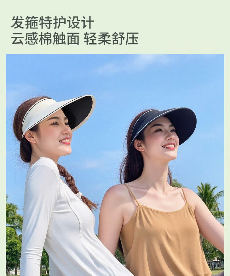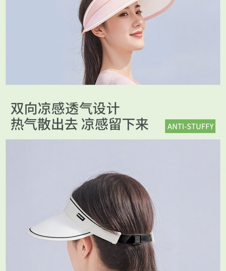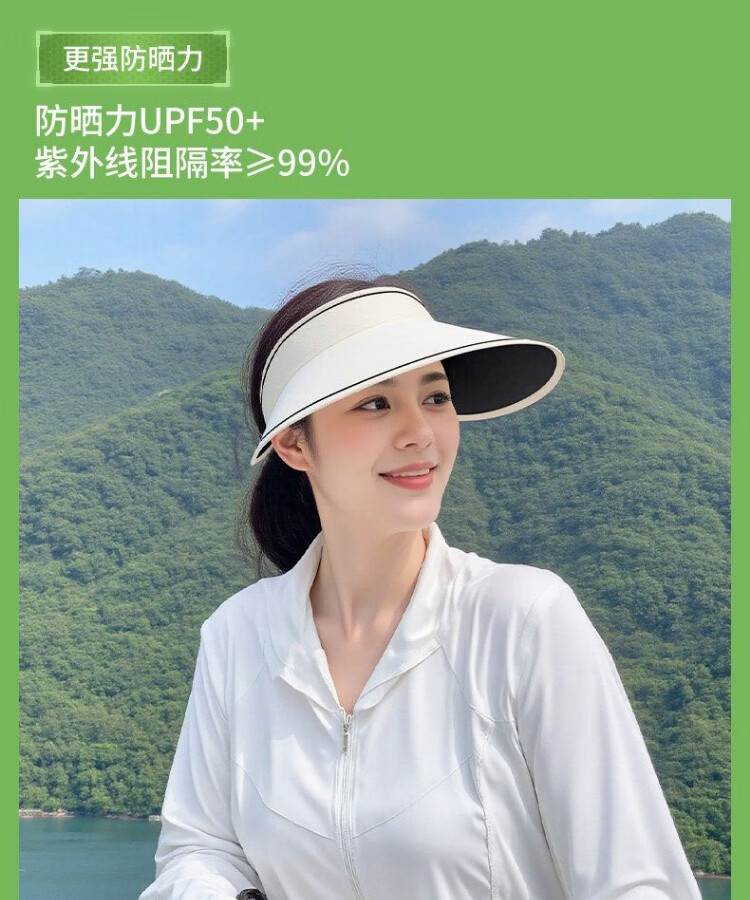 万宝绿黑胶遮阳帽女式防晒防紫外线可折叠2026新款空顶加大帽檐透 黑胶底丨霜奶白【可折叠丨可调头围】