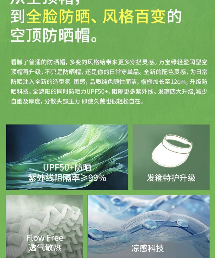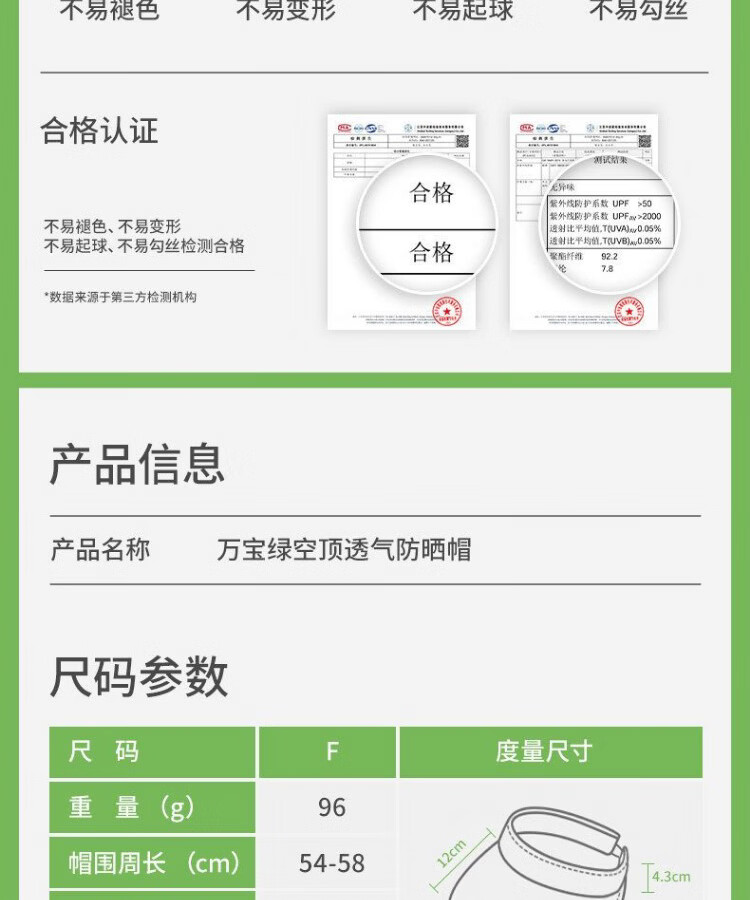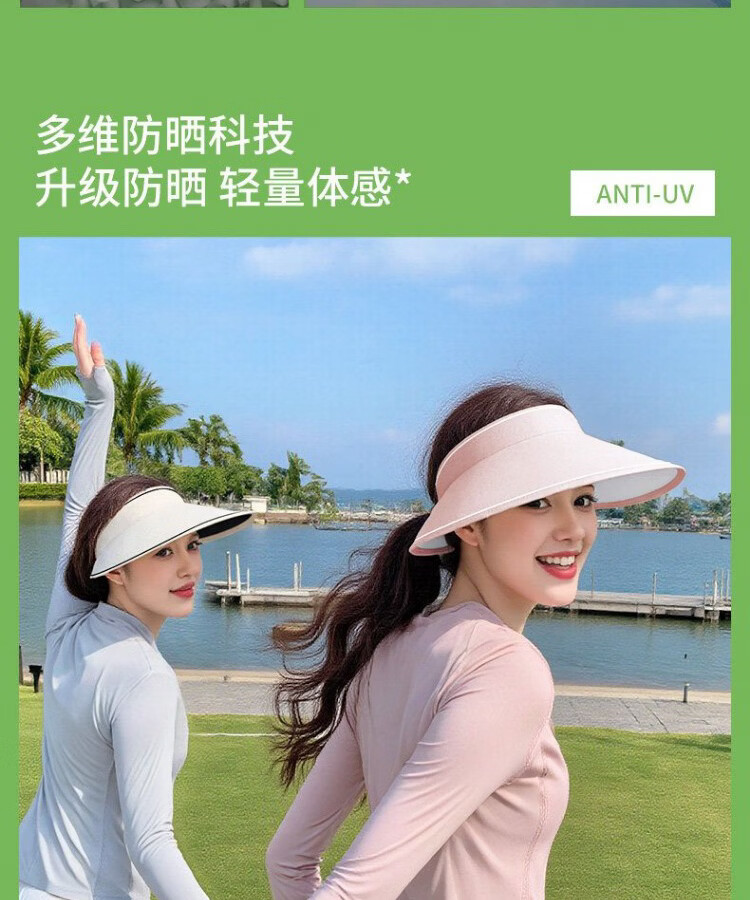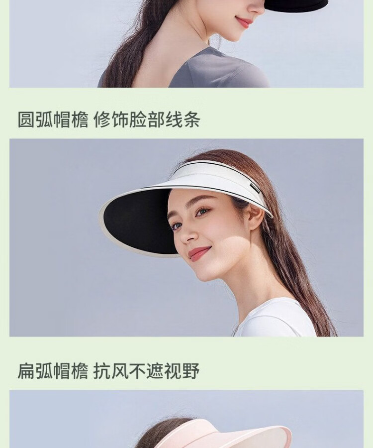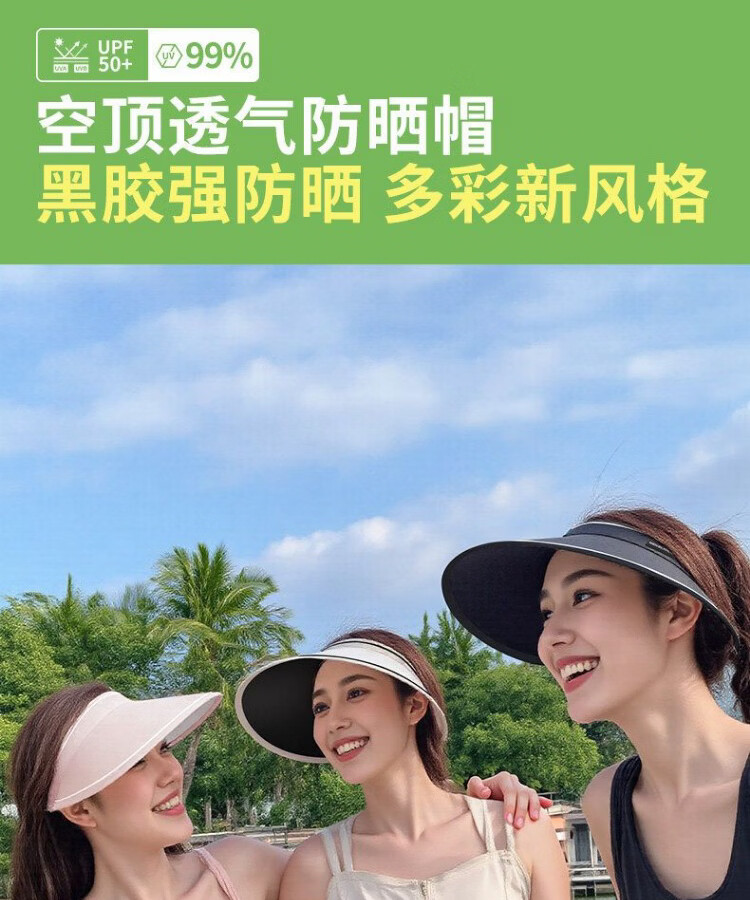 万宝绿黑胶遮阳帽女式防晒防紫外线可折叠2026新款空顶加大帽檐透 黑胶底丨霜奶白【可折叠丨可调头围】