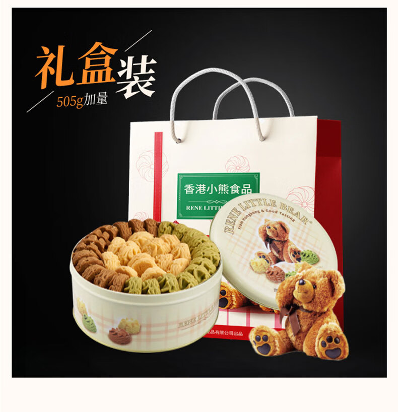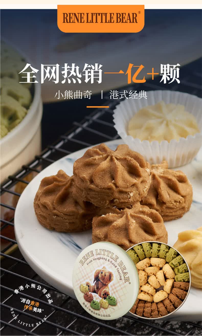 Rene Little Bear香港小熊曲奇饼干办公室休闲甜品零食伴手礼礼物 儿童早餐点心 花曲混合(原味+抹茶+咖啡)505g