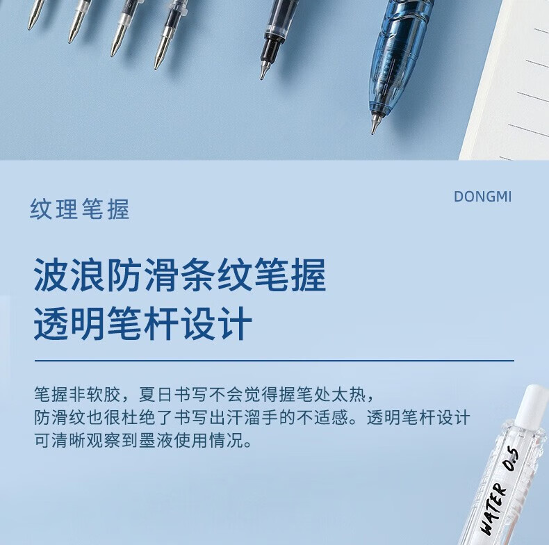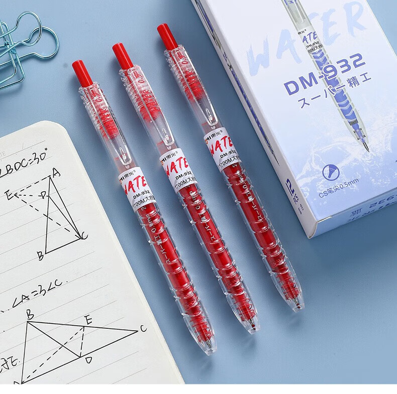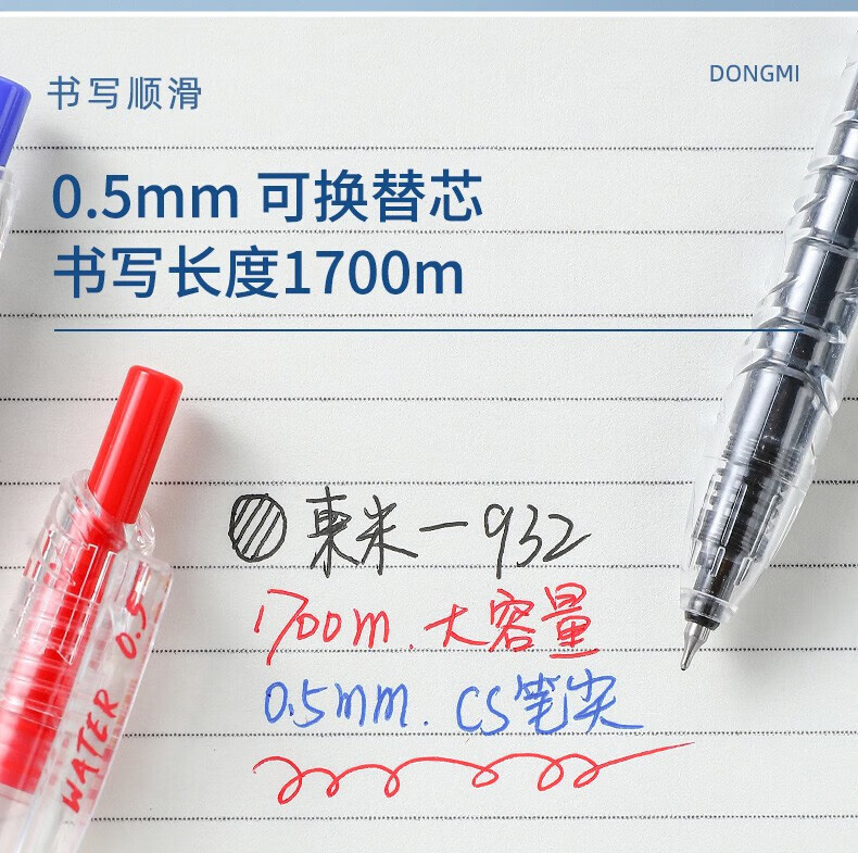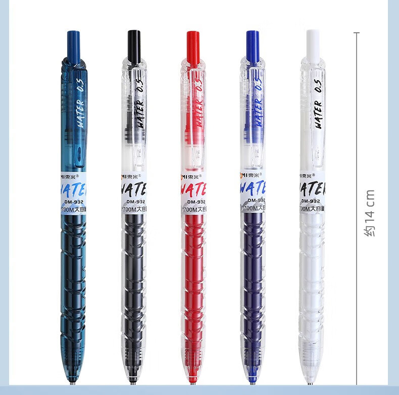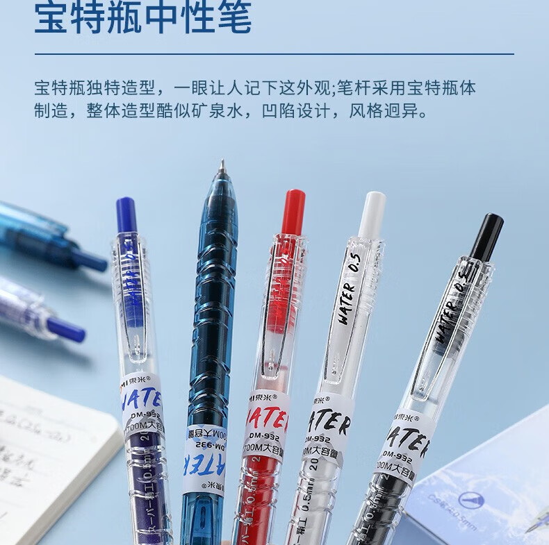 東米东米宝特瓶中性笔刷题笔圆珠学生用黑笔红笔932高颜值碳素速干顺滑日系黑色CS笔芯按动0.5水笔考试 5支笔各一支套装