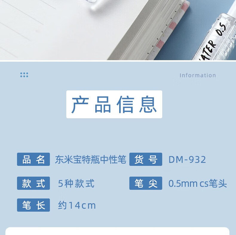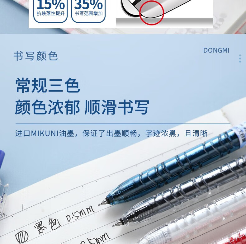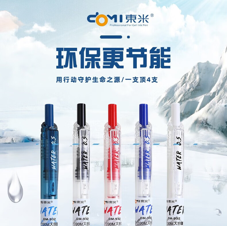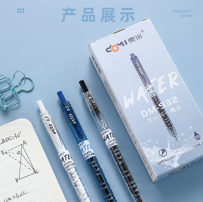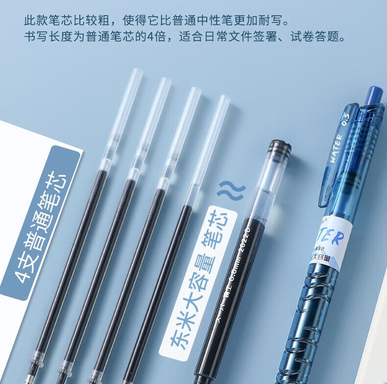 東米东米宝特瓶中性笔刷题笔圆珠学生用黑笔红笔932高颜值碳素速干顺滑日系黑色CS笔芯按动0.5水笔考试 5支笔各一支套装