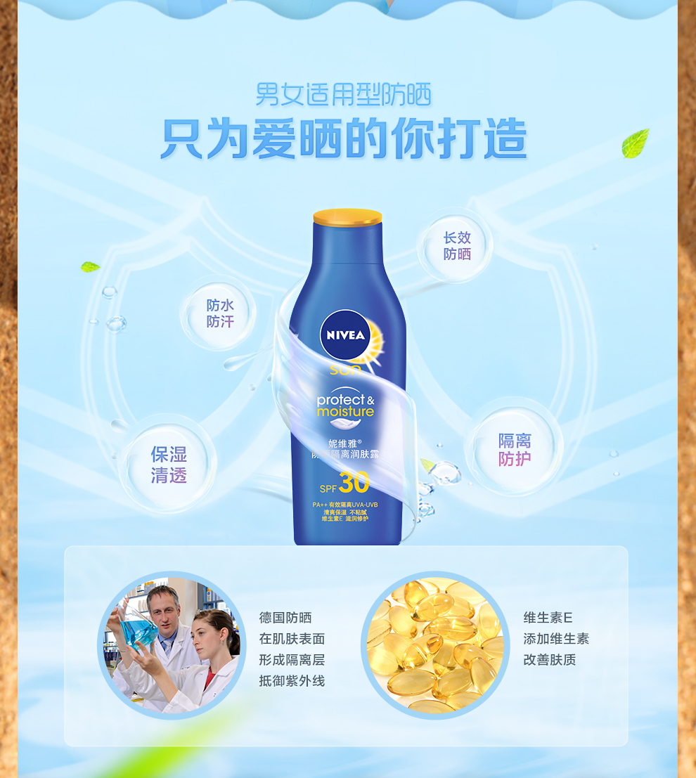 妮维雅(NIVEA)防晒霜露男女护肤防水防汗保湿清爽轻透户外乳液学生礼物 【防晒补水】防晒隔离润肤乳双支