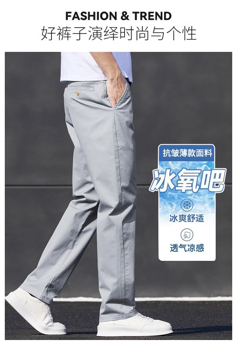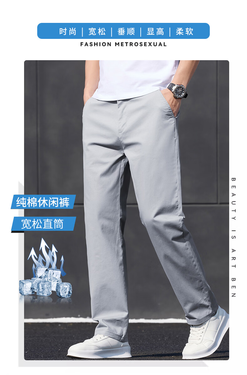 真维斯高端宽松直筒休闲裤男士春秋商务西裤百搭纯棉裤子男款秋季 浅灰 28