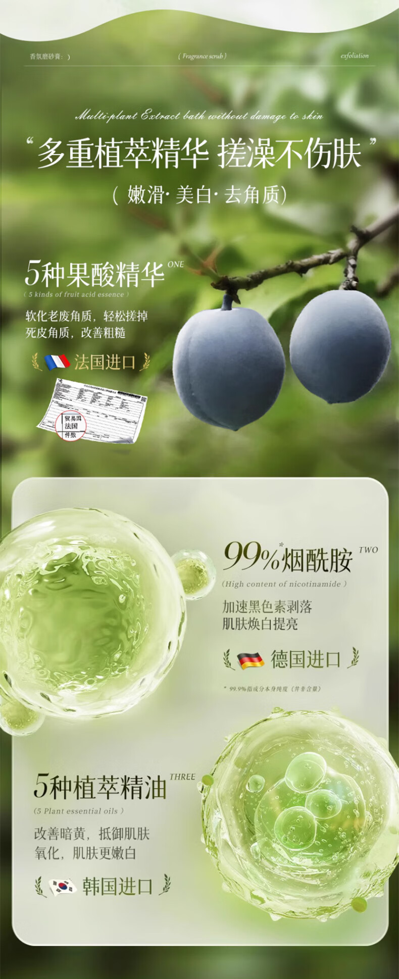 维特丝果酸身体磨砂膏烟酰胺去角质身体提亮皮肤全身死皮男女士搓澡泥宝