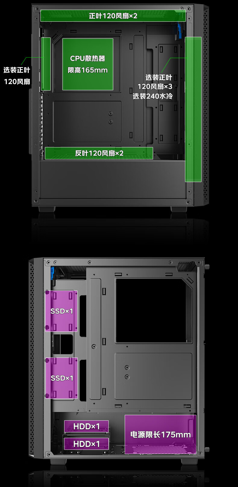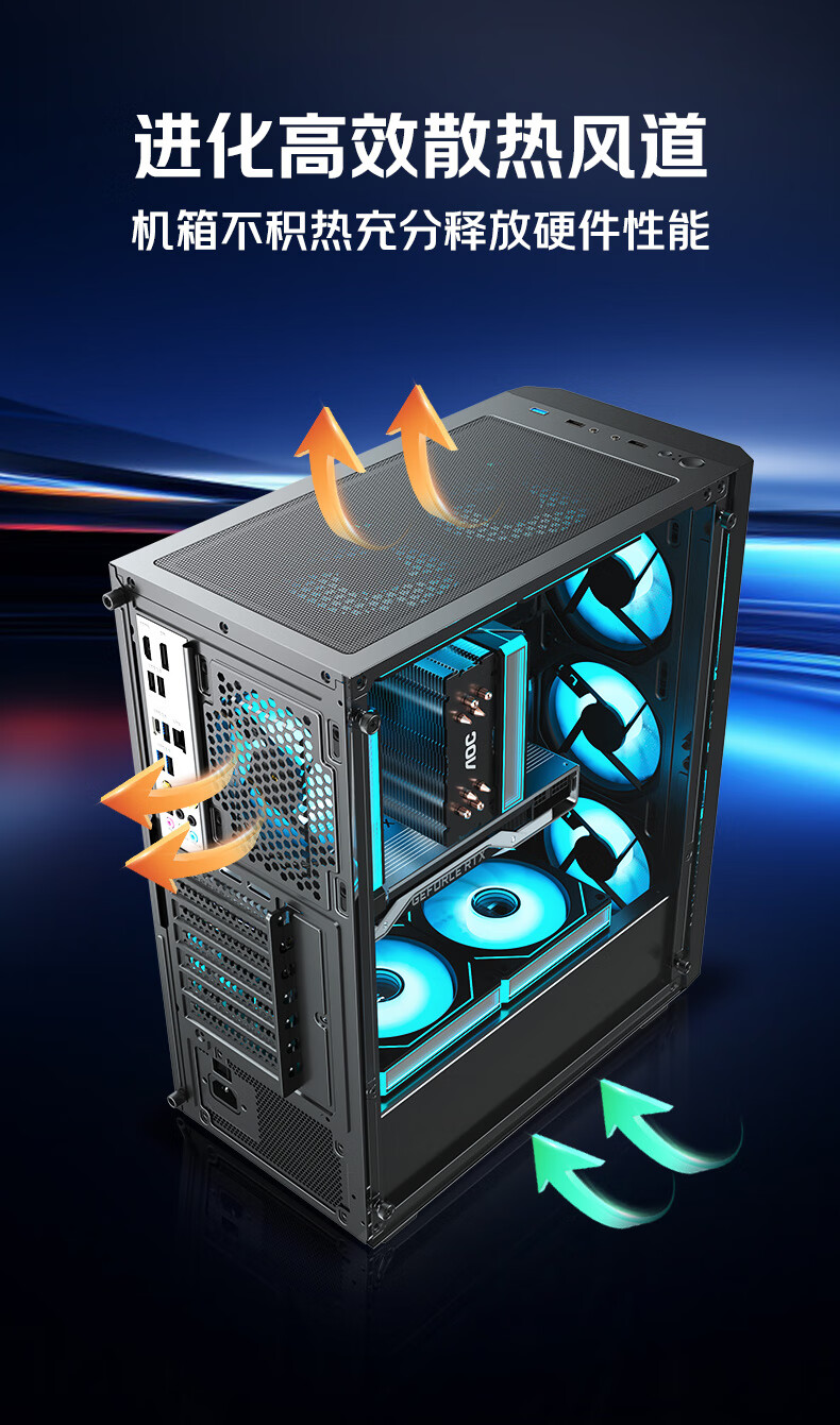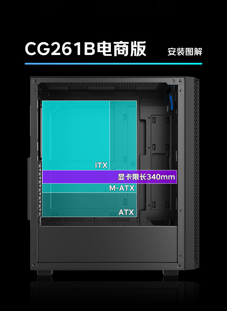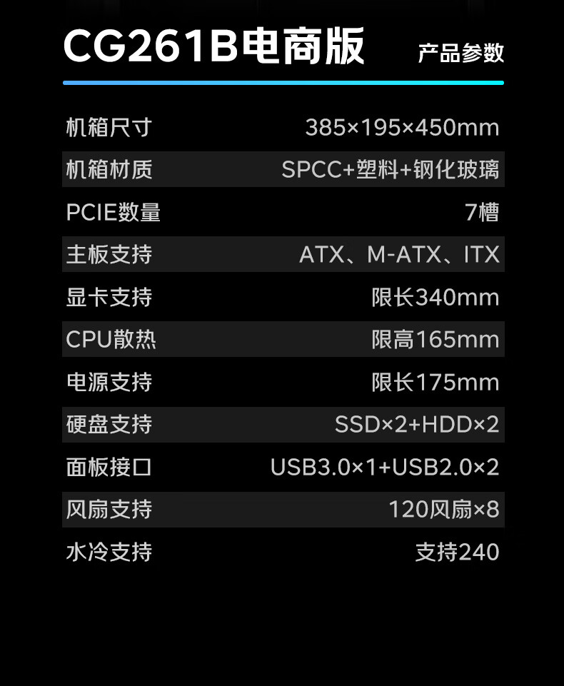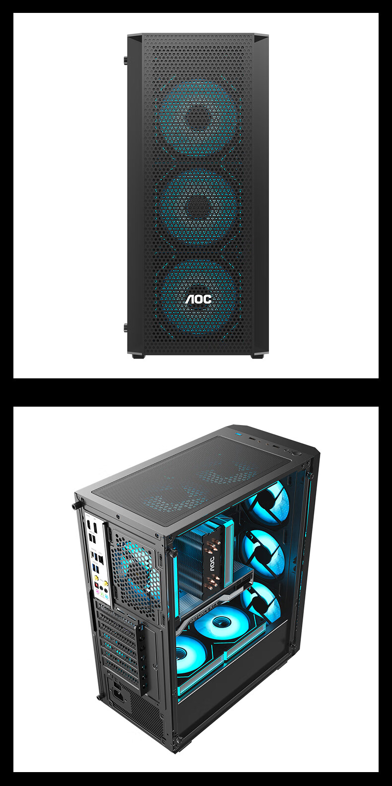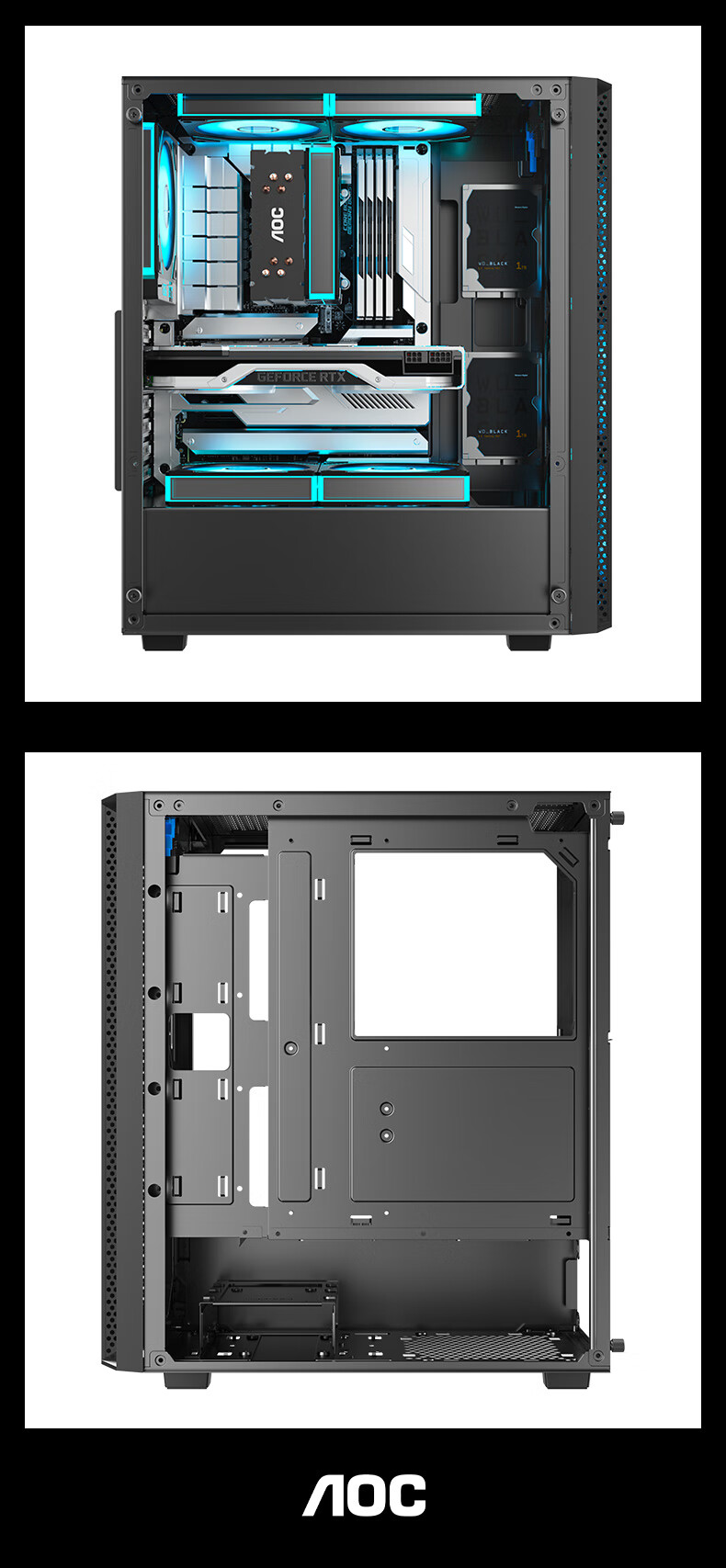 AOC台式电脑机箱CG261B黑色简约办公游戏静音主机箱支持ATX主板240水冷8风扇位