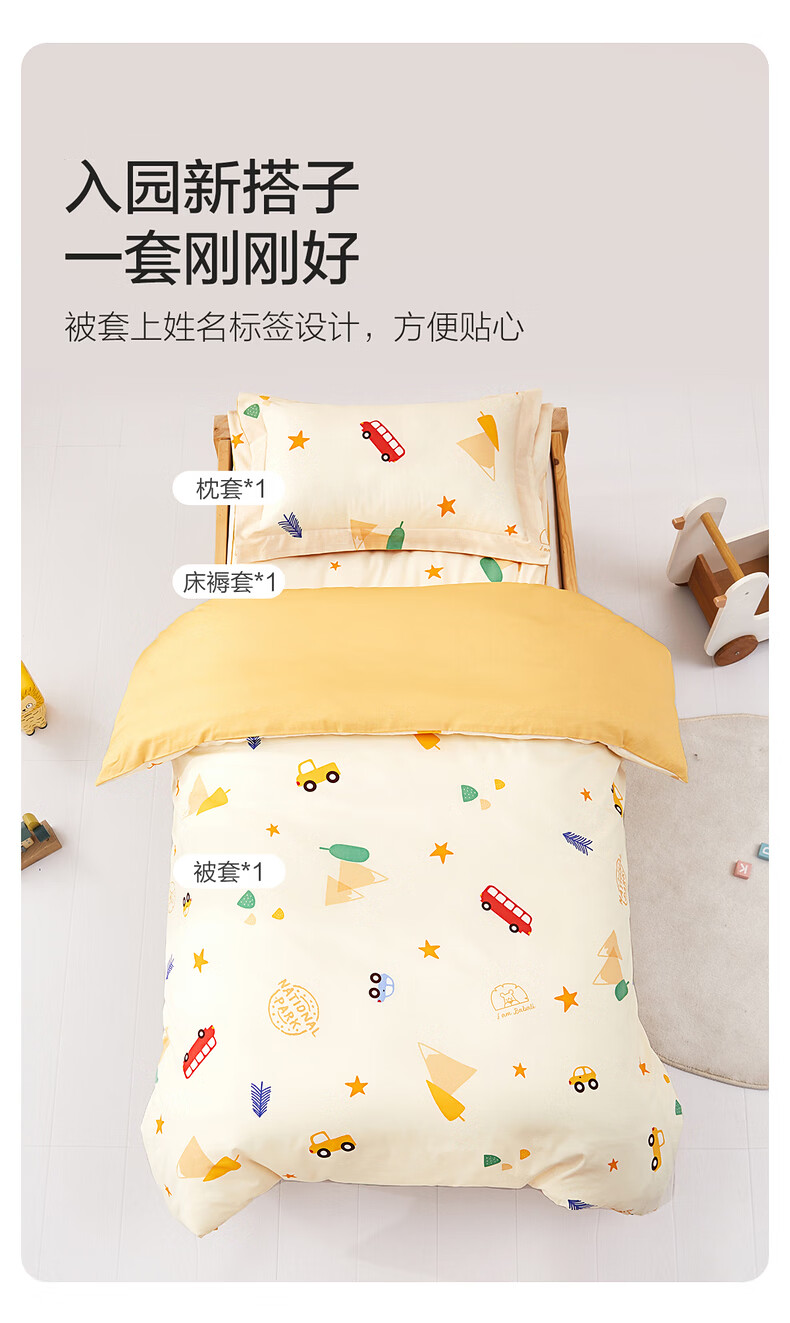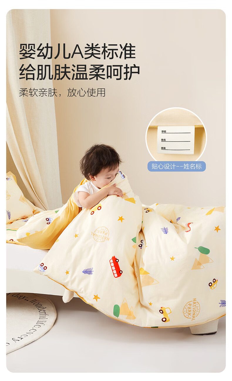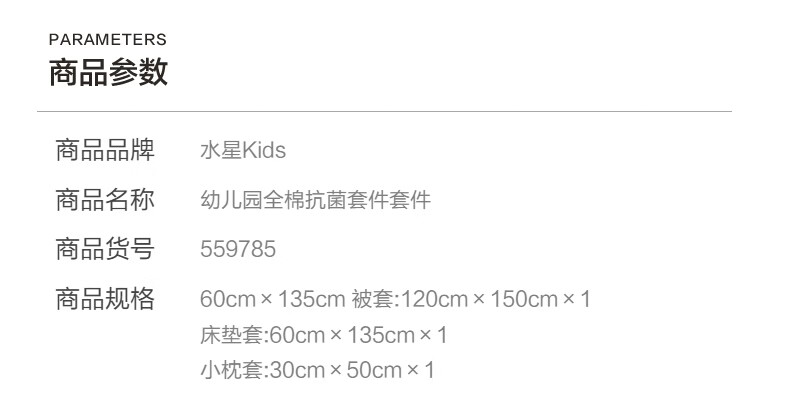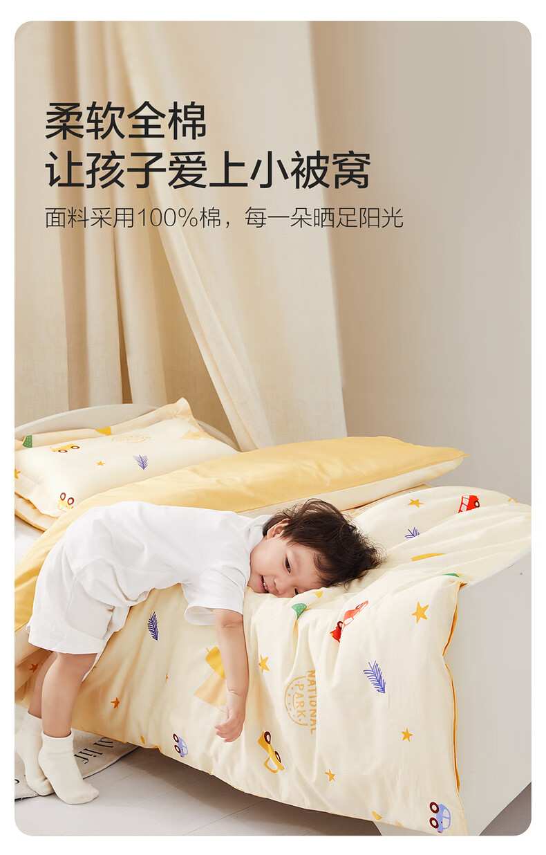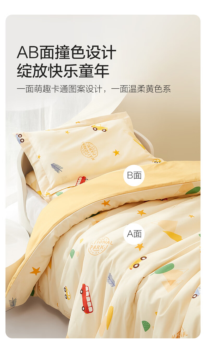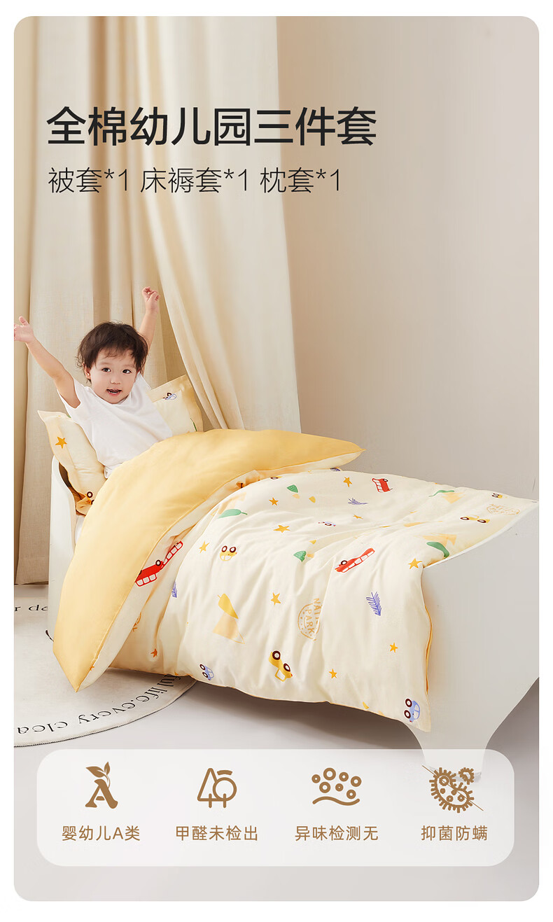 水星家纺四件套床上用品纯棉100%全棉婴幼儿A类儿童学生宿舍26年套件 幼儿园全棉抗菌套件 床笠款 (被套60*135cm)