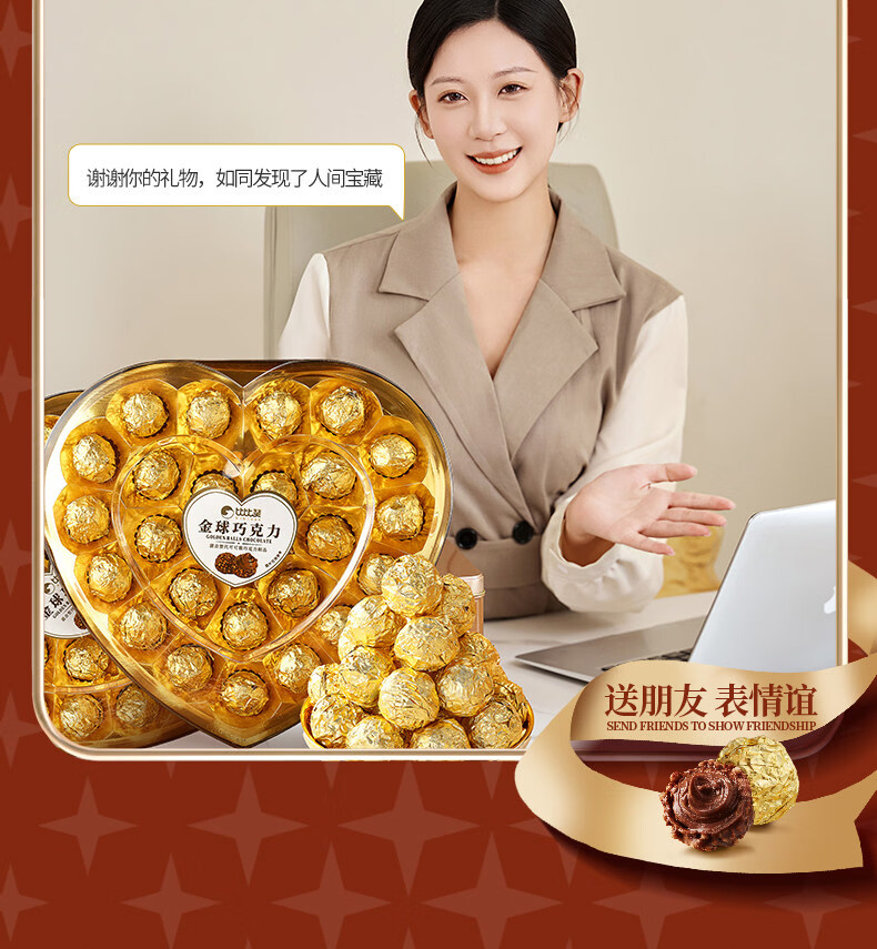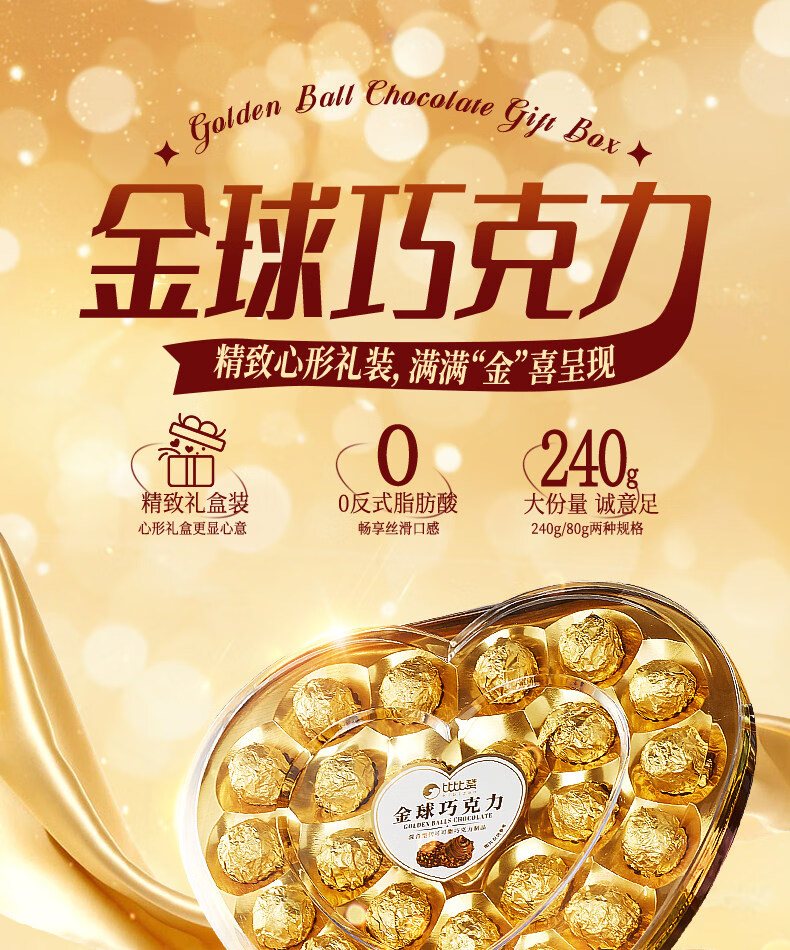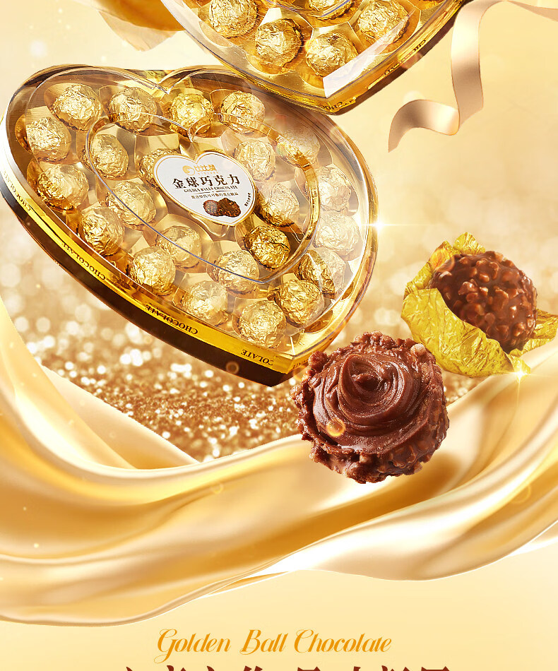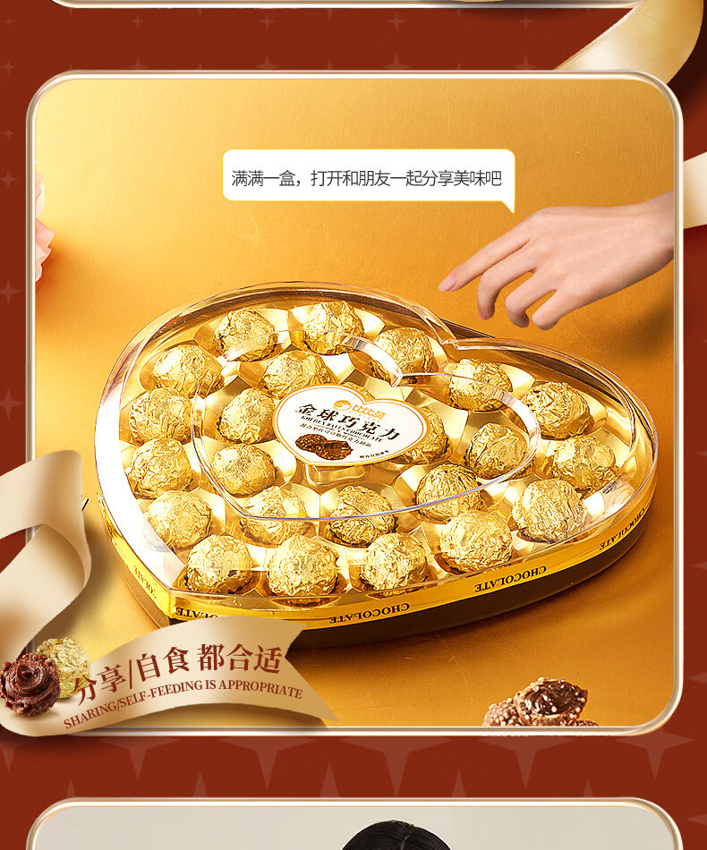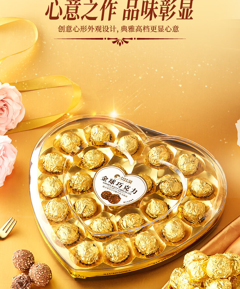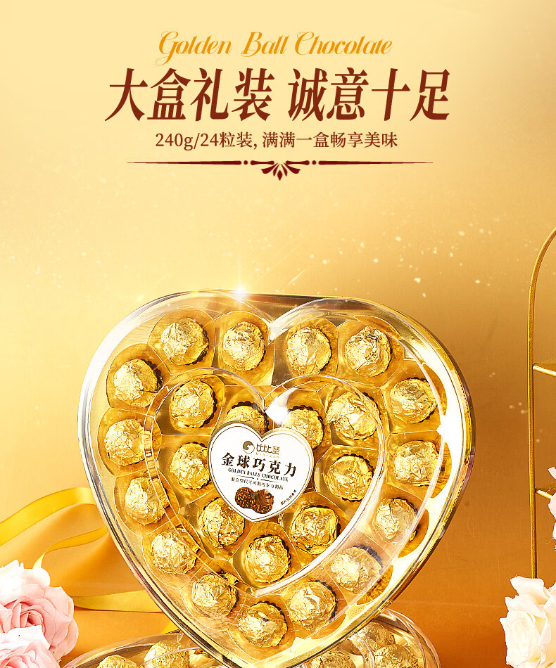 金球巧克力爱心礼盒情人节网红爆款喜糖果批发 【约8颗】金球巧克力【爱心礼盒】80g/盒