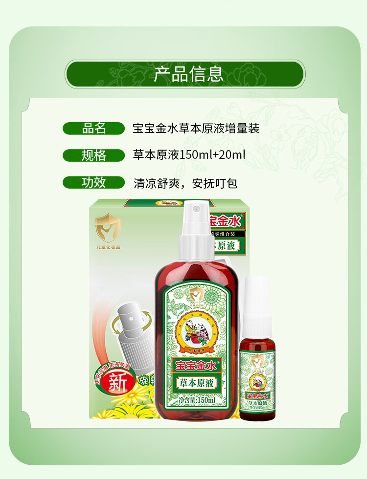 宝宝金水婴幼儿草本原液泡澡止痒花露水170ml