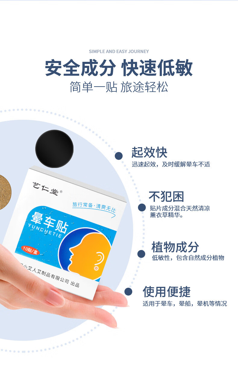 艺仁堂晕车贴晕机晕船贴学生成人外出旅行便携穴位贴耳部晕车贴 晕车贴儿童成人20贴【旅行必备】2盒 艾叶、干姜等