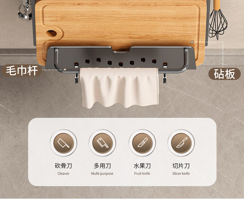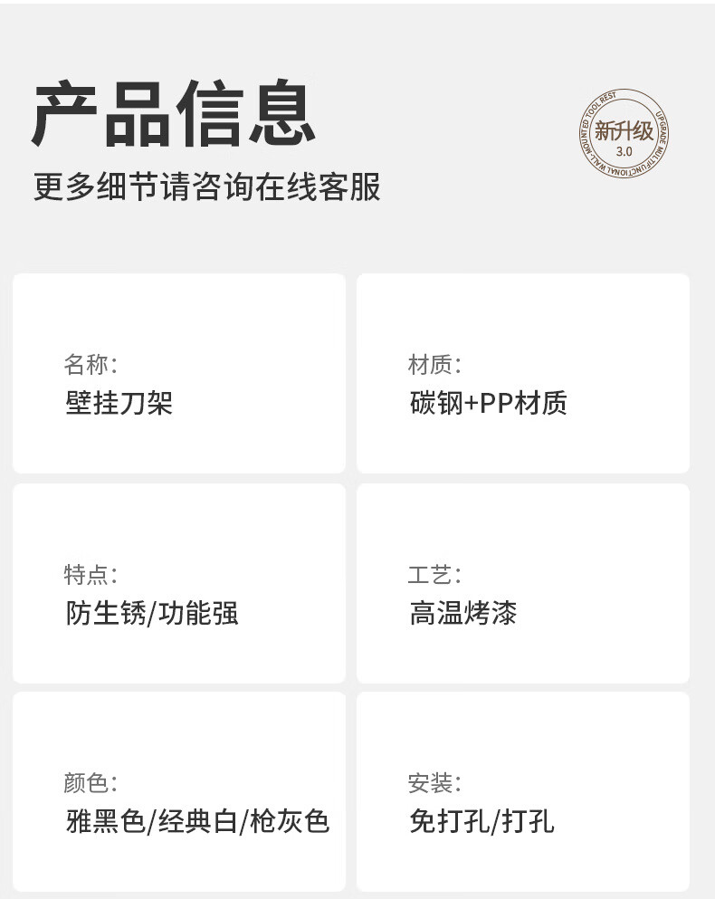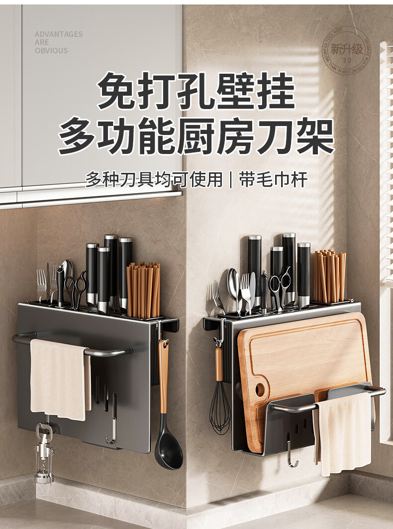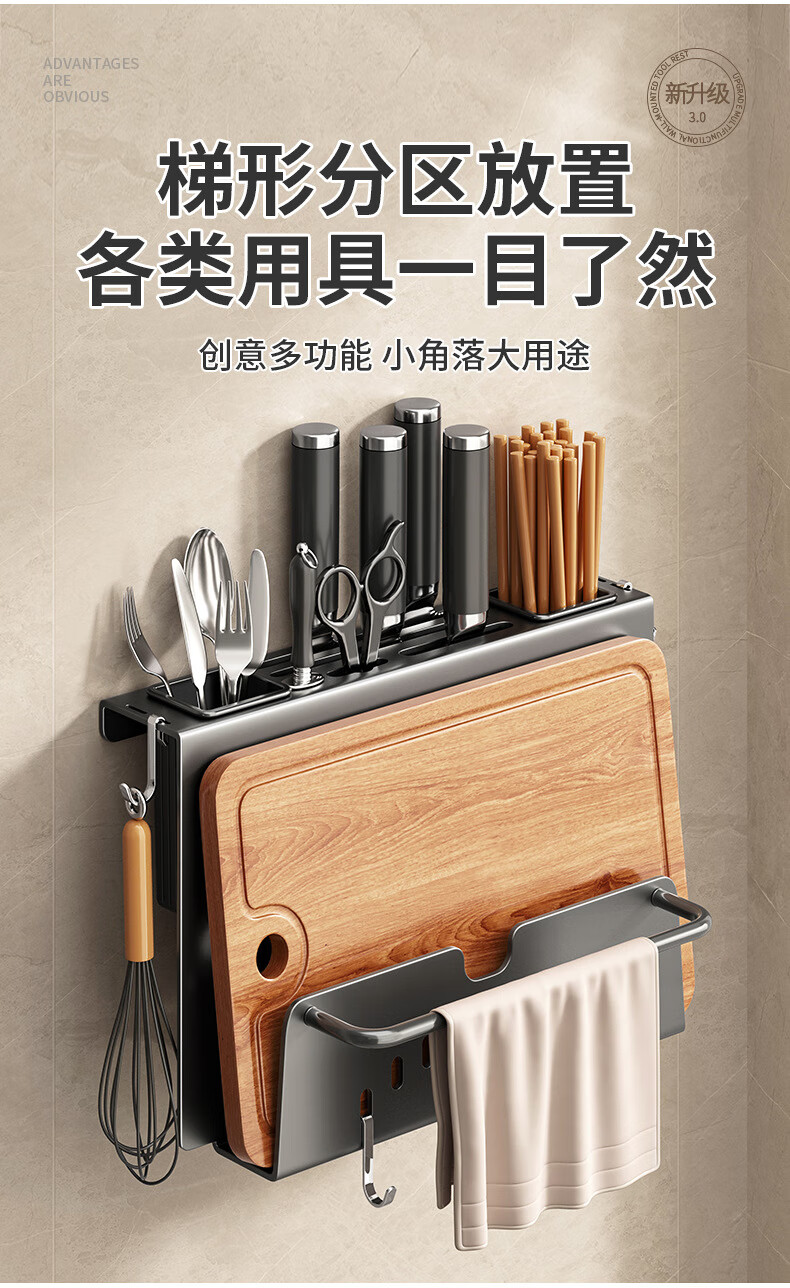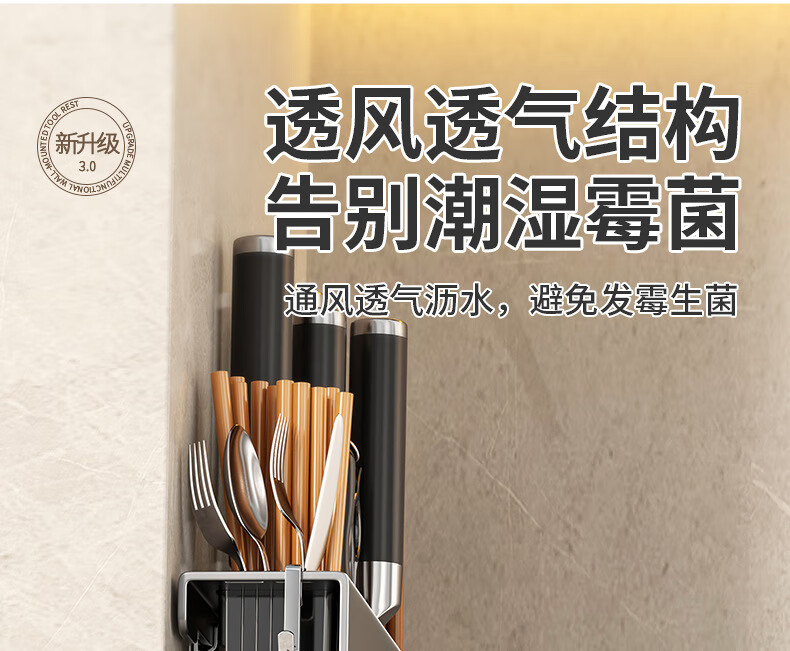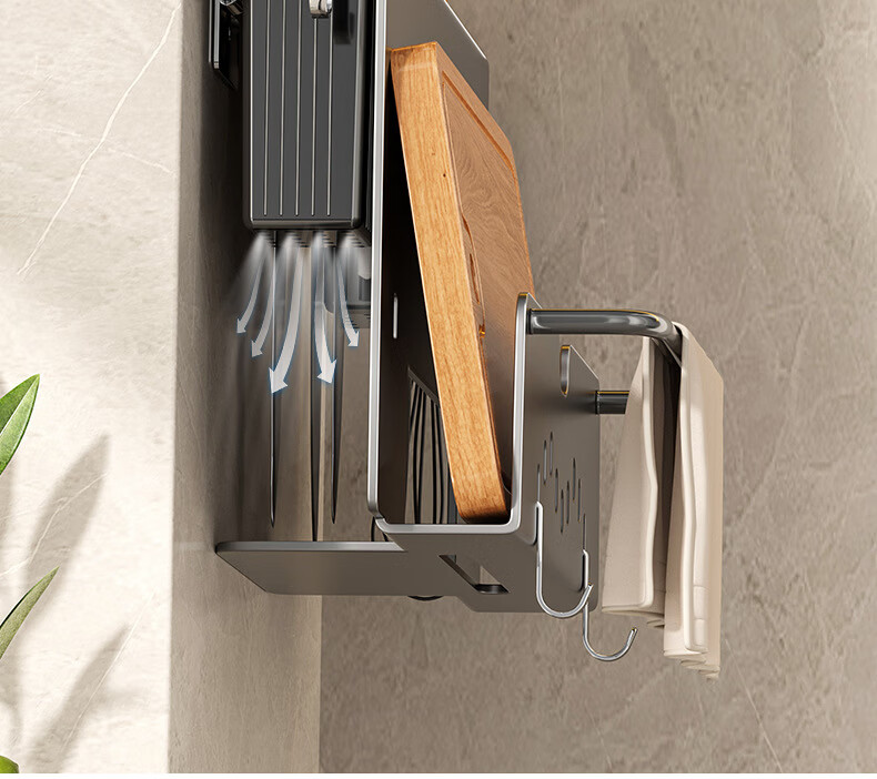 hywlkj刀架置物架家用壁挂式多功能菜刀锅盖架筷子筒刀架一体刀具收纳架 白色