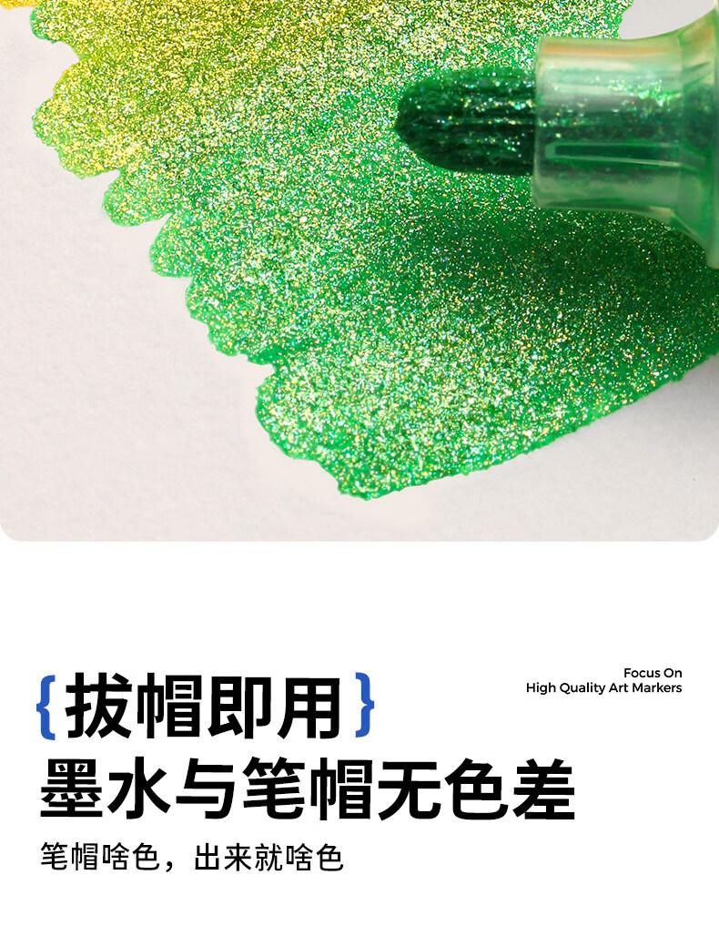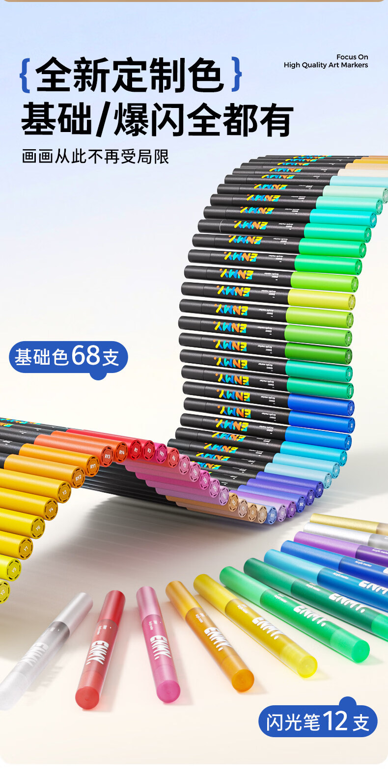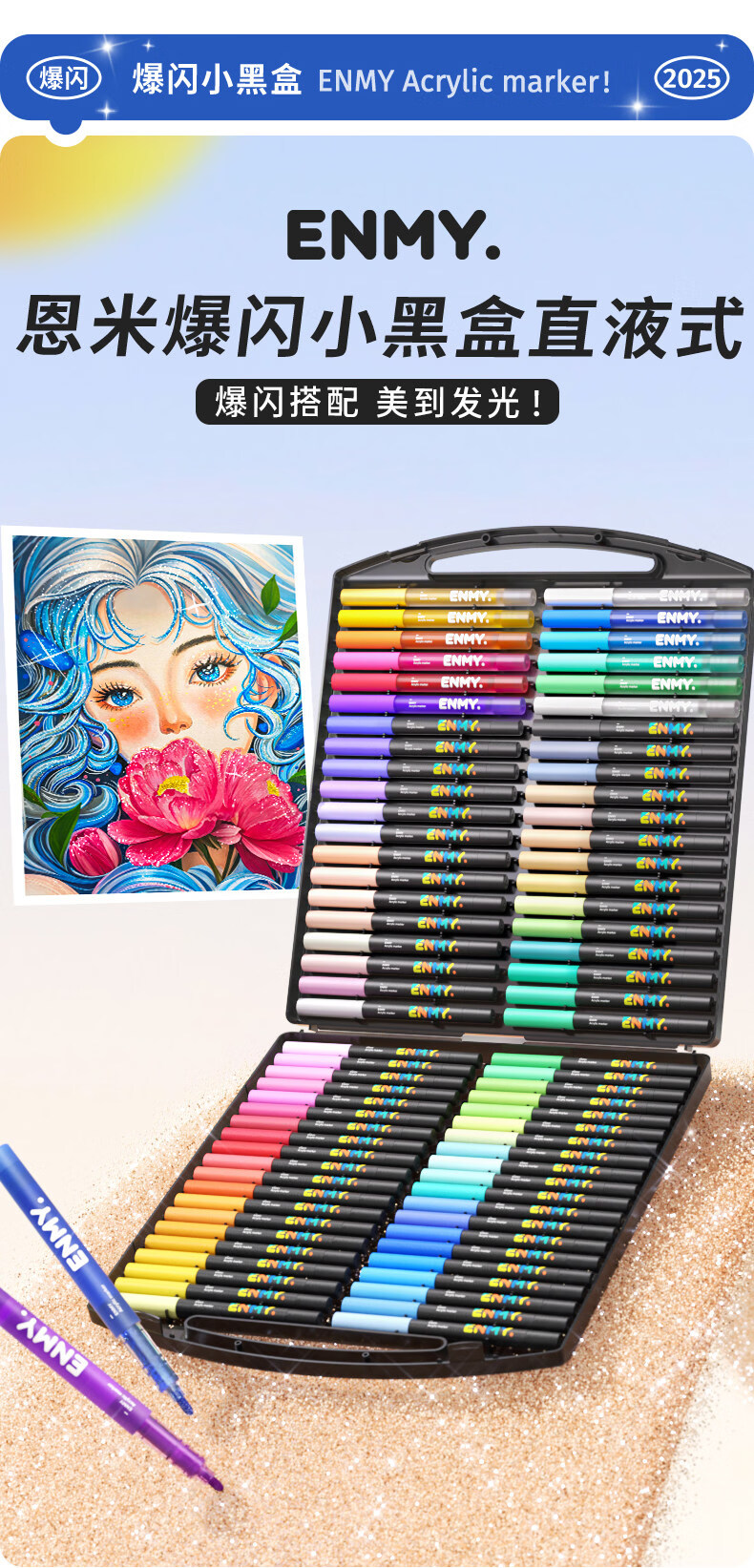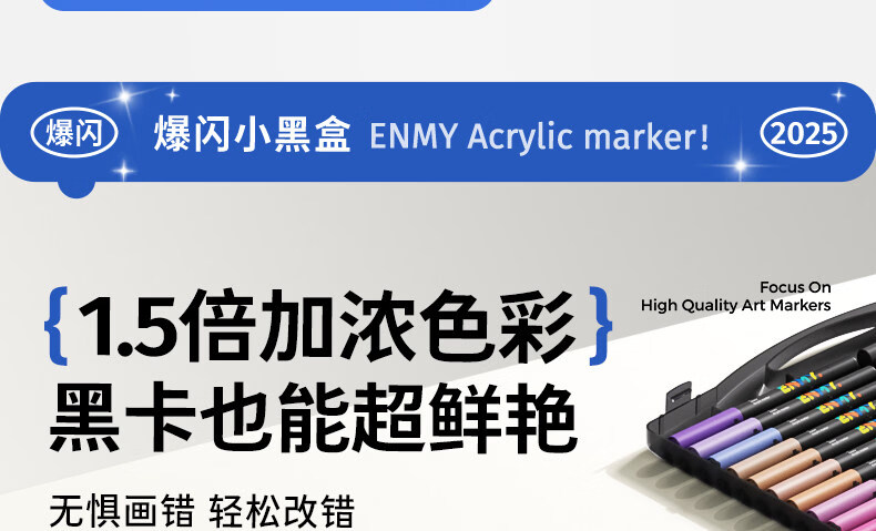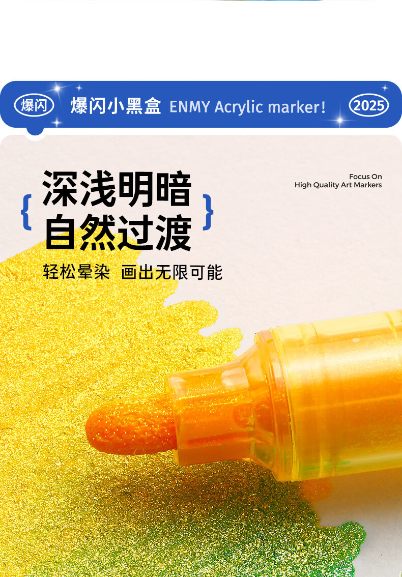 恩米小黑盒爆闪丙烯马克笔直液式软头80色笔芯彩色小学生美术生马克笔马克笔闪光笔高光笔文具 【爆闪轻阀门】12色丨 特闪系列丨绘画更闪耀