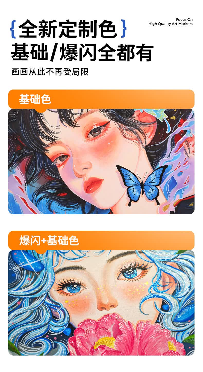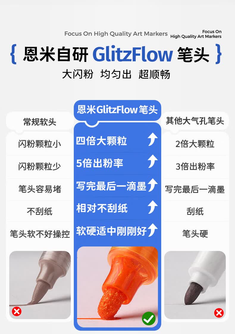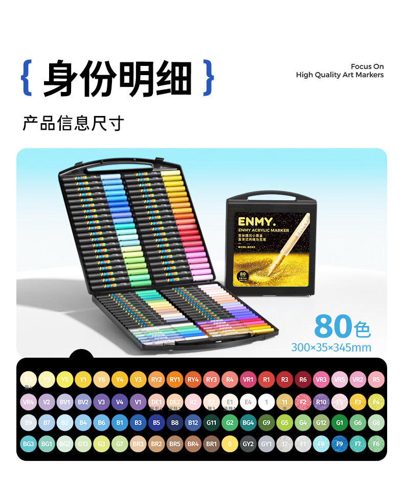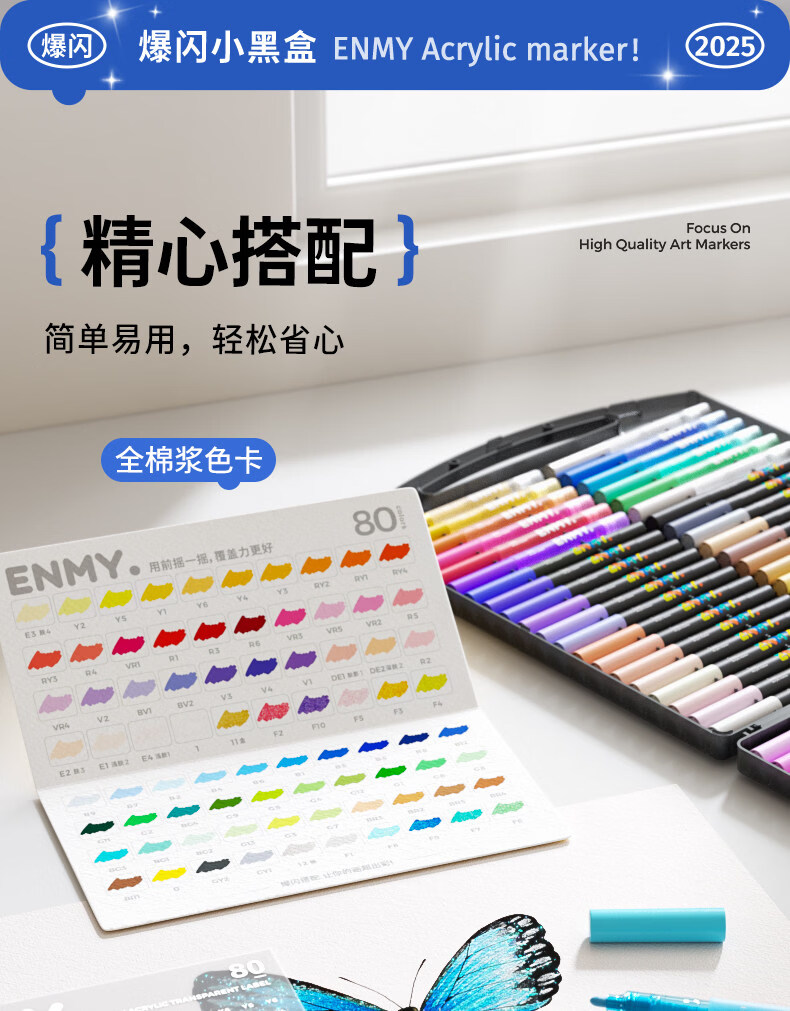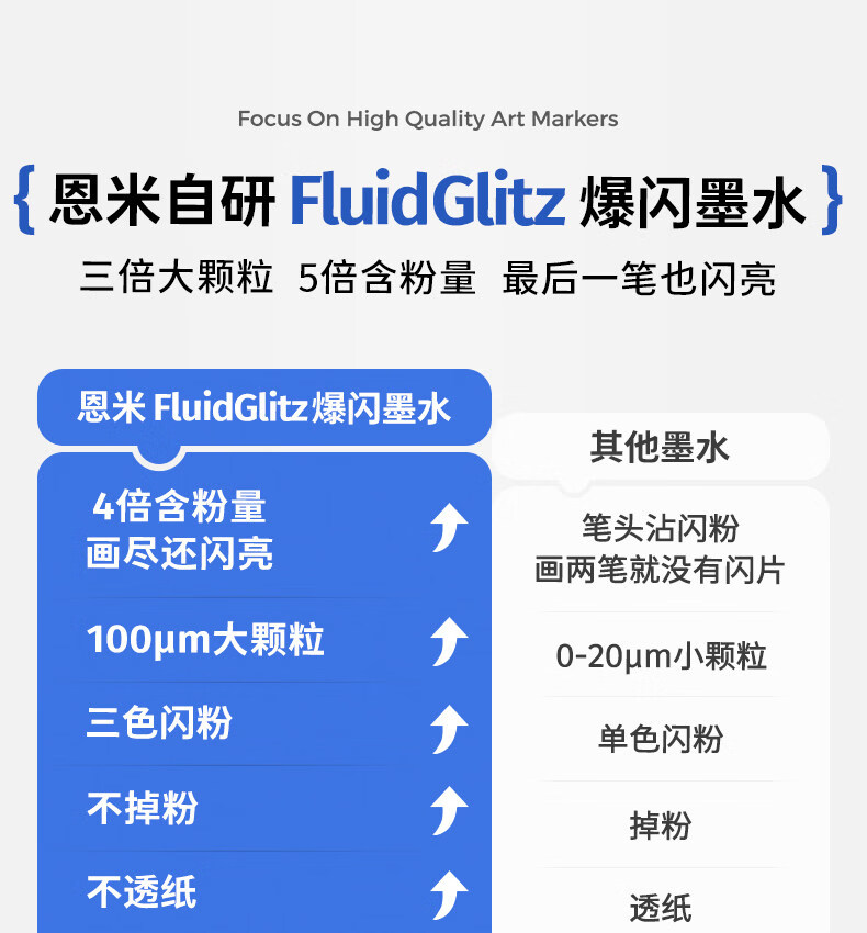 恩米小黑盒爆闪丙烯马克笔直液式软头80色笔芯彩色小学生美术生马克笔马克笔闪光笔高光笔文具 【爆闪轻阀门】12色丨 特闪系列丨绘画更闪耀