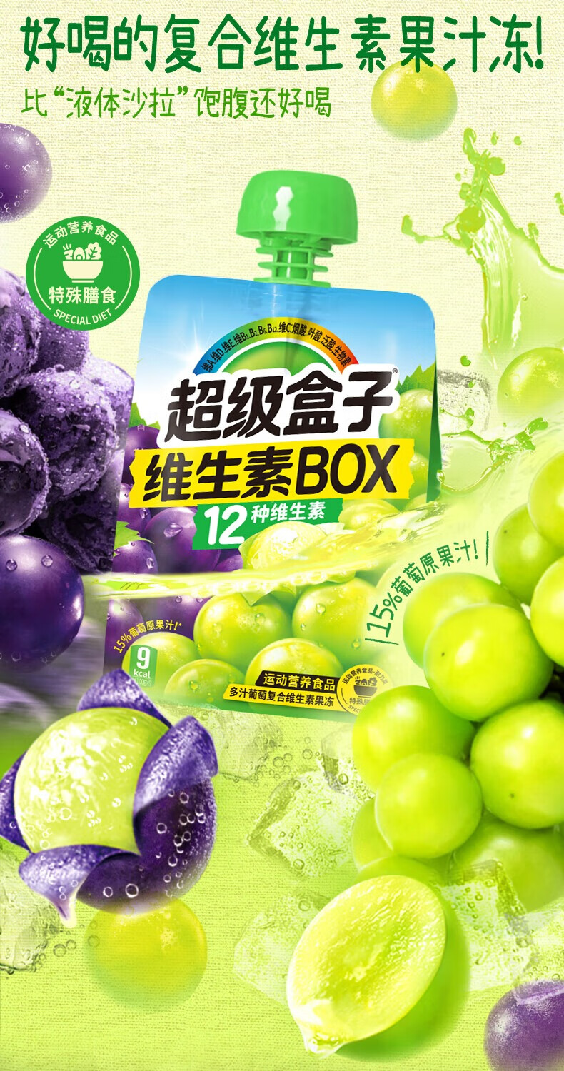 超级盒子多汁葡萄复合维生素果冻运动营养食品【临期】 【放心吃低负担】 150g*12袋