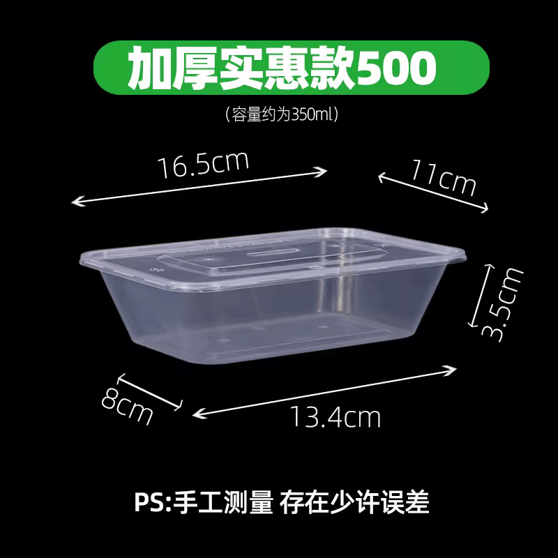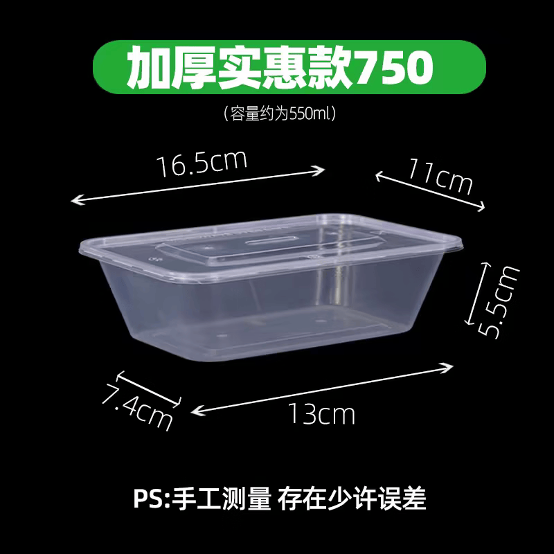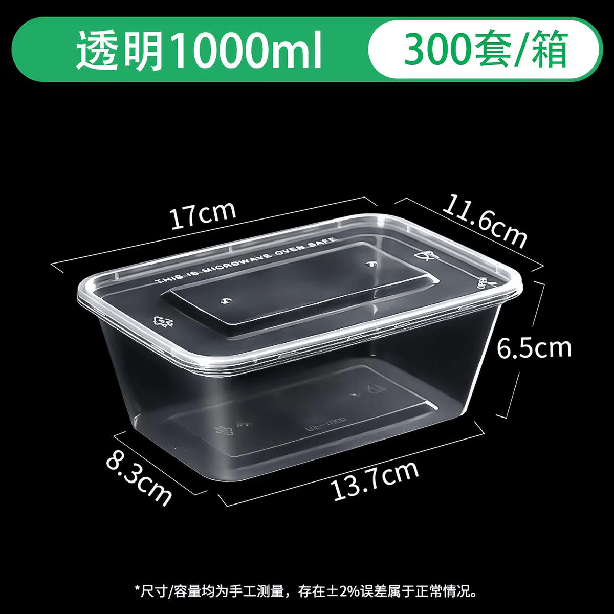 Ka食品级方形餐盒带盖一次性餐盒透明外卖打包盒加厚塑料快餐饭盒 方盒带盖 1000方300个