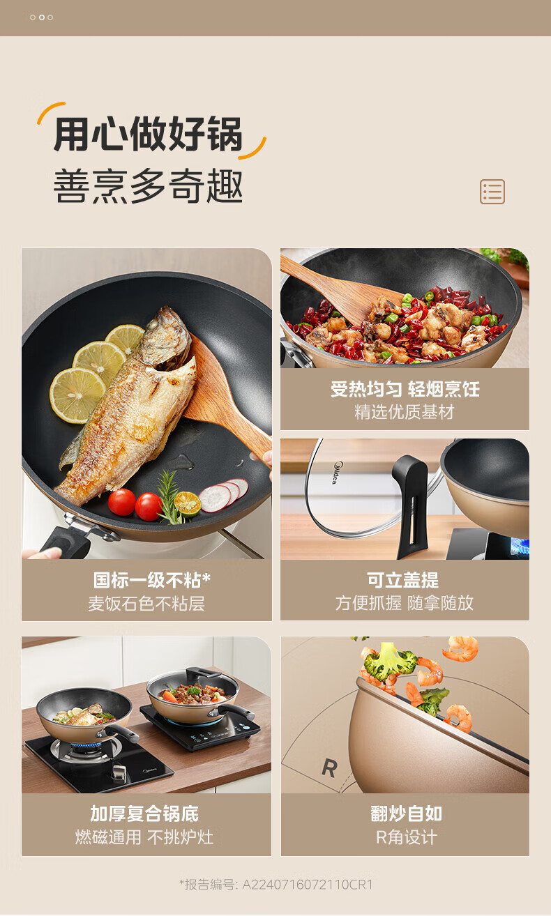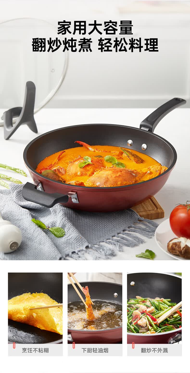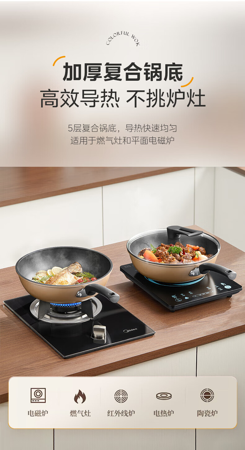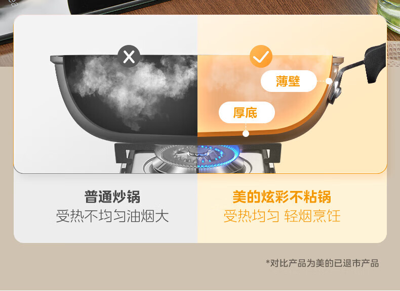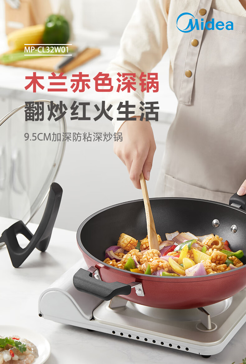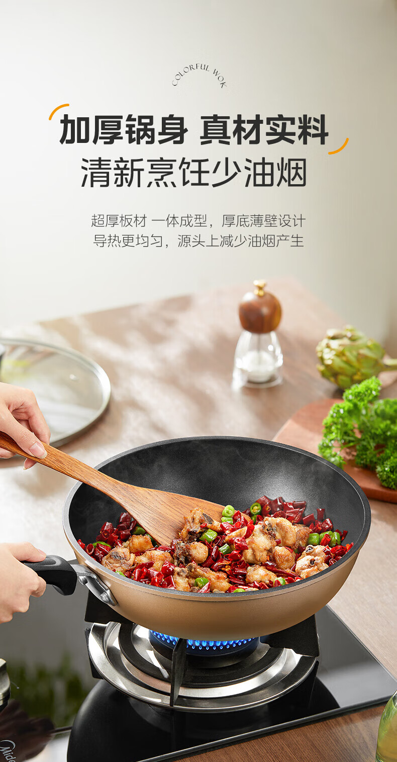 美的(Midea)不粘锅炒锅炒菜锅平底煎炒锅可立盖仿生荷叶电磁炉锅燃磁通用 【加厚】小家首选 30cm