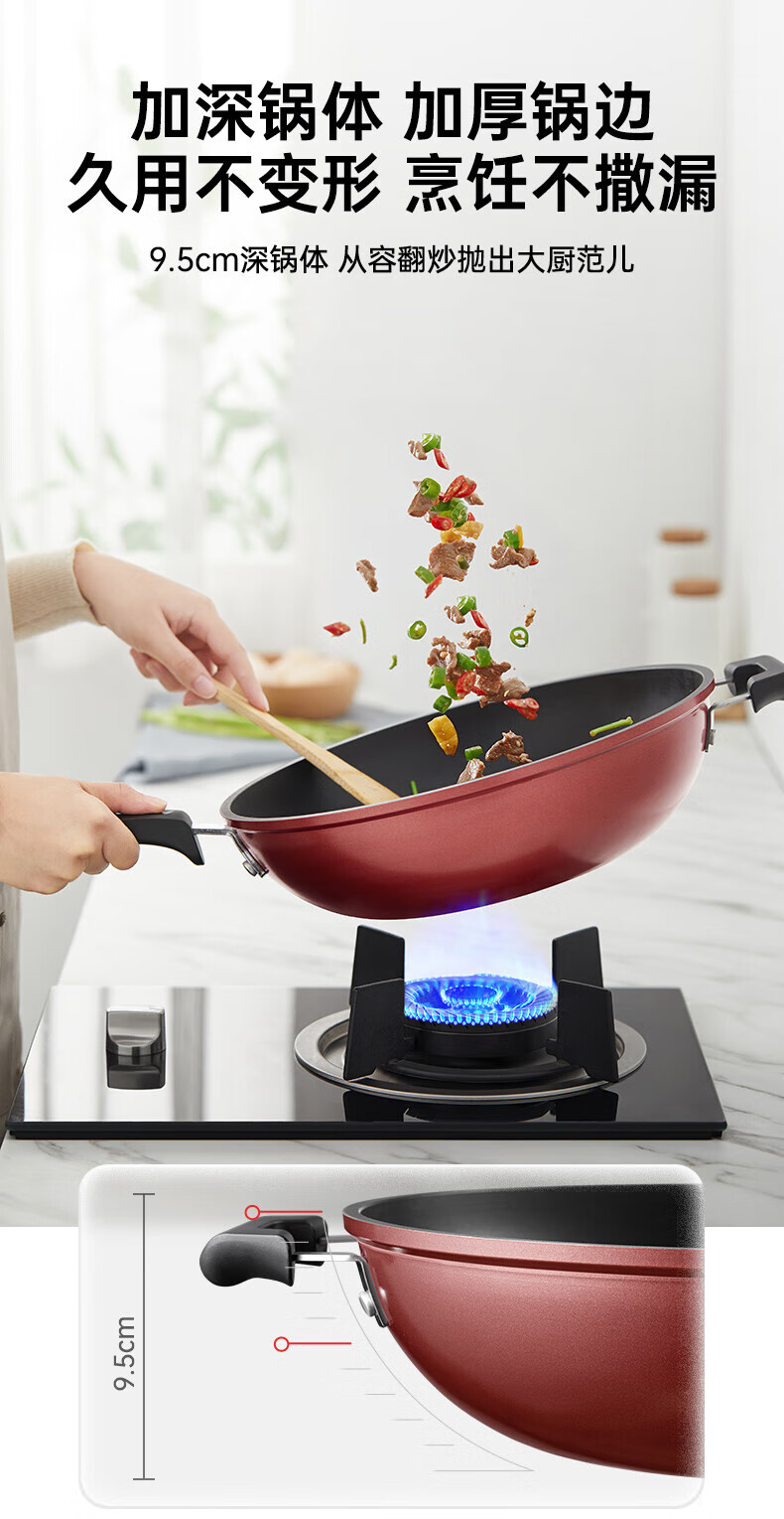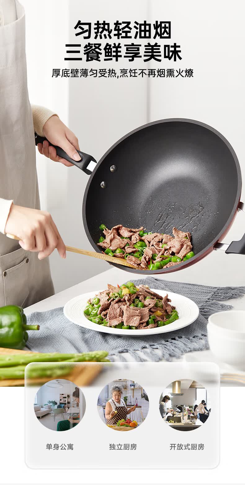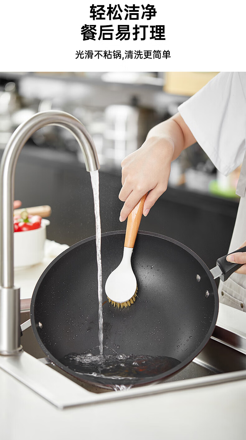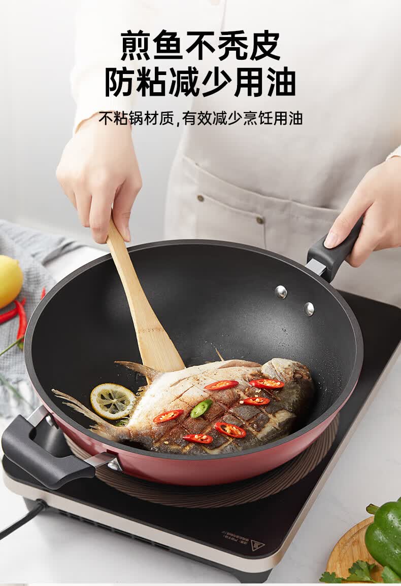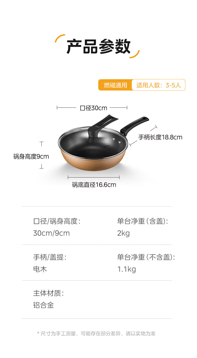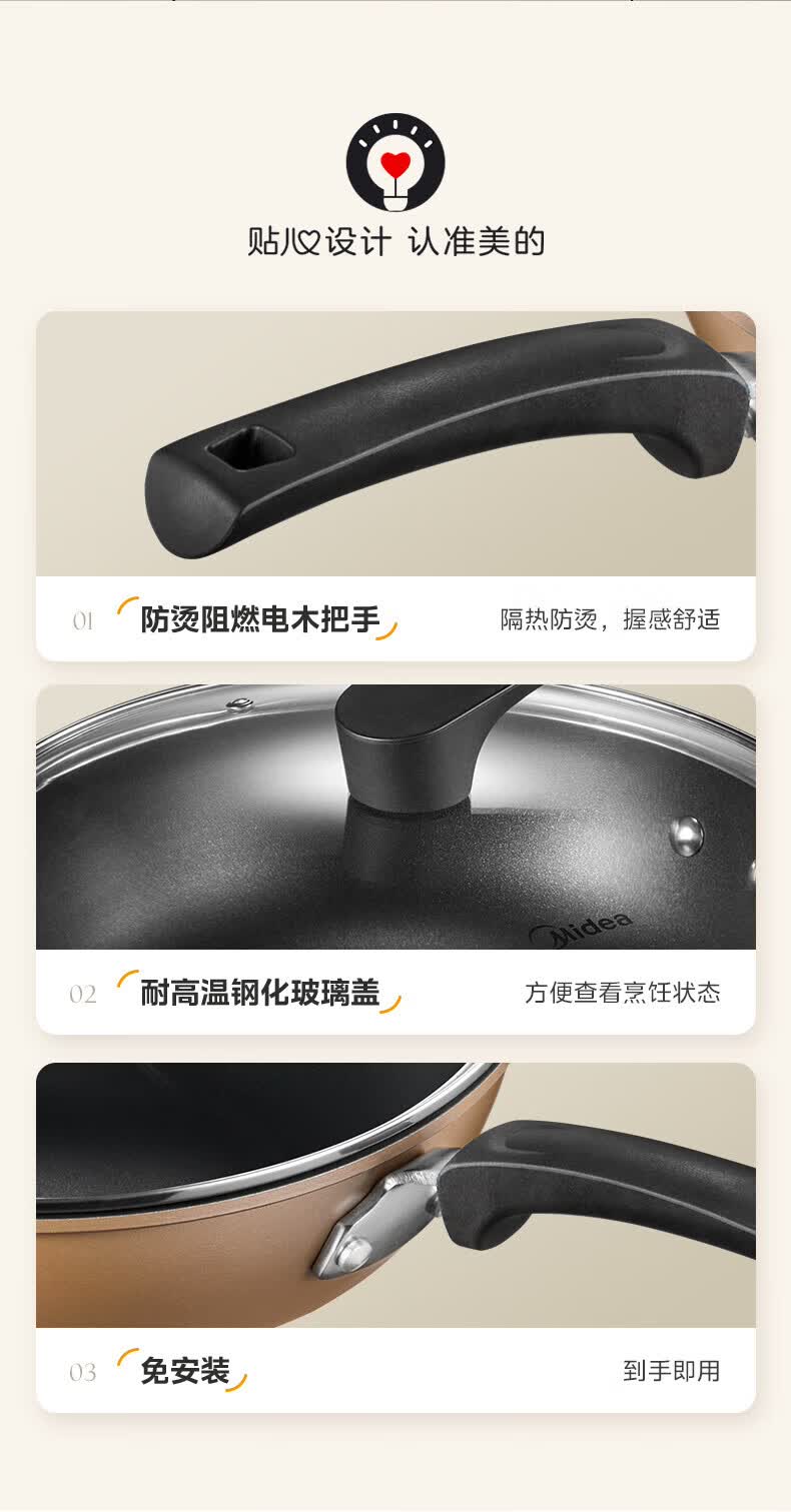 美的(Midea)不粘锅炒锅炒菜锅平底煎炒锅可立盖仿生荷叶电磁炉锅燃磁通用 【加厚】小家首选 30cm