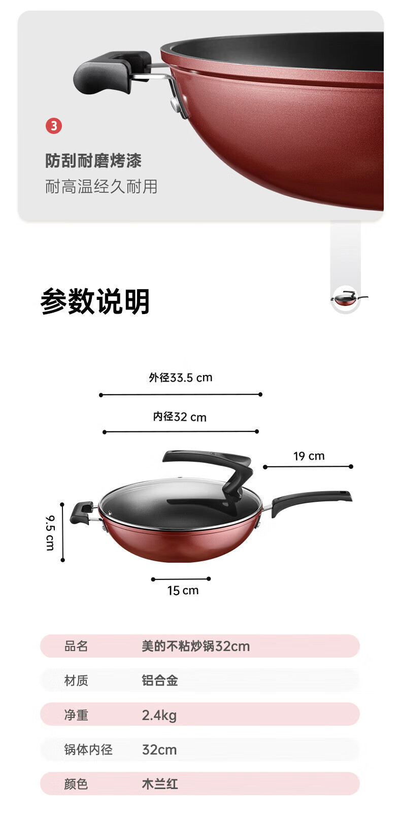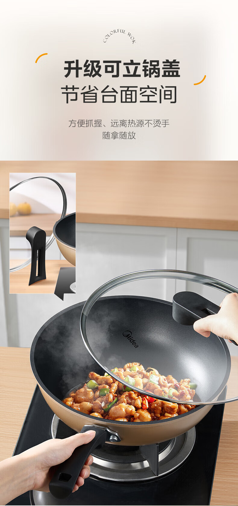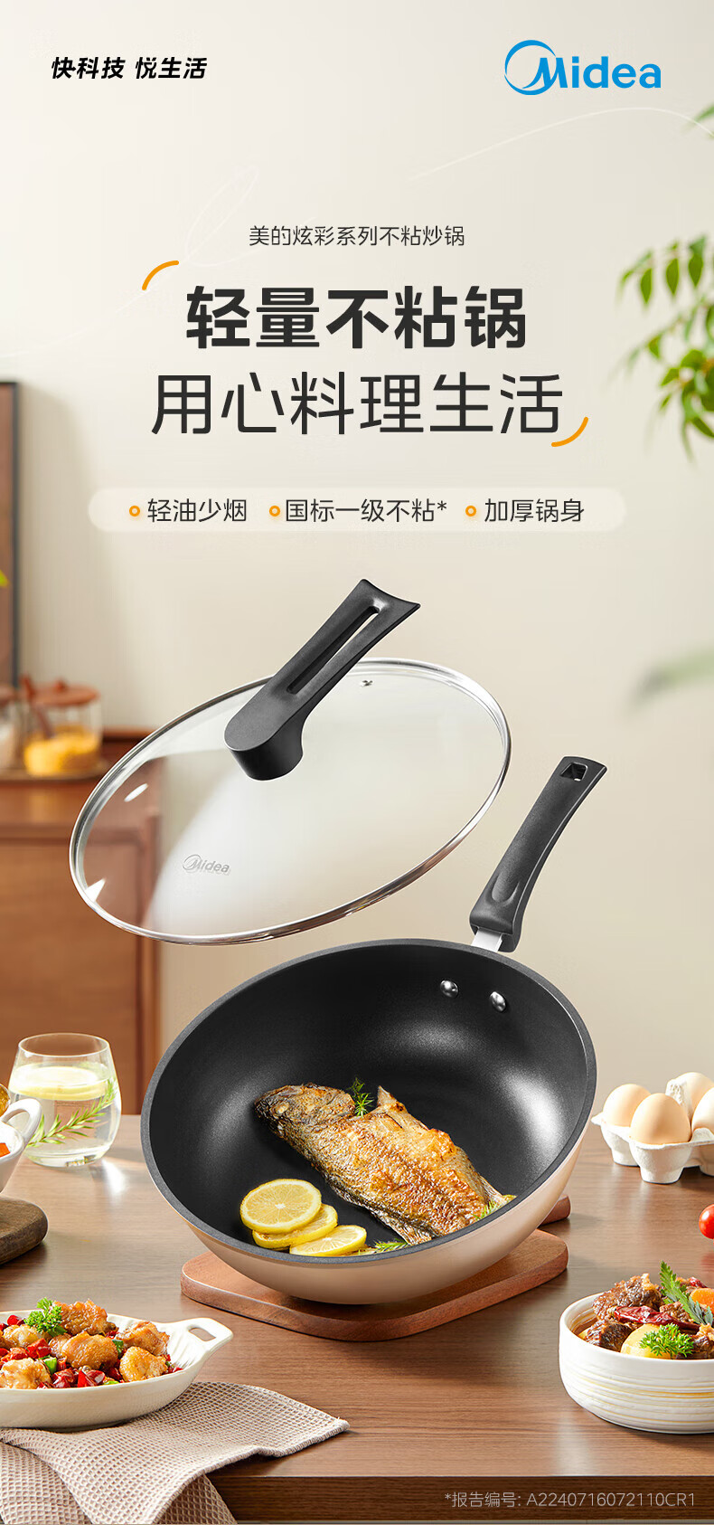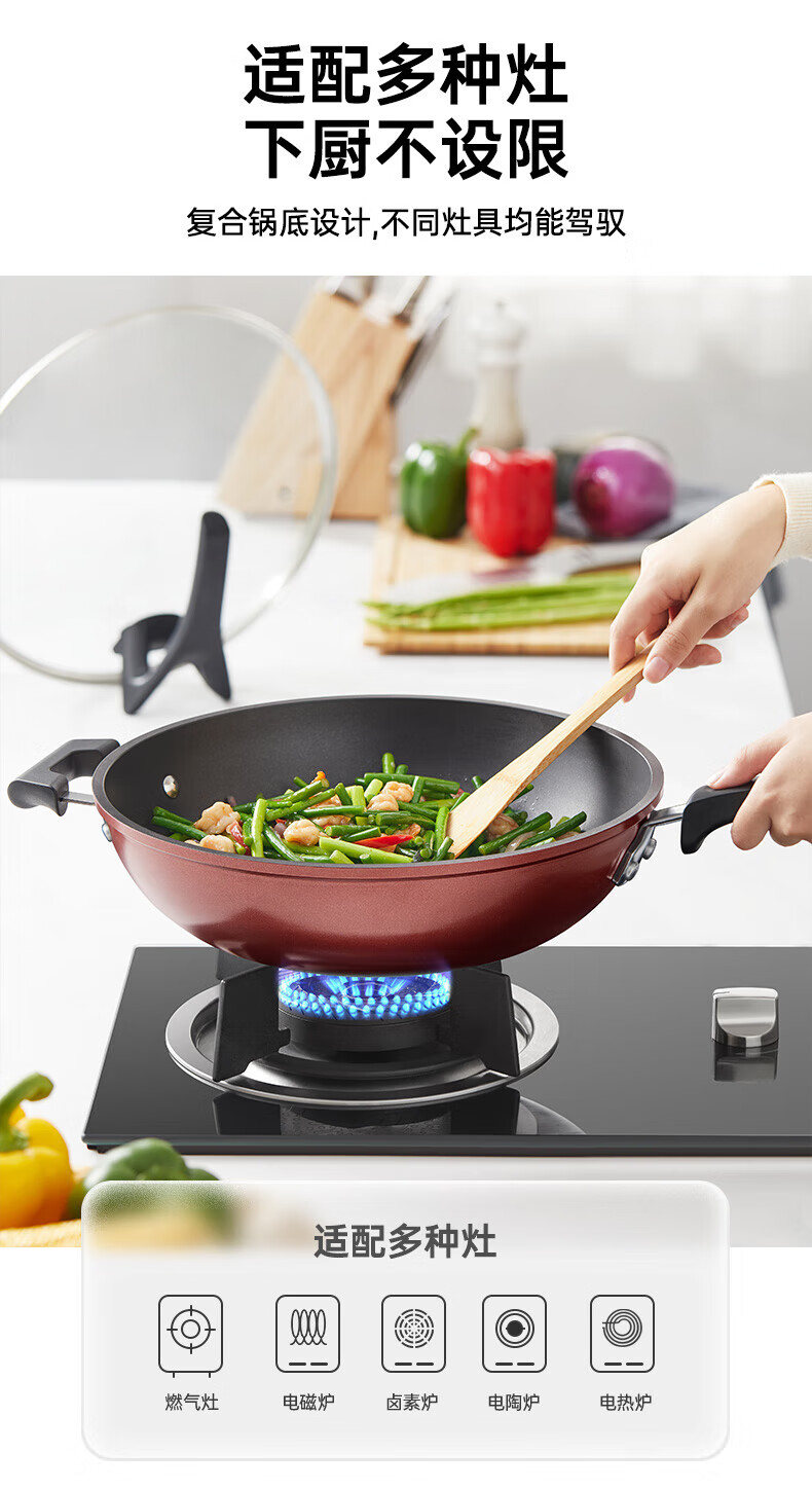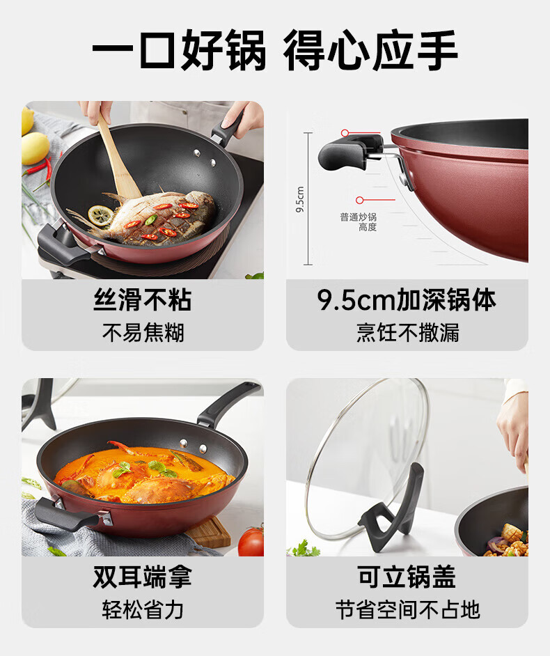 美的(Midea)不粘锅炒锅炒菜锅平底煎炒锅可立盖仿生荷叶电磁炉锅燃磁通用 【加厚】小家首选 30cm