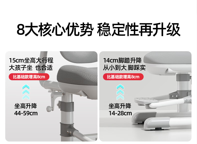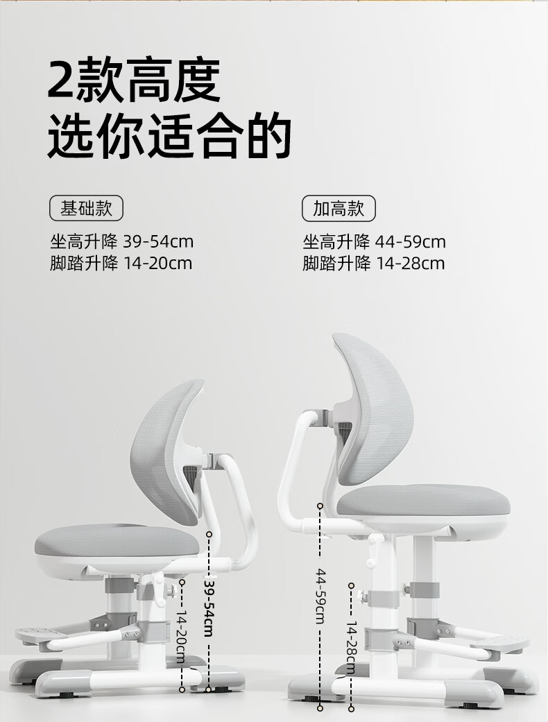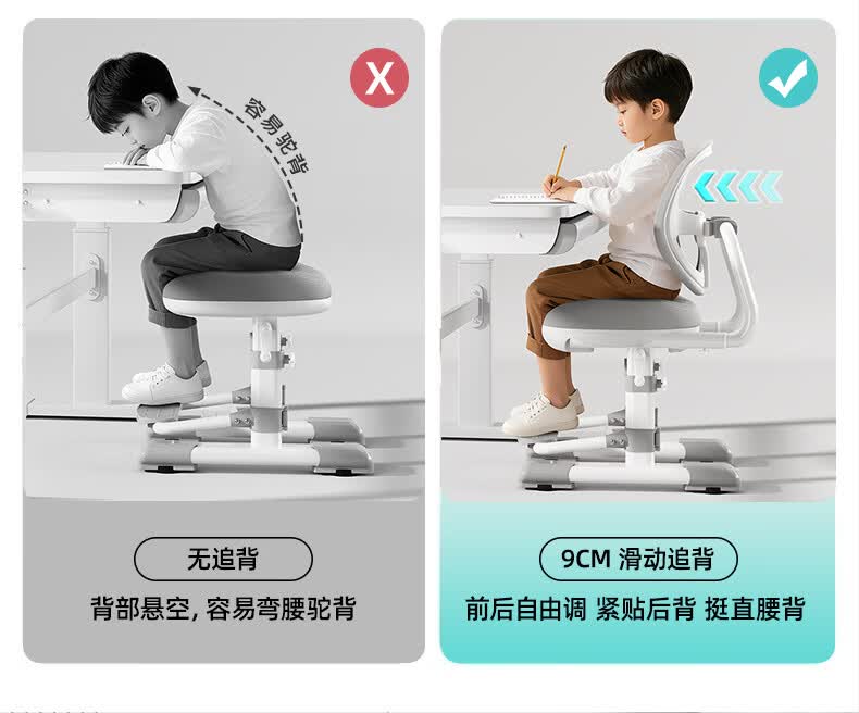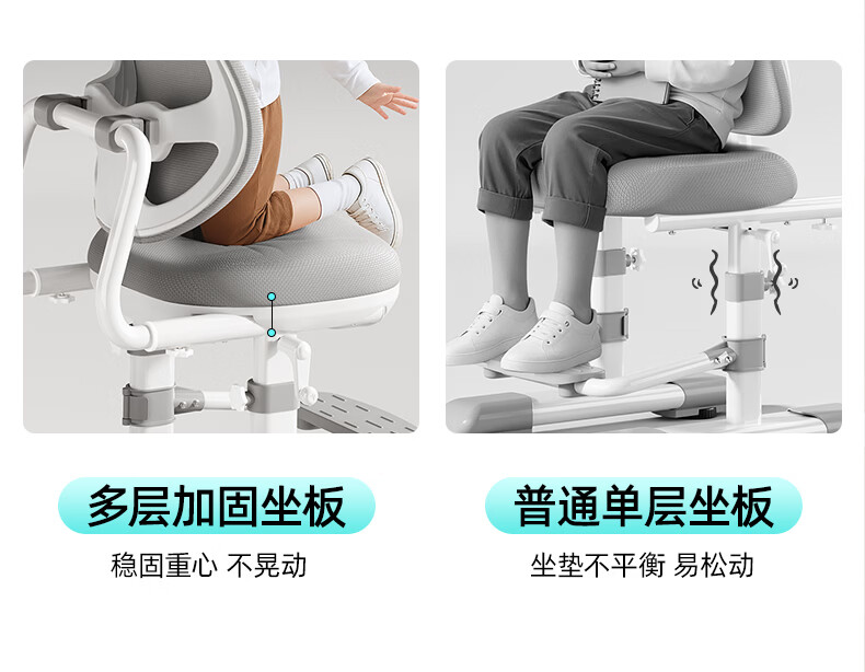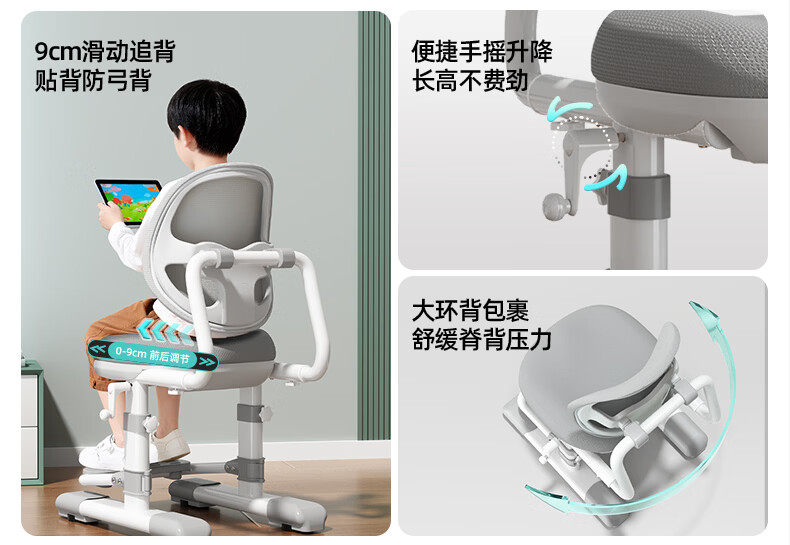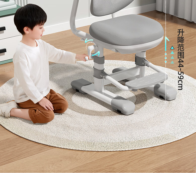 童状元儿童学习椅c12中小学生写作业升降椅可调节家用座椅电脑椅凳子 手摇升降调节+动态追背灰