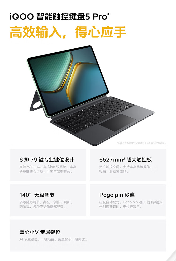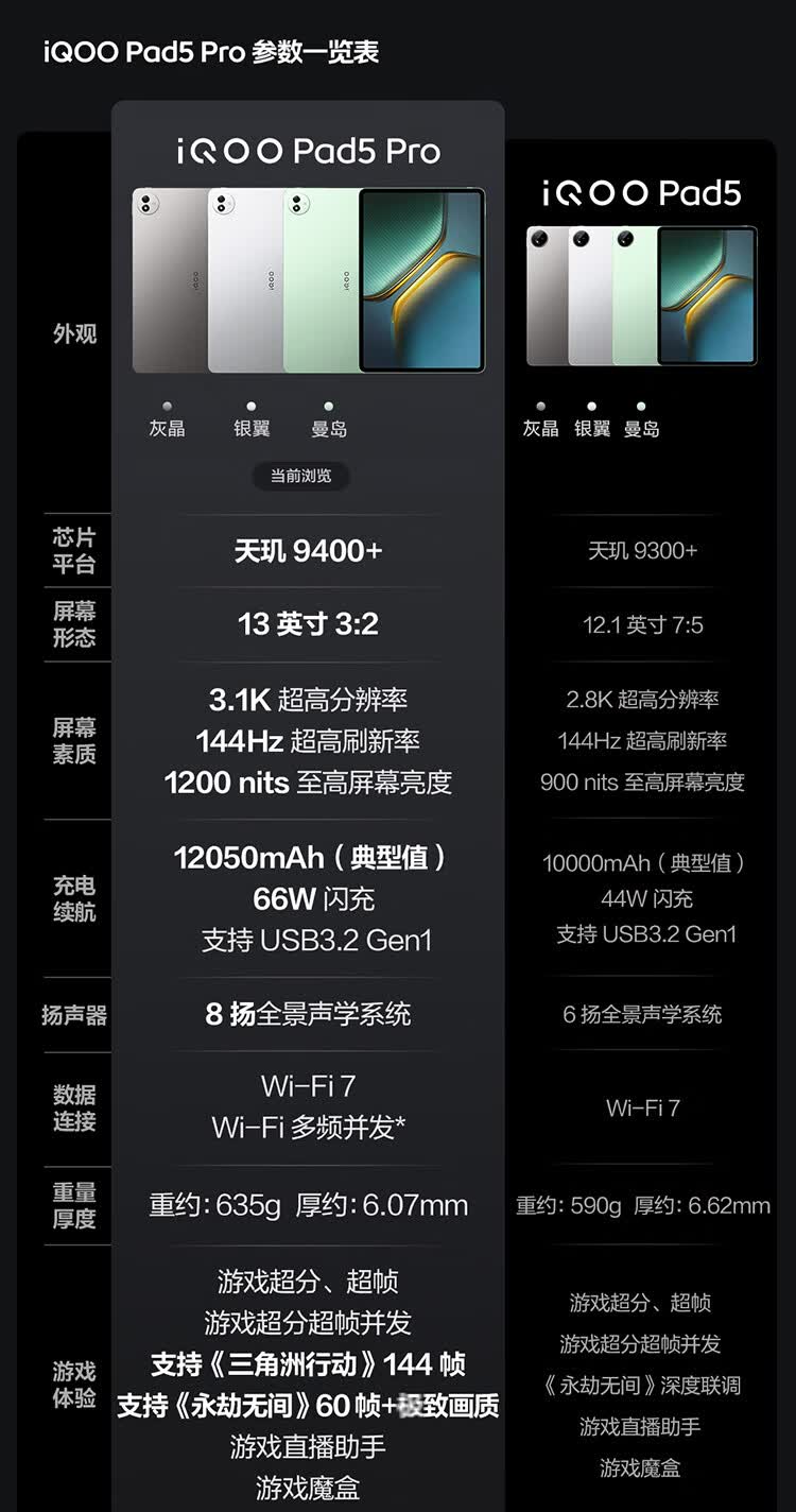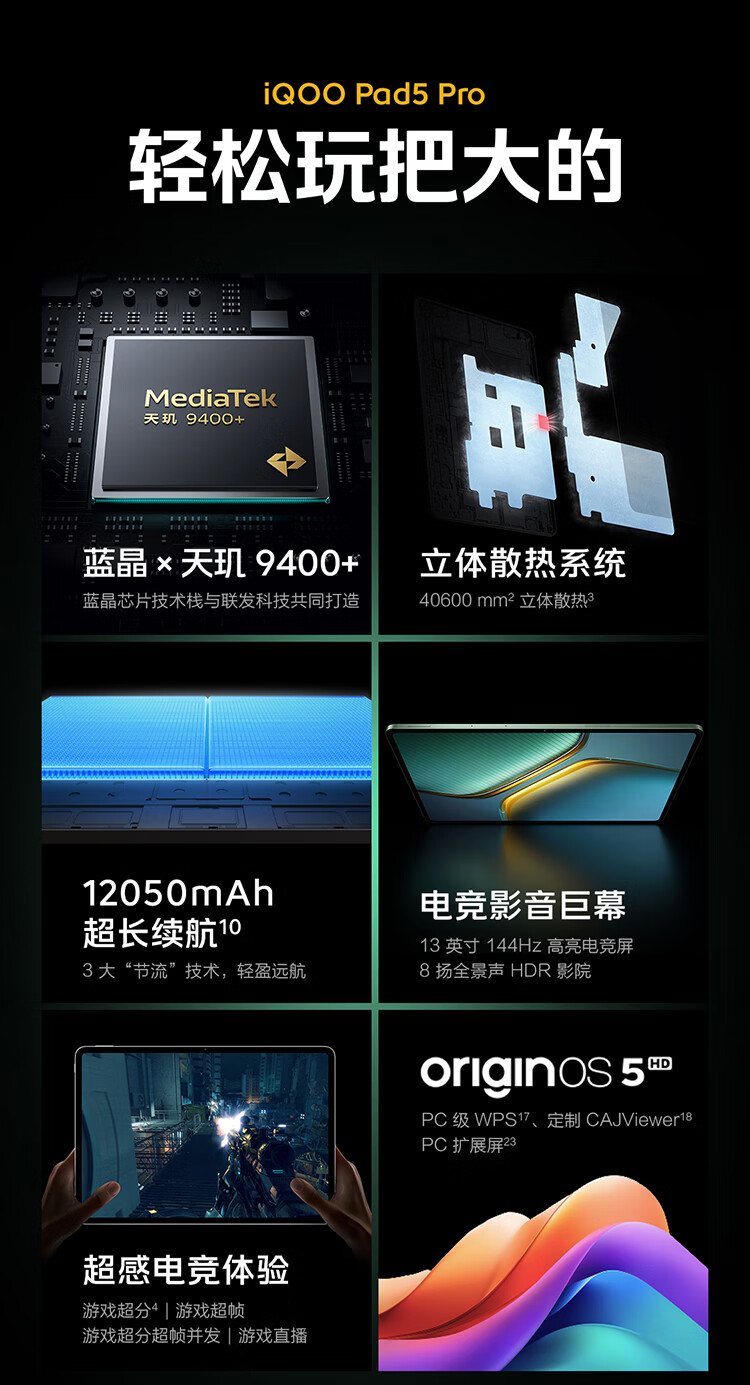 iQOO Pad5 Pro 16GB+512GB 银翼 国家补贴 13英寸游戏电竞大屏 蓝晶×天玑9400+ 平板电脑 vivo