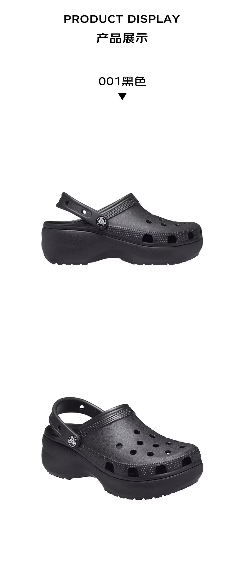 卡骆驰(CROCS)厚底云朵洞洞鞋户外时尚休闲一脚蹬沙滩鞋女鞋 黑色 38-39