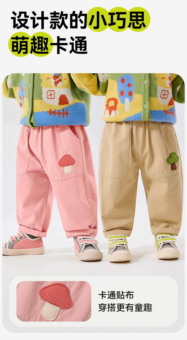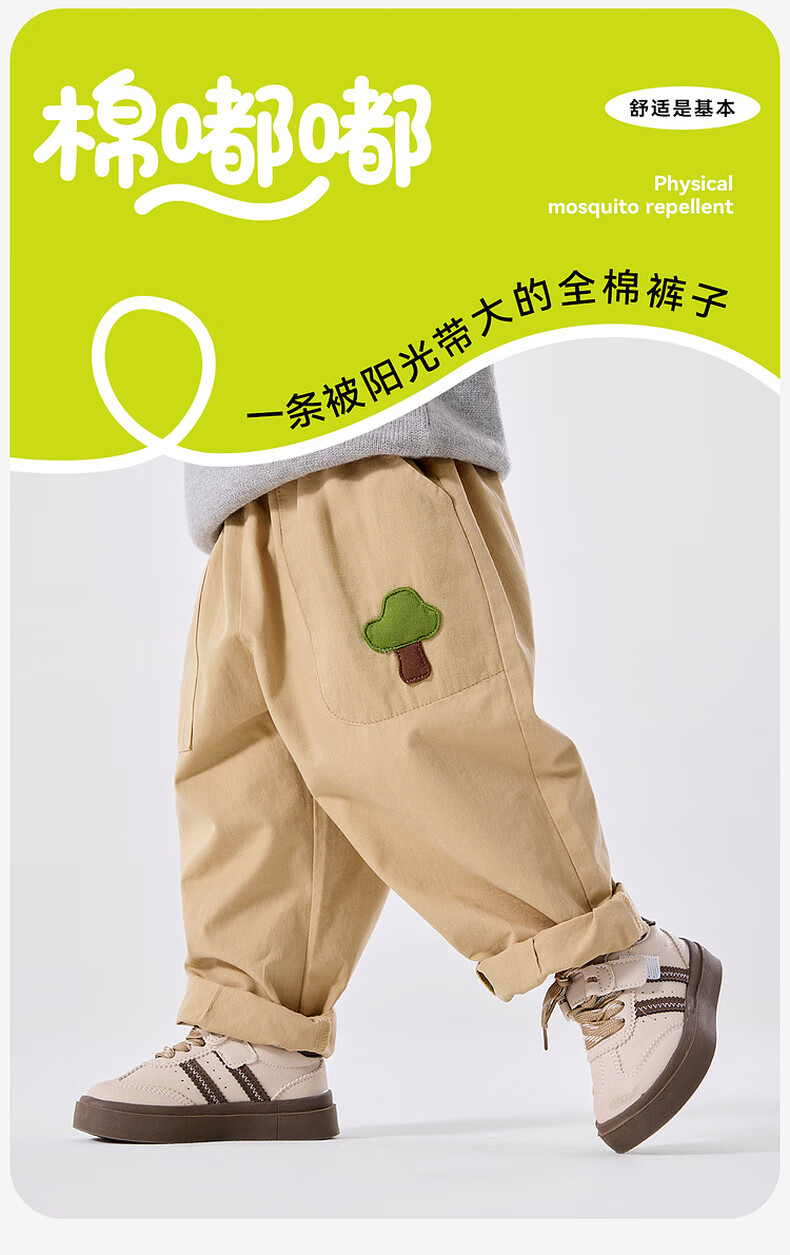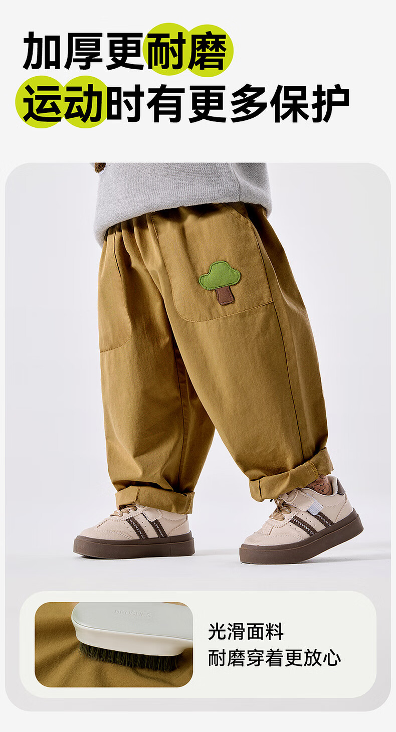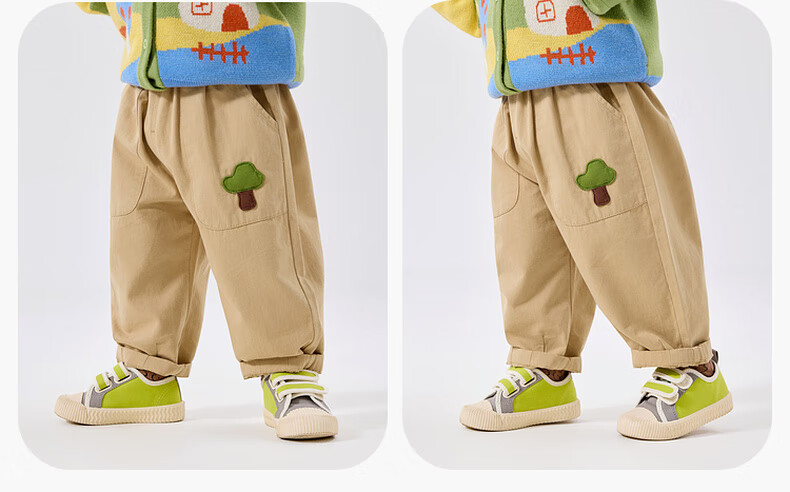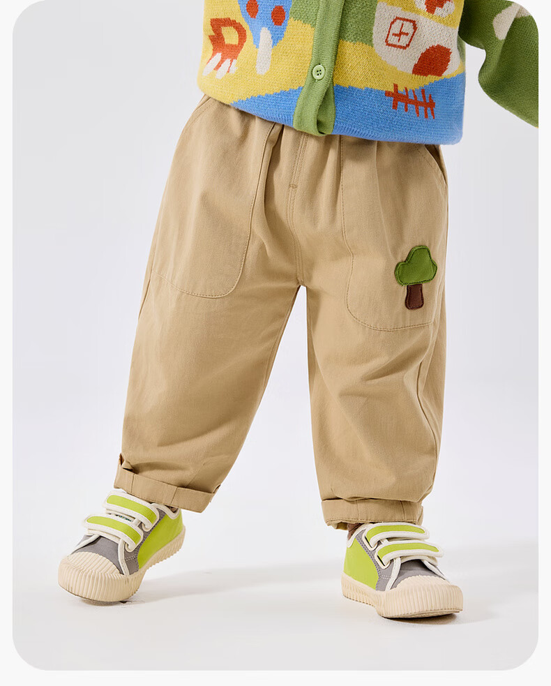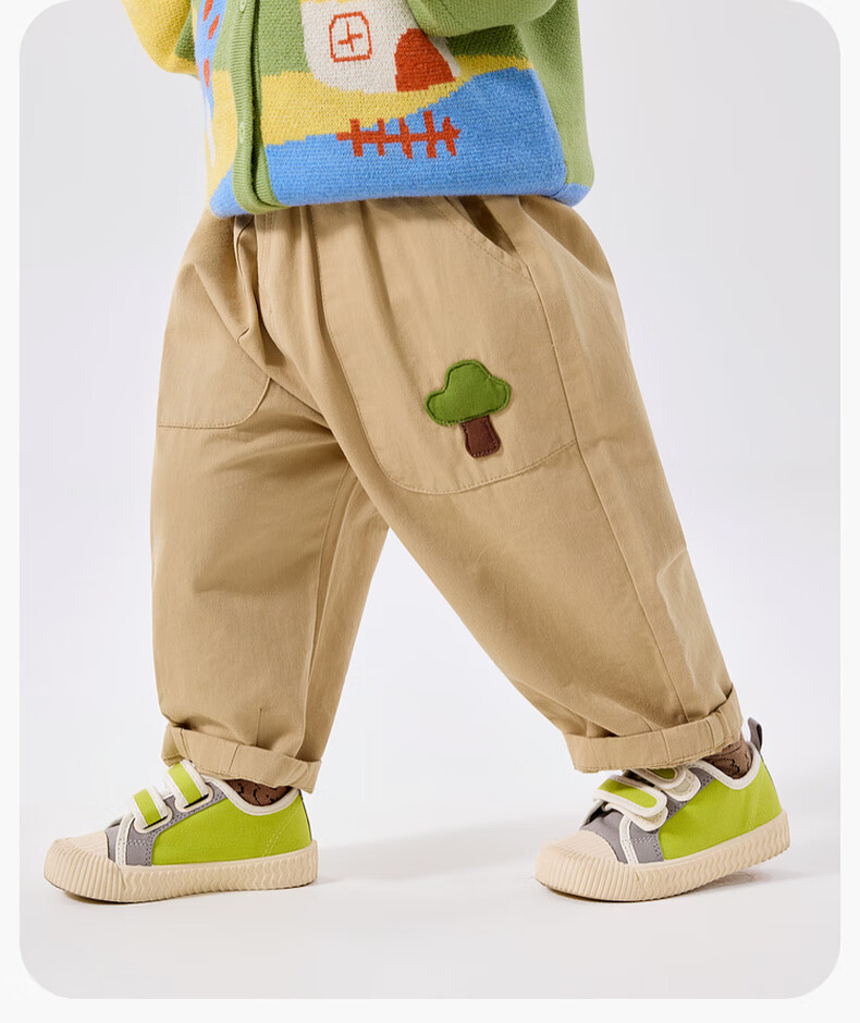 嘟嘟家宝宝裤子春春款儿童纯棉长裤春季男童卡通梭织裤女童休闲裤百搭潮 卡其色 90