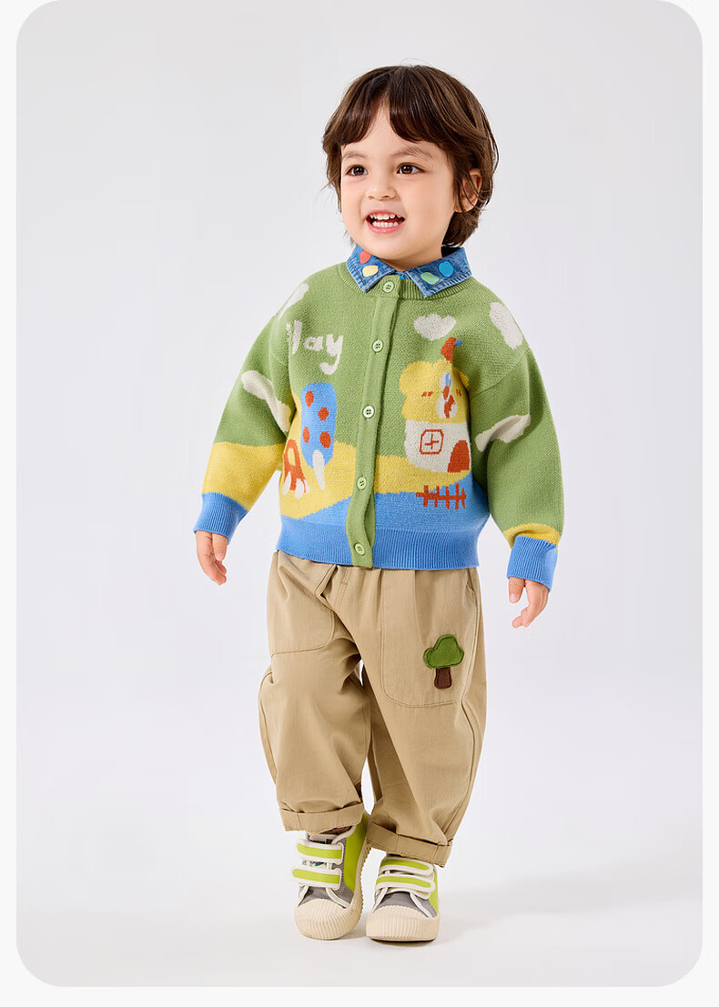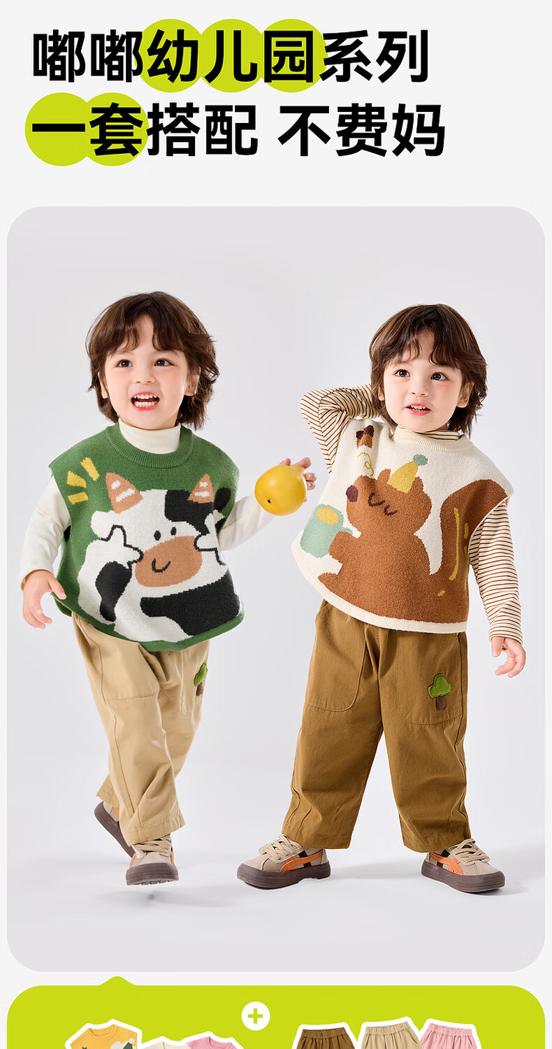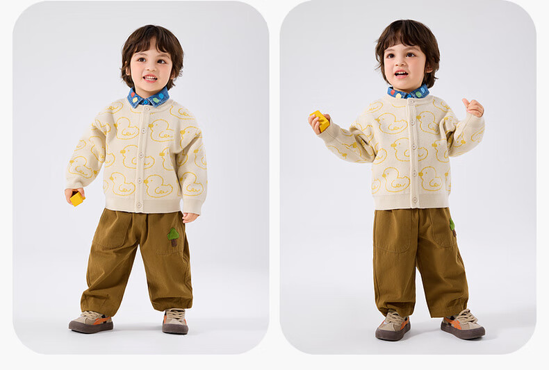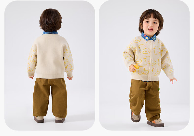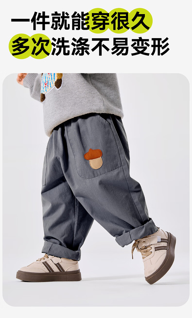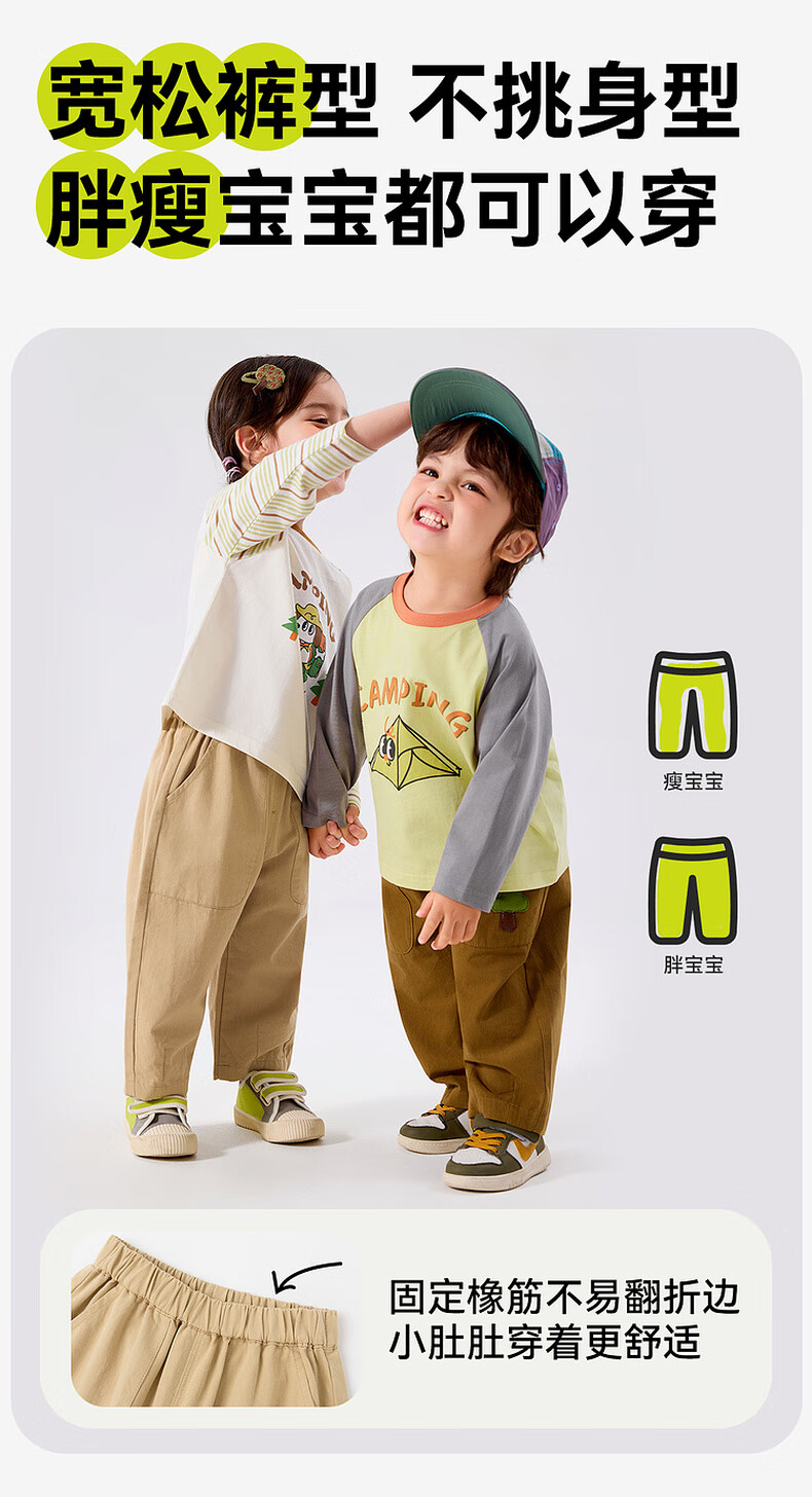 嘟嘟家宝宝裤子春春款儿童纯棉长裤春季男童卡通梭织裤女童休闲裤百搭潮 卡其色 90