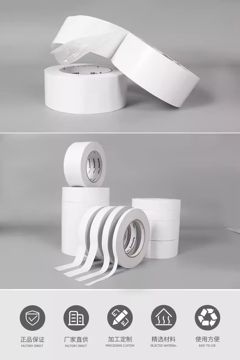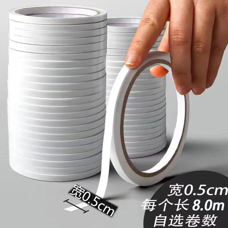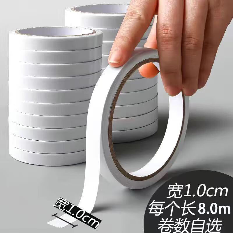 高粘度强力棉纸胶带双面胶学生手工薄款透明超薄手撕纸质胶布小卷 双面胶-10mm*8米-5卷