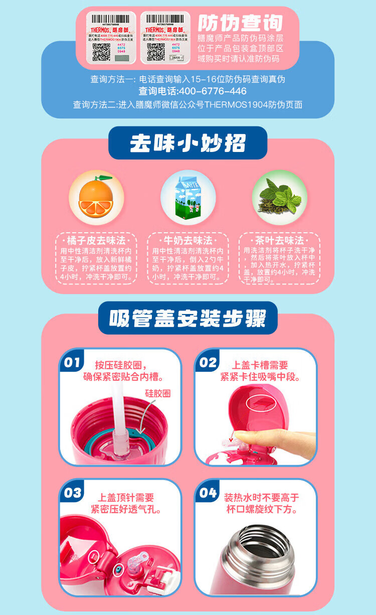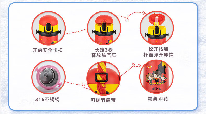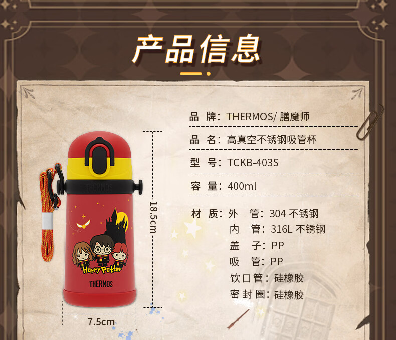膳魔师(THERMOS)哈利波特系列儿童小学生小童上学杯316L不锈钢吸管保温杯400ml