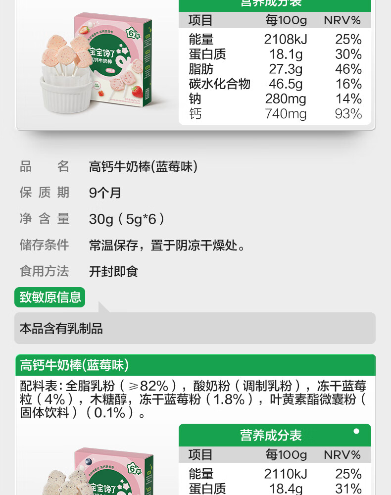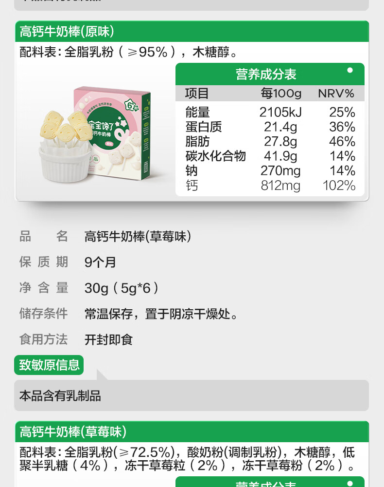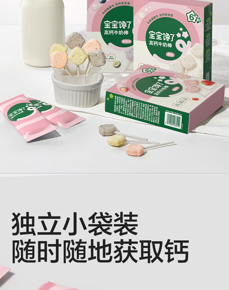 宝宝馋了草莓高钙牛奶棒30g儿童零食牛奶条棒棒糖型