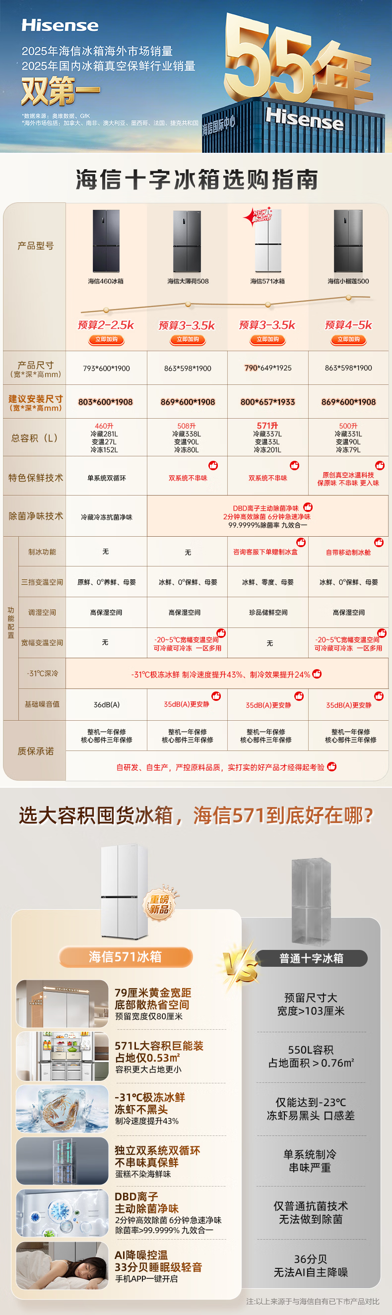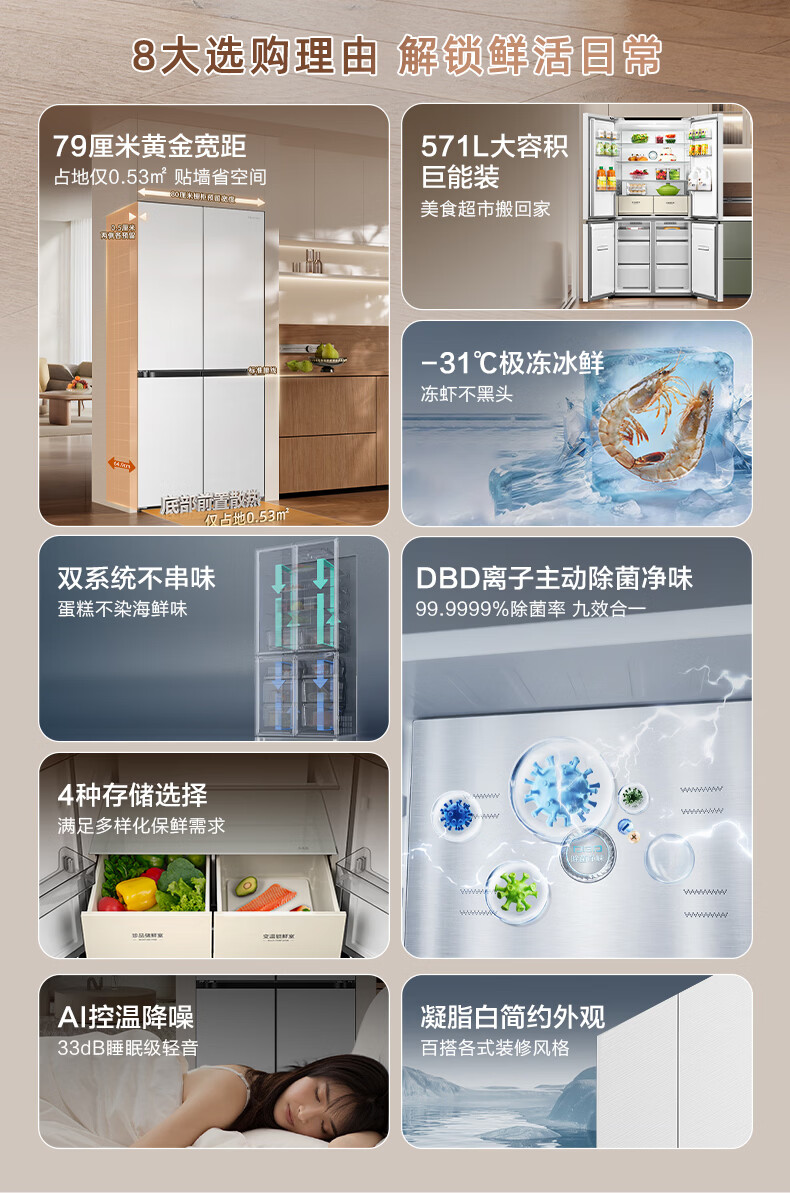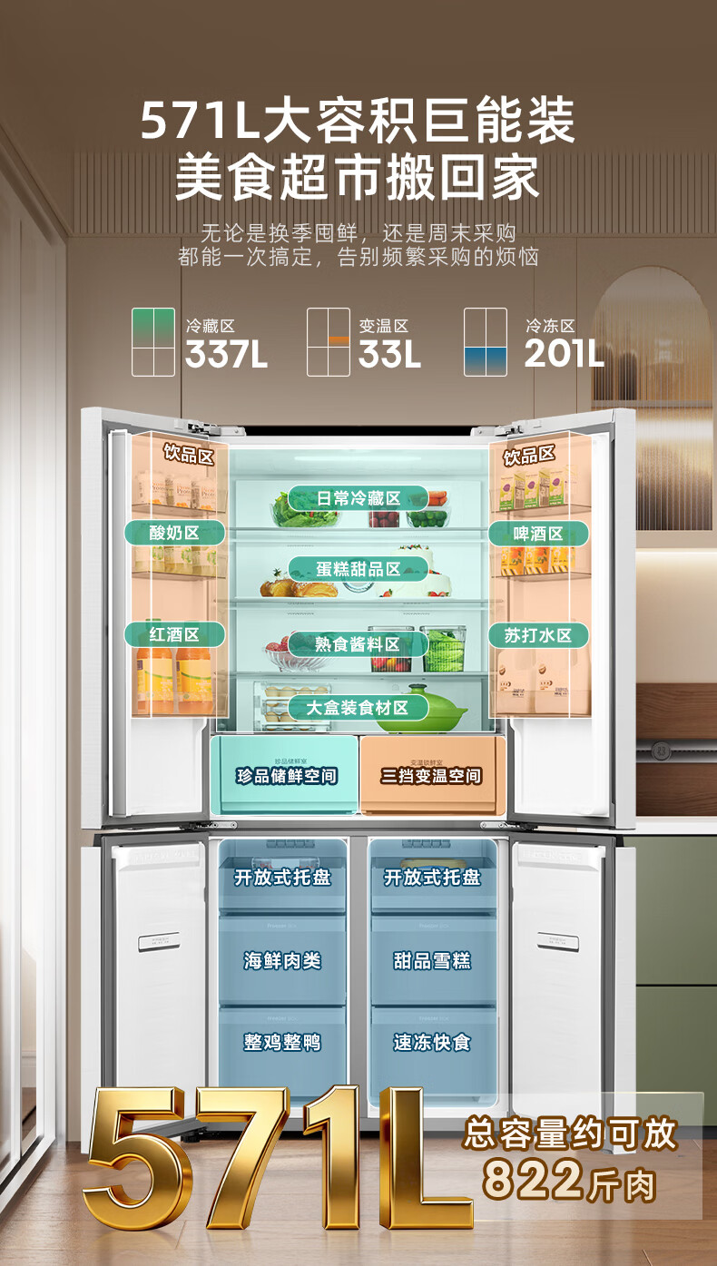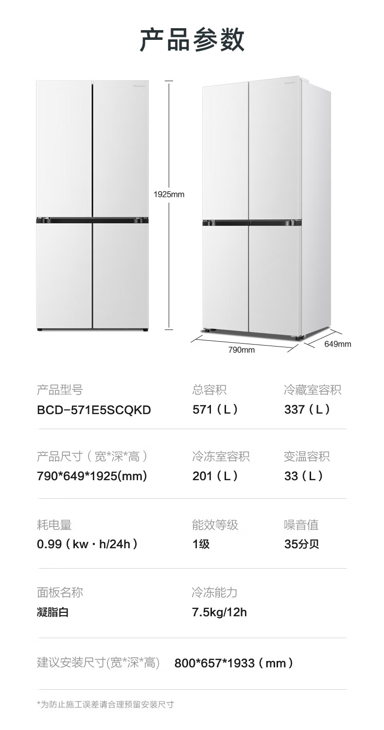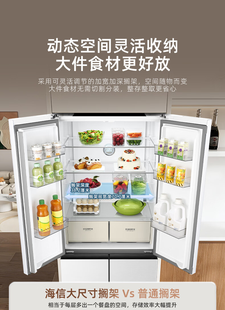 海信(Hisense)571L冰箱十字多门冰箱双系统零嵌大容量主动除菌净味超薄BCD-571E5SCQKD不串味