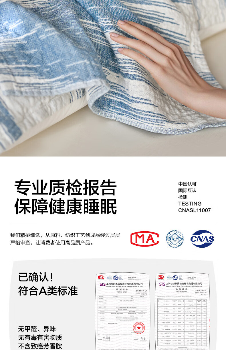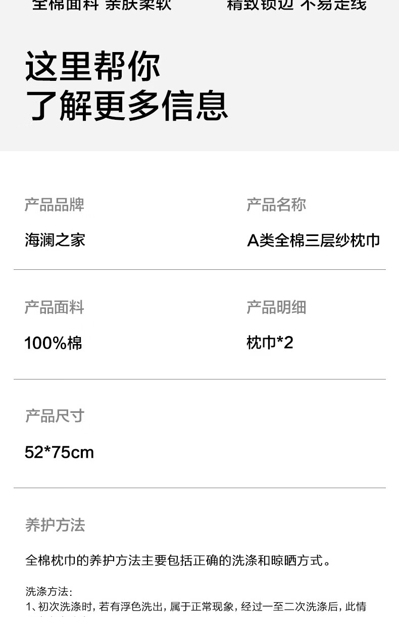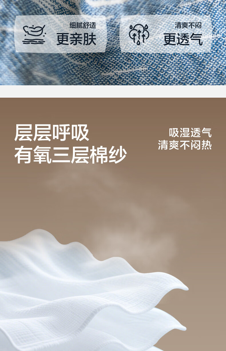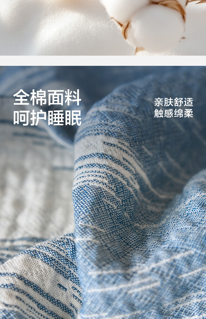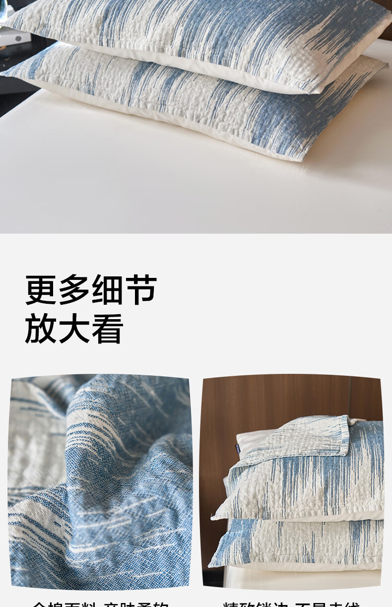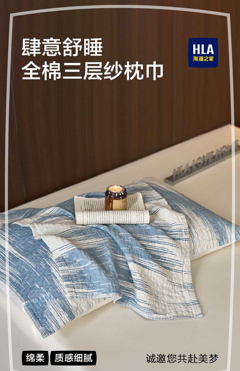 海澜之家(HLA)A类枕巾全棉100%纯棉三层纱工艺枕头套垫巾隔脏四季通用一对装 蓝色波纹 一对装 【52*75cm】A类100%棉