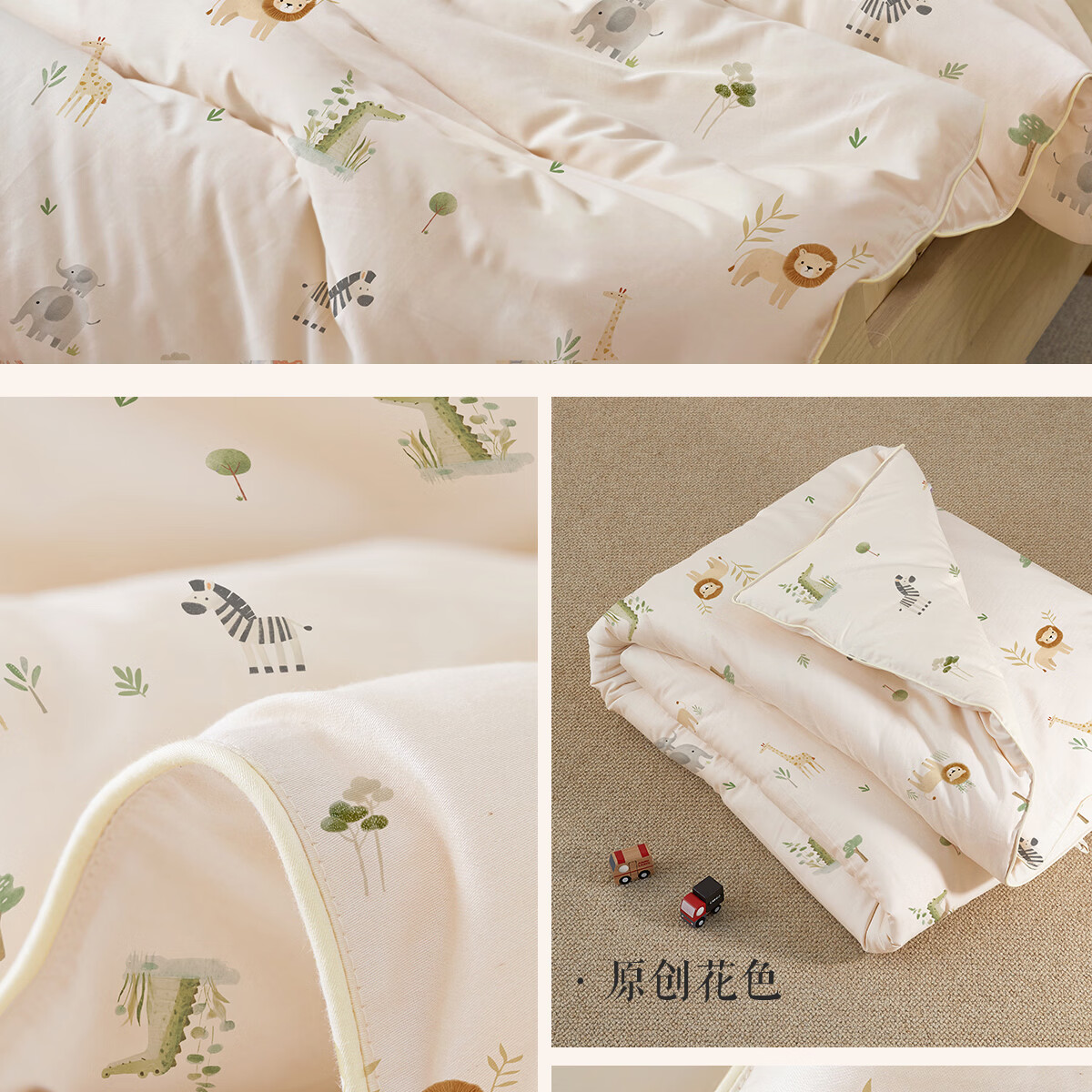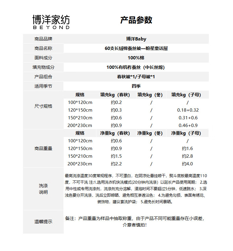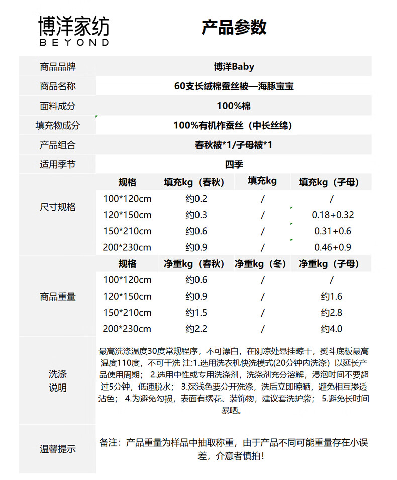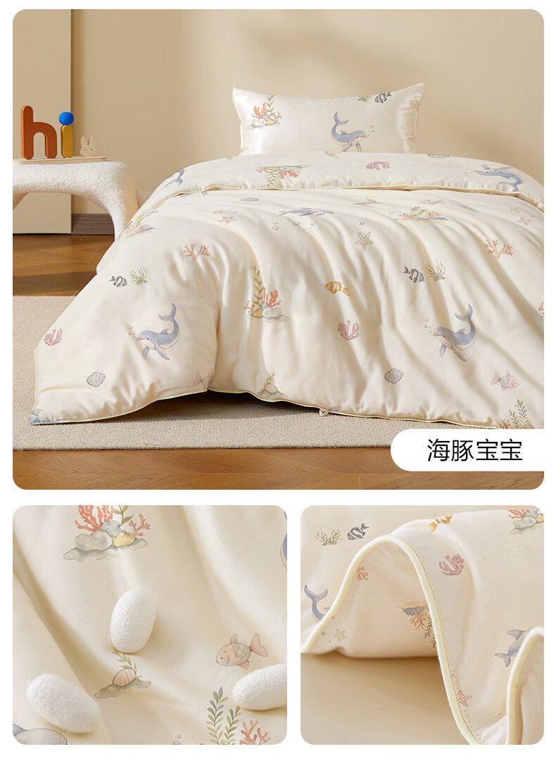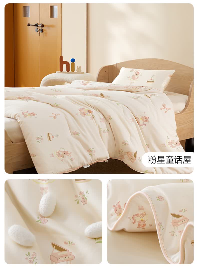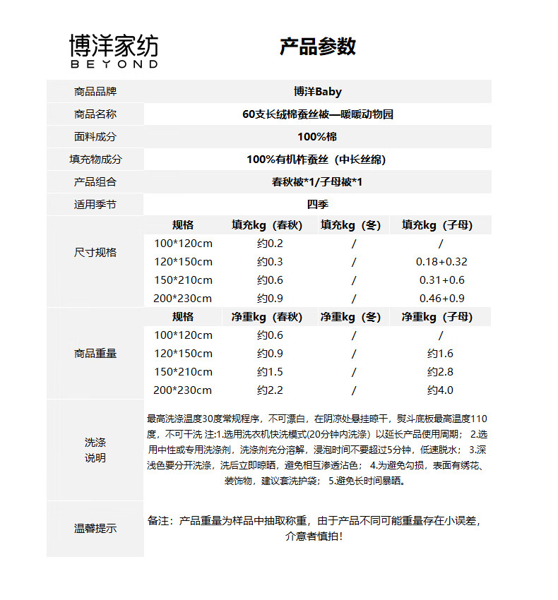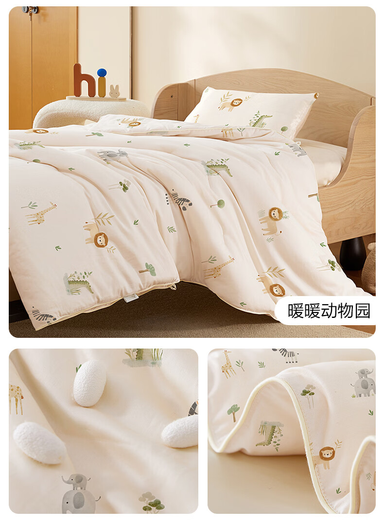 博洋宝贝(Beyond Kids)婴儿蚕丝被60支全棉被芯儿童可机洗有机野蚕丝通用幼儿园盖被春秋 春秋被【60支长绒棉蚕丝】暖暖动物园 100*120cm