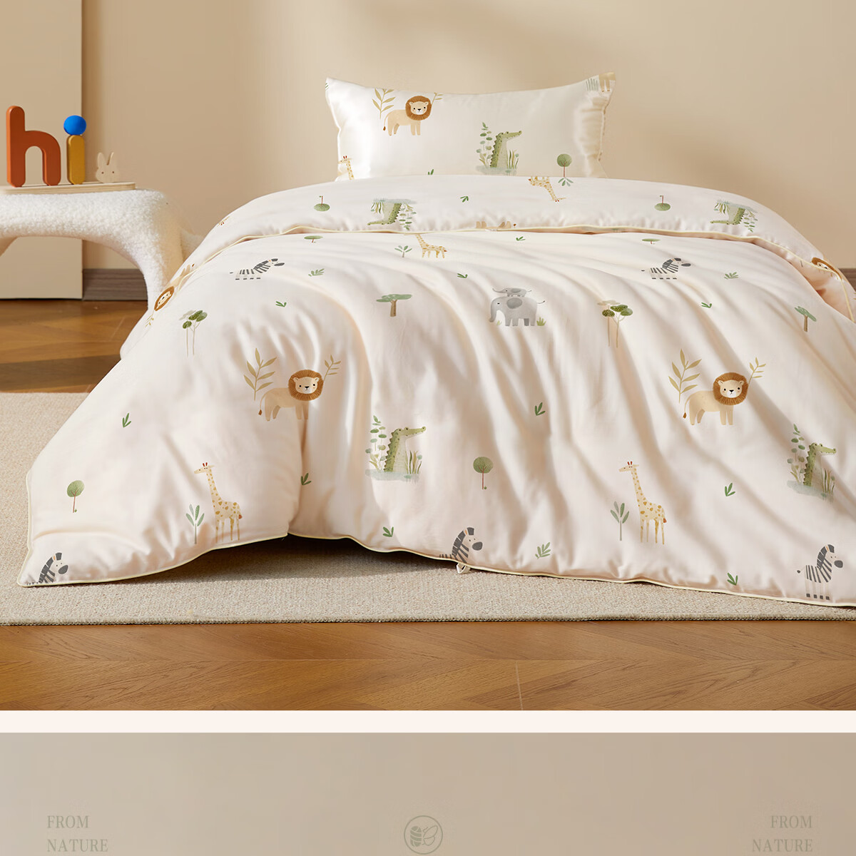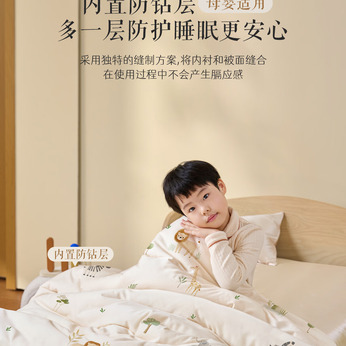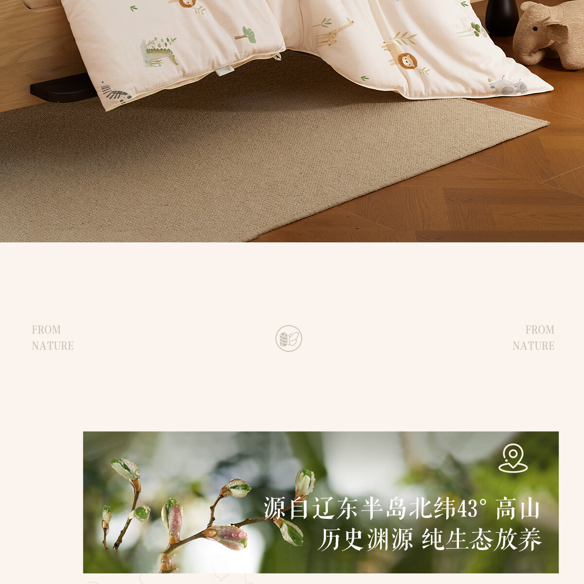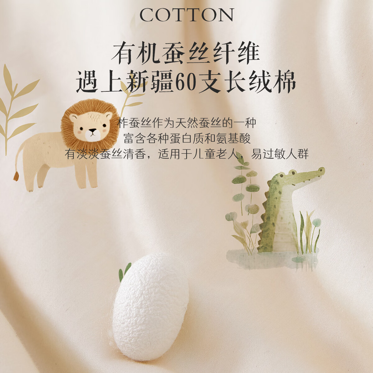 博洋宝贝(Beyond Kids)婴儿蚕丝被60支全棉被芯儿童可机洗有机野蚕丝通用幼儿园盖被春秋 春秋被【60支长绒棉蚕丝】暖暖动物园 100*120cm