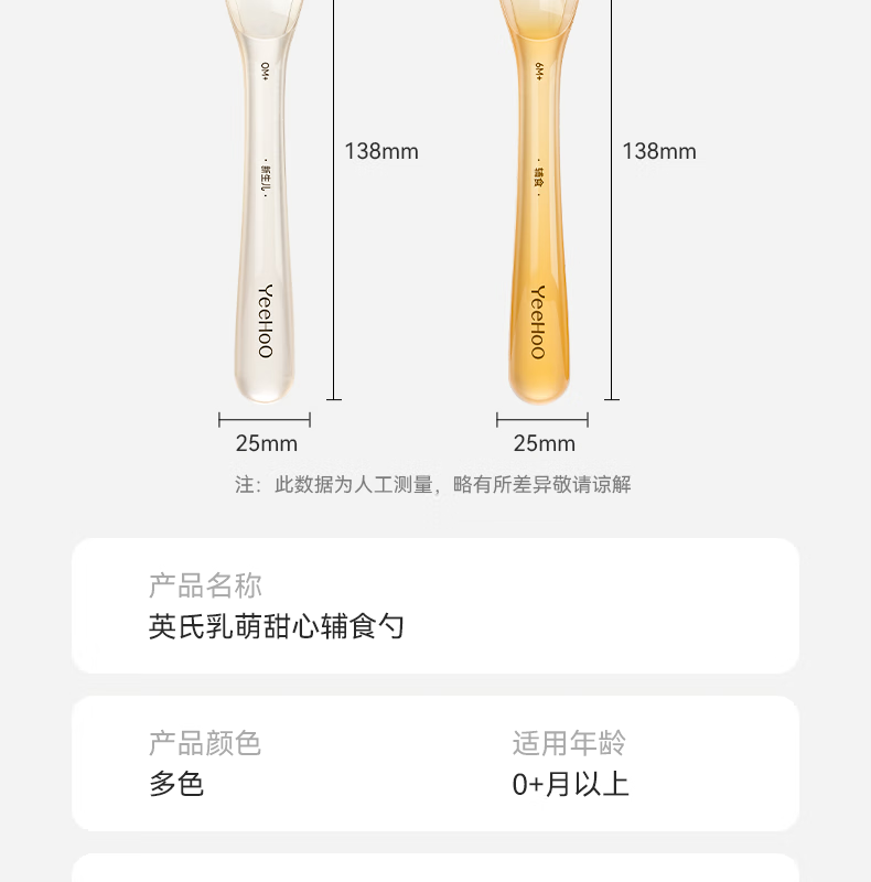 英氏(YEEHOO)硅胶勺子新生婴儿辅食勺宝宝吃饭喂奶喂水米粉糊儿童硅胶软勺 辅食勺【单只装】