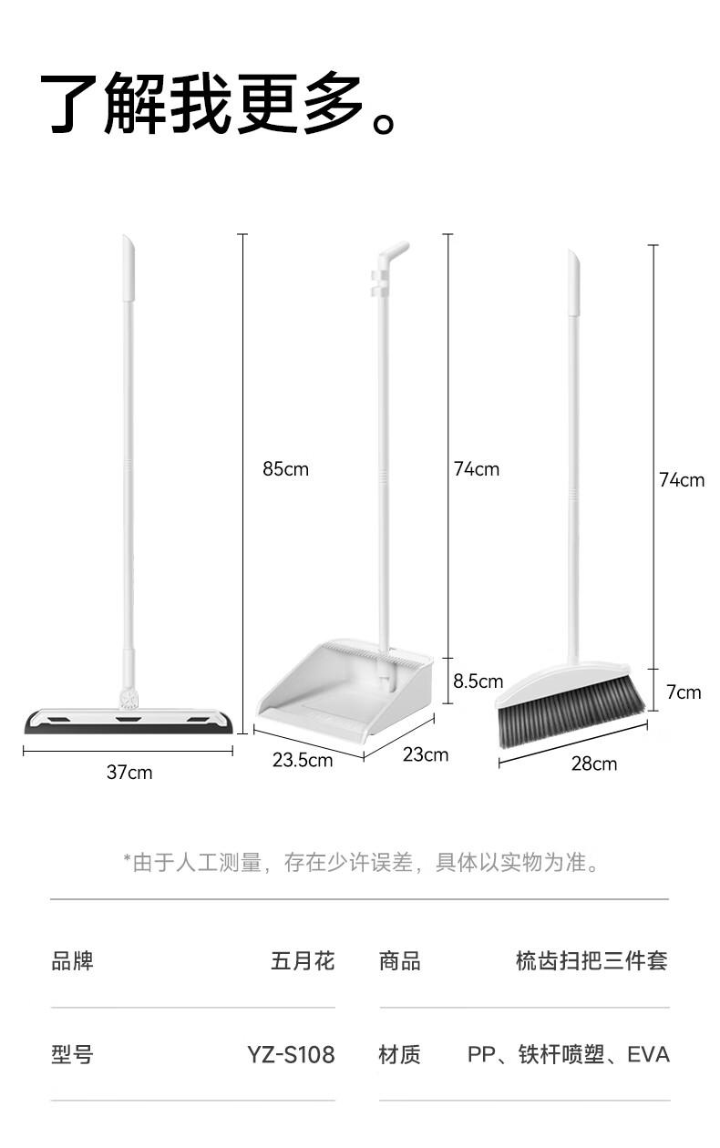 五月花扫把套装不粘头笤帚带梳齿扫把簸箕套装扫帚两件套大扫除 扫把簸箕两件套