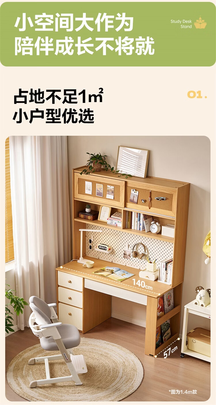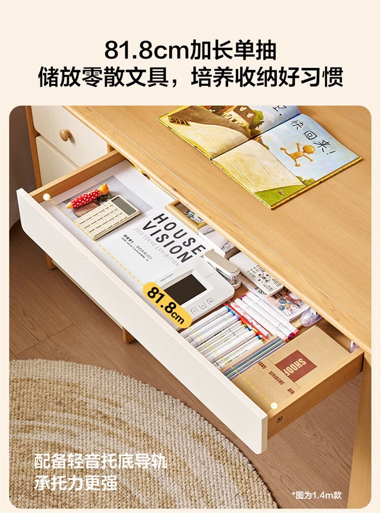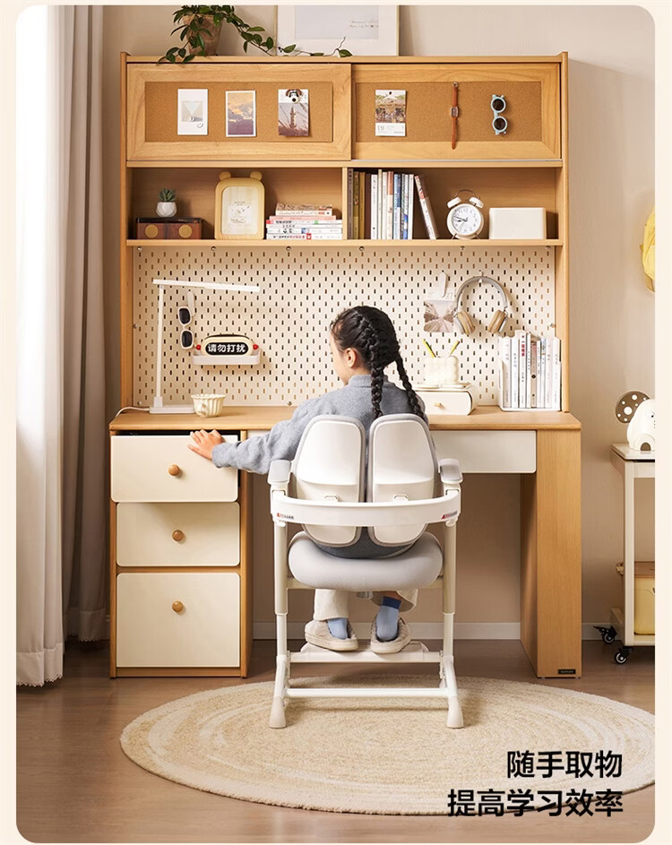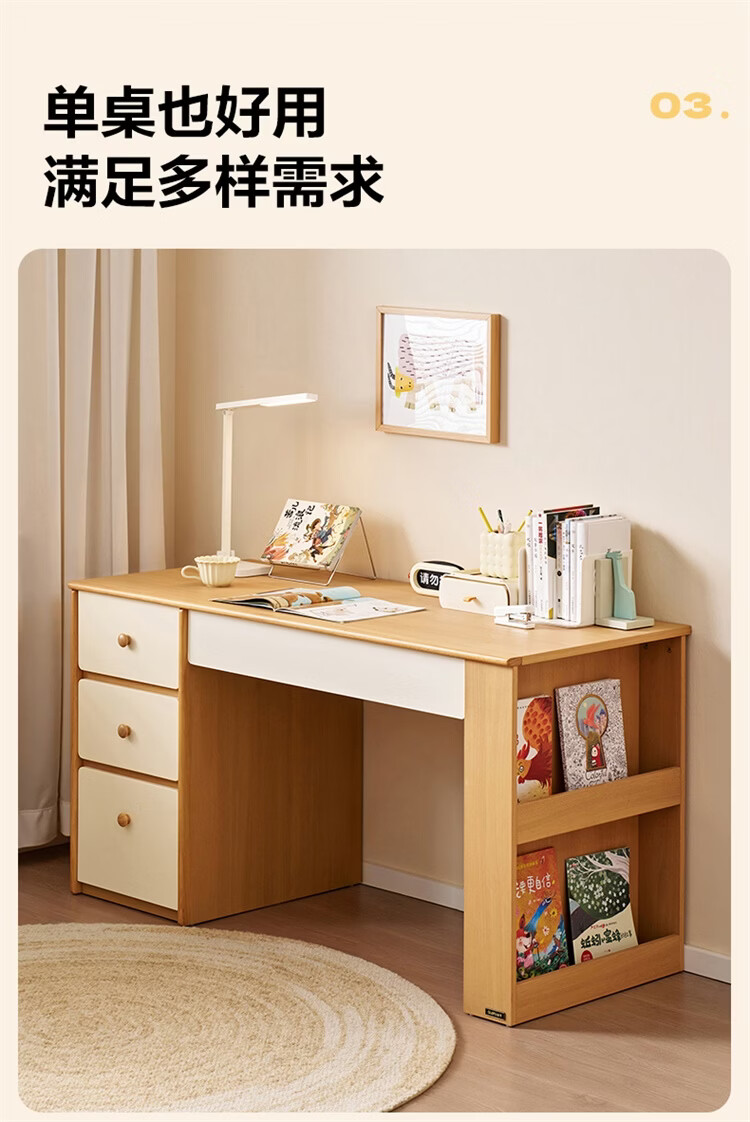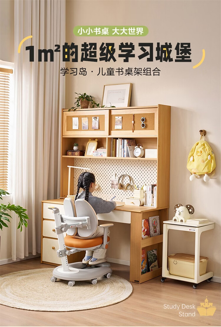全友家居原木风儿童书桌架组合家用多功能青少年书桌椅组合套装收纳桌 【原木风】1.4米儿童书桌+乐学·学习椅