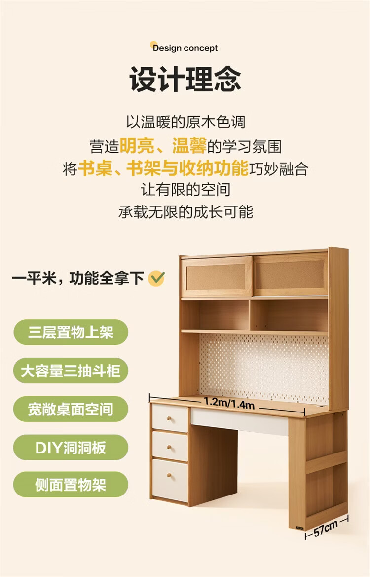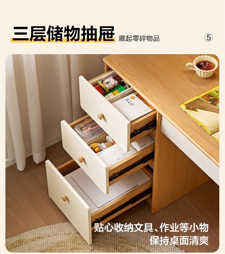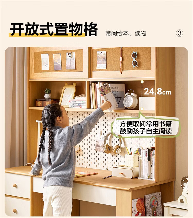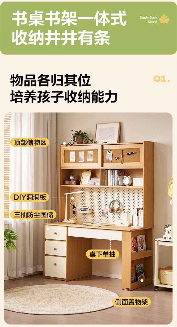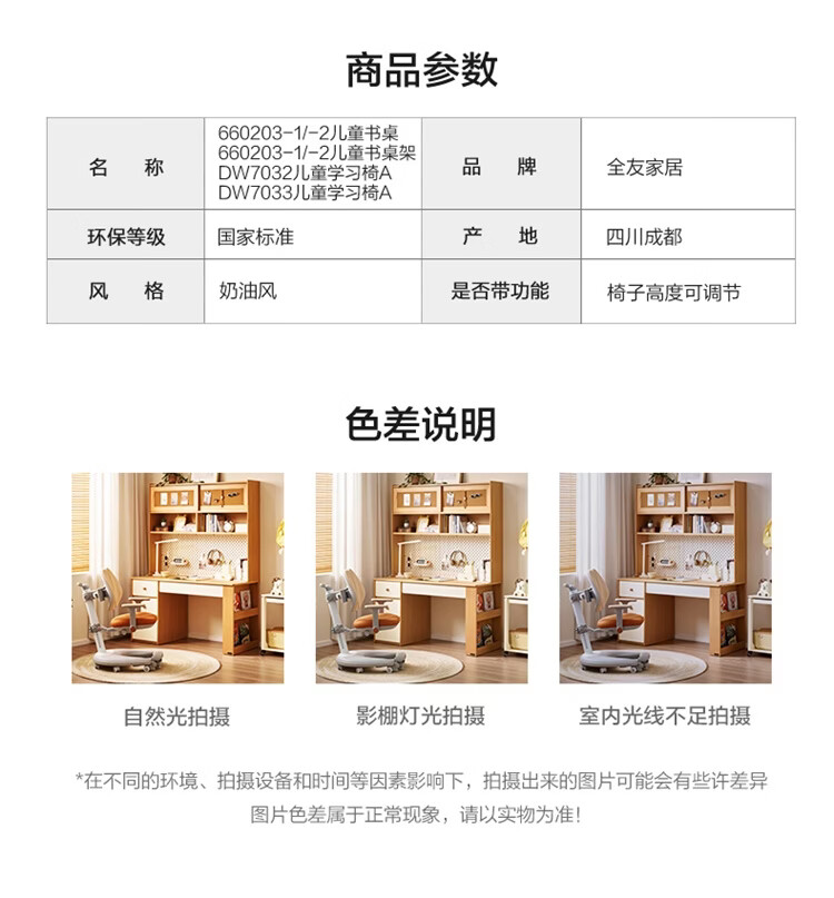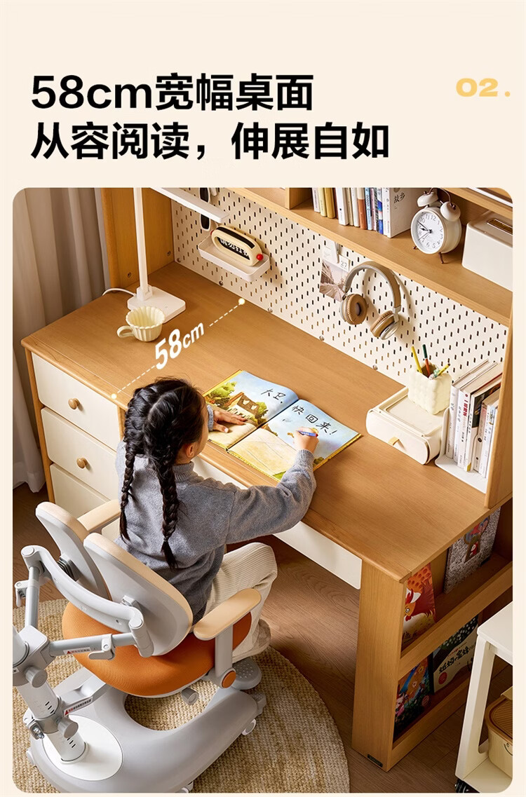 全友家居原木风儿童书桌架组合家用多功能青少年书桌椅组合套装收纳桌 【原木风】1.4米儿童书桌+乐学·学习椅