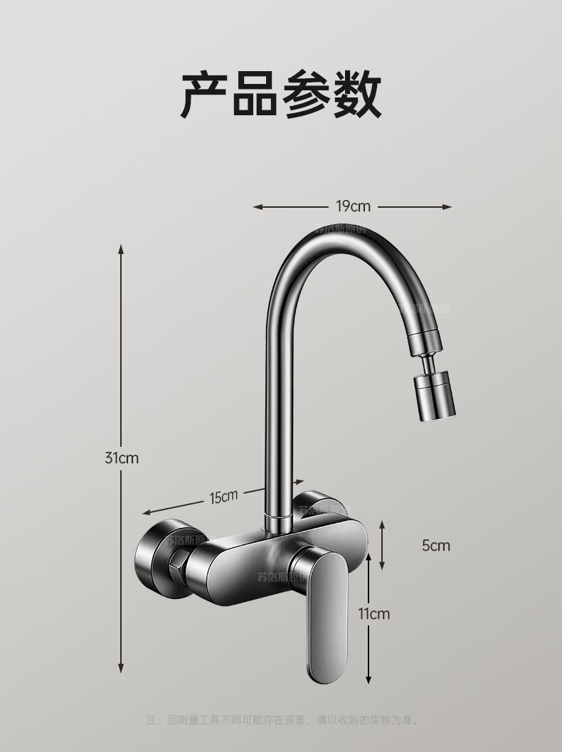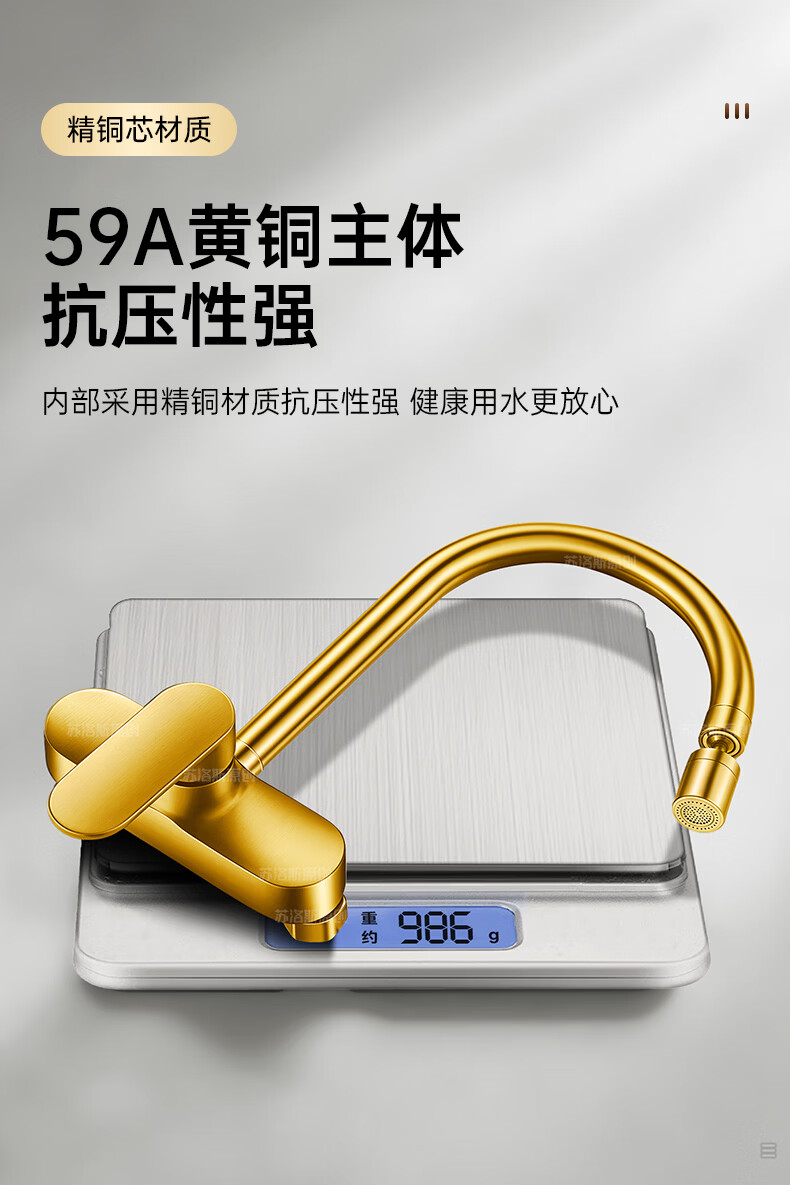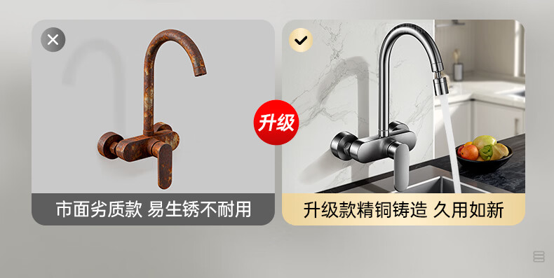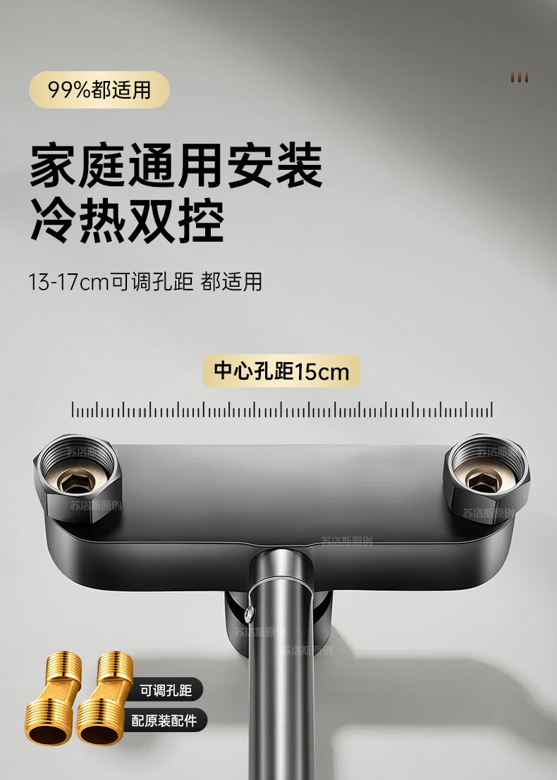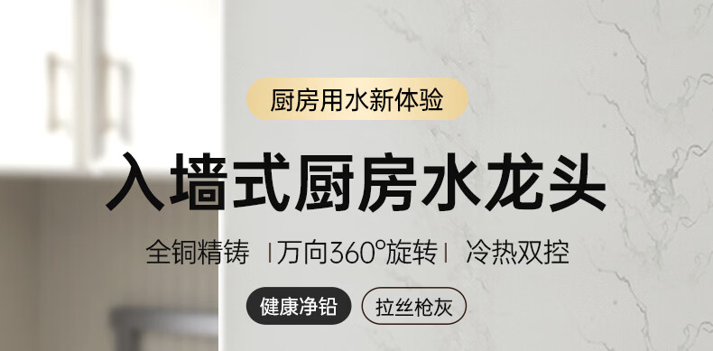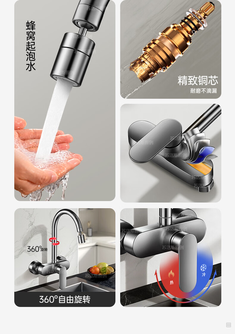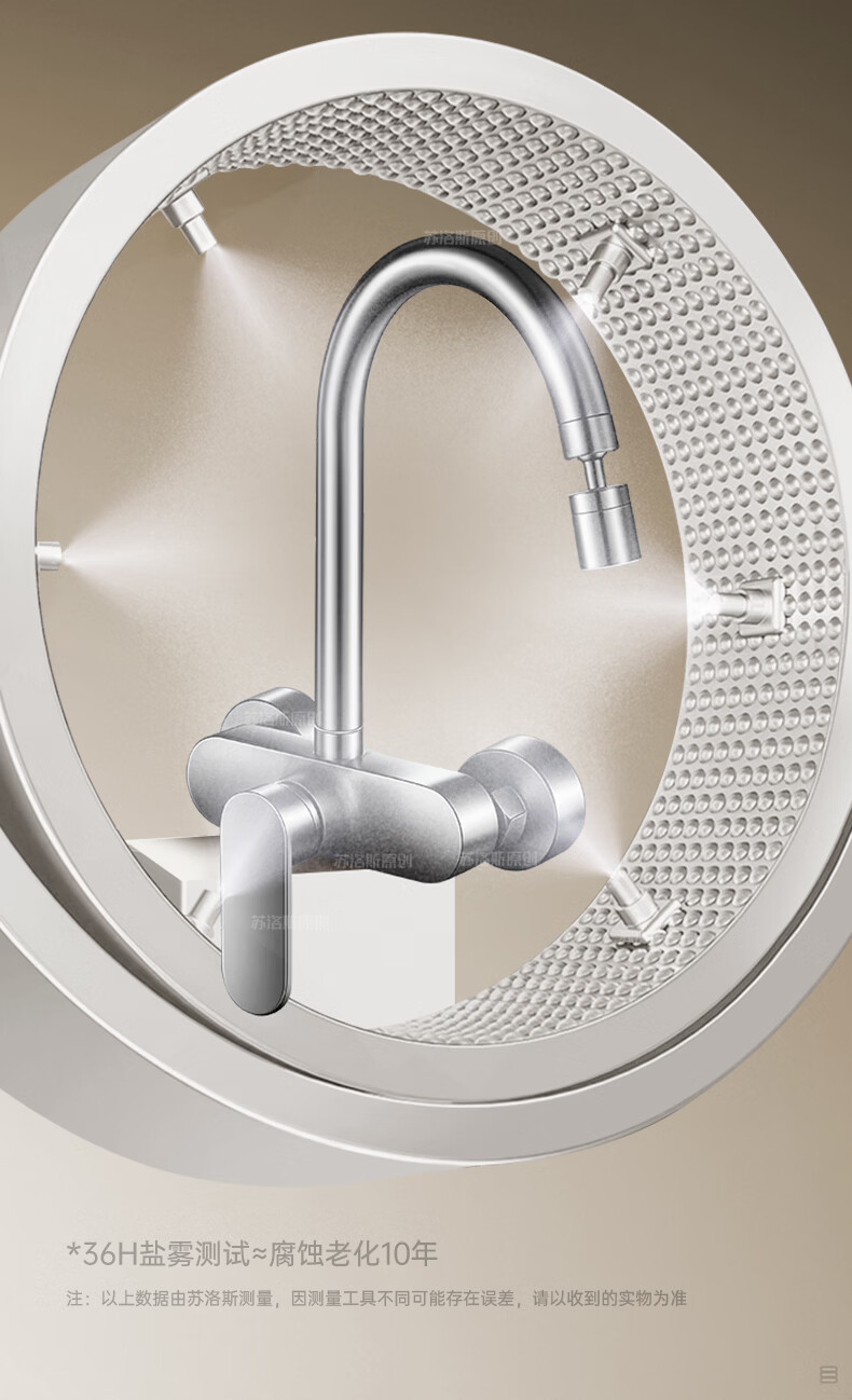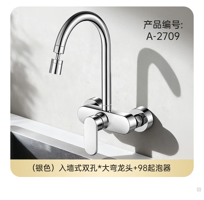苏洛斯入墙式冷热水龙头厨房洗菜盆卫生间洗衣台阳台墙壁双孔龙头防溅水 【枪灰】两档增压防溅丨加厚精铜主体 自由万向旋转丨久用不生锈不掉漆